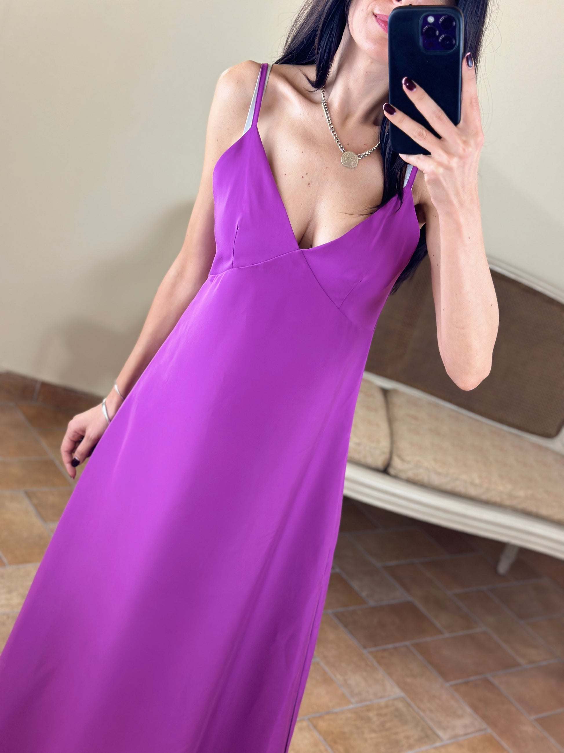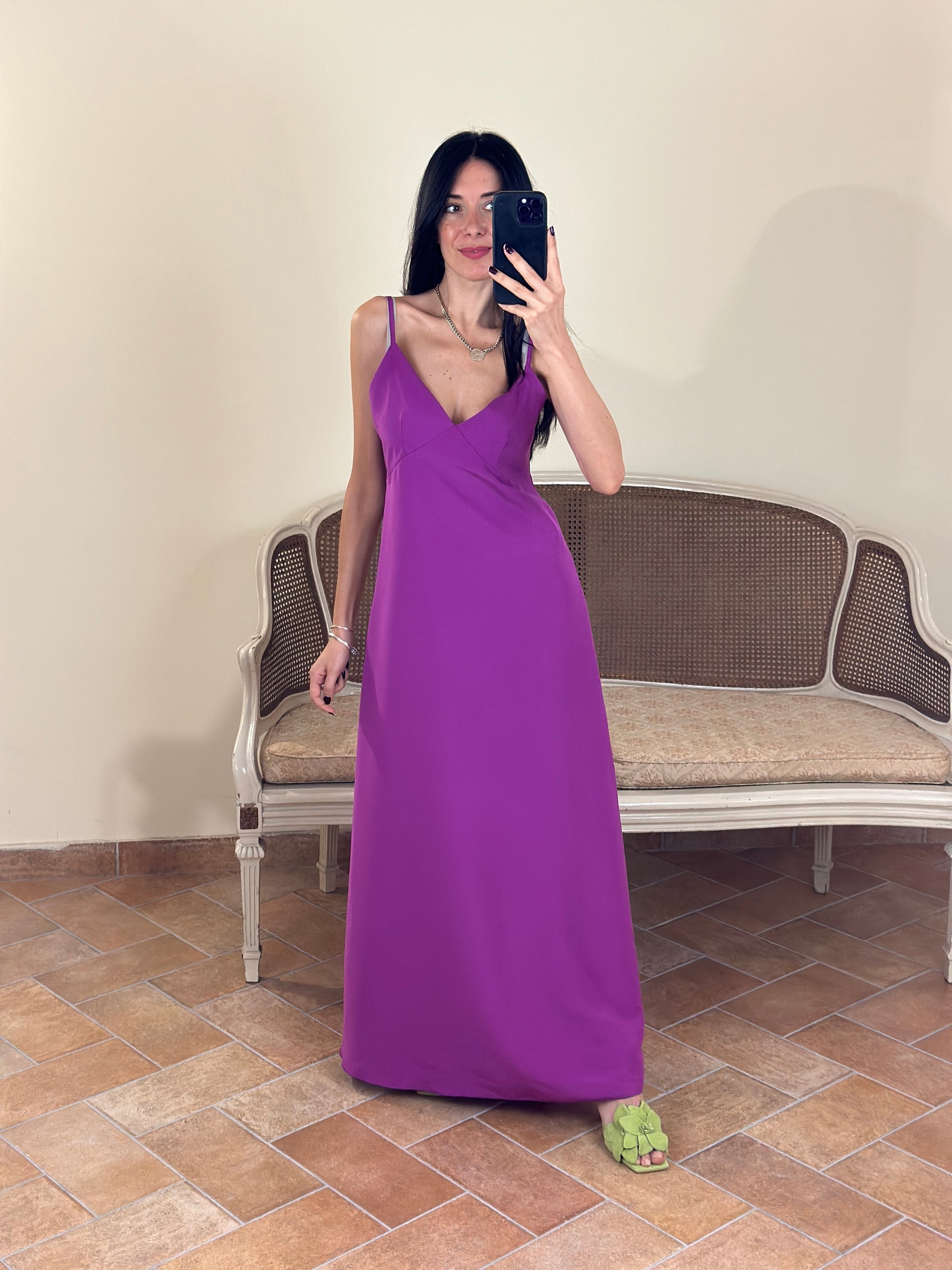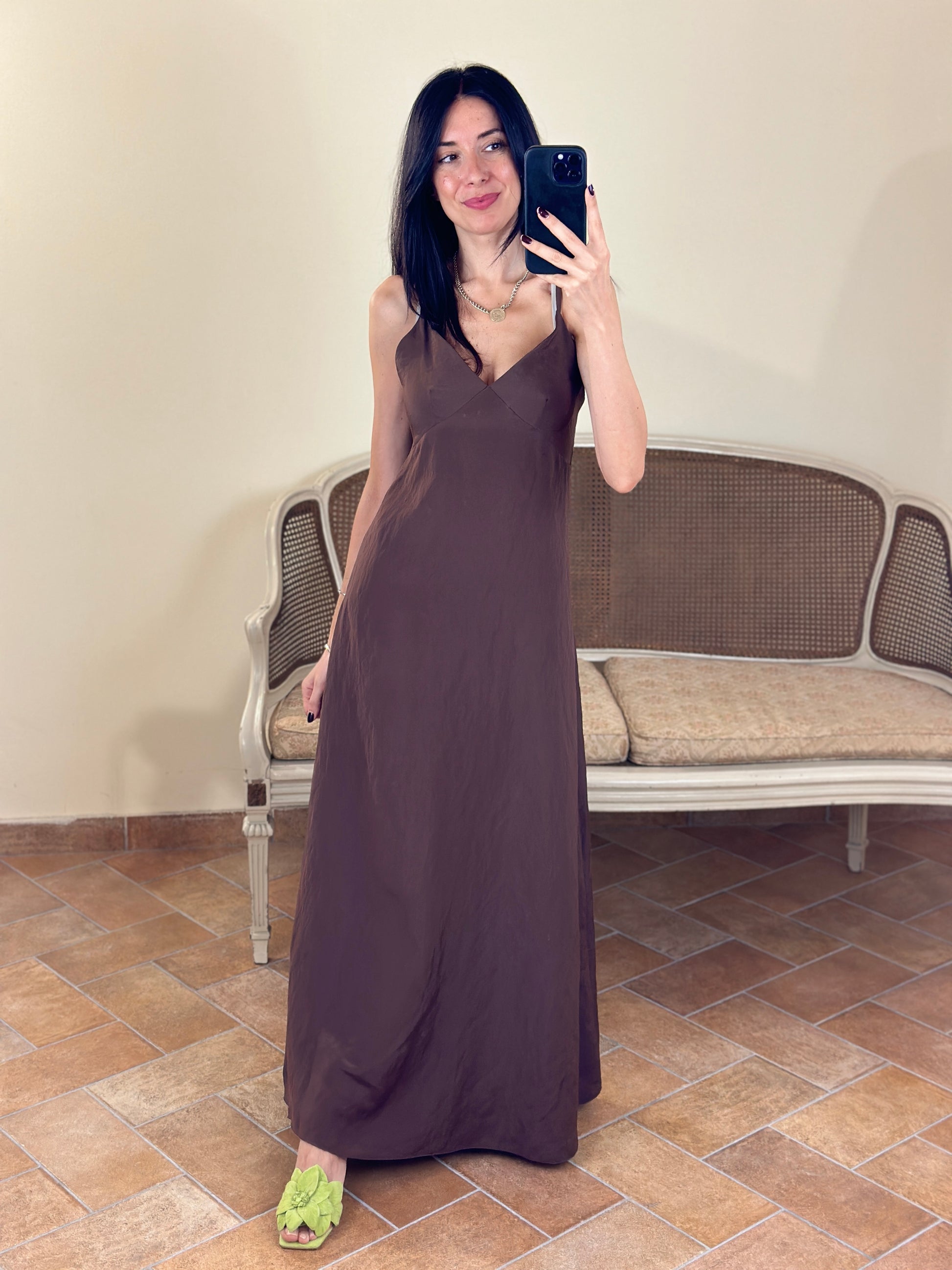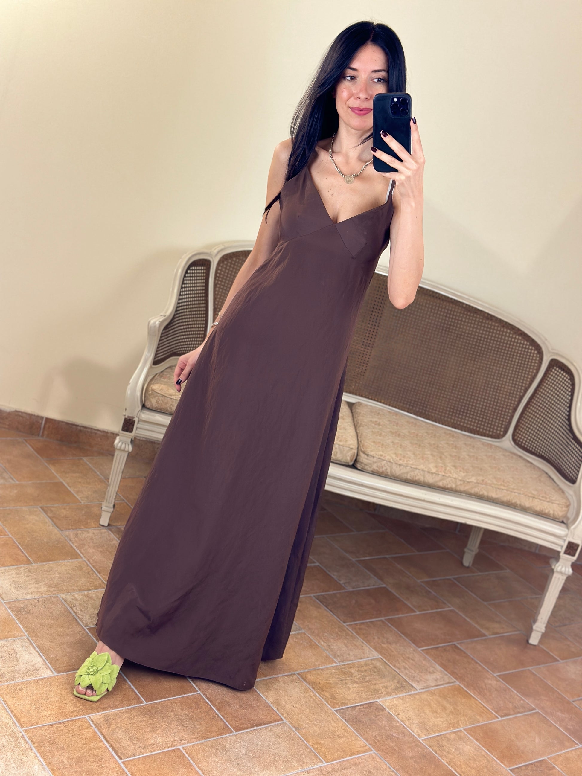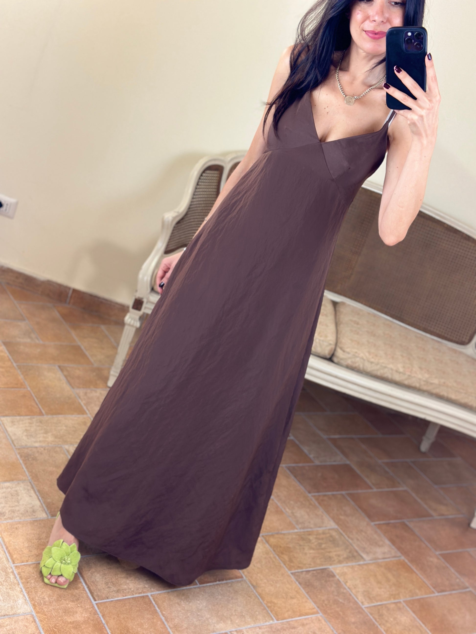 Abito lungo svasato  in modal con spalline regolabili, scollo a V e zip laterale