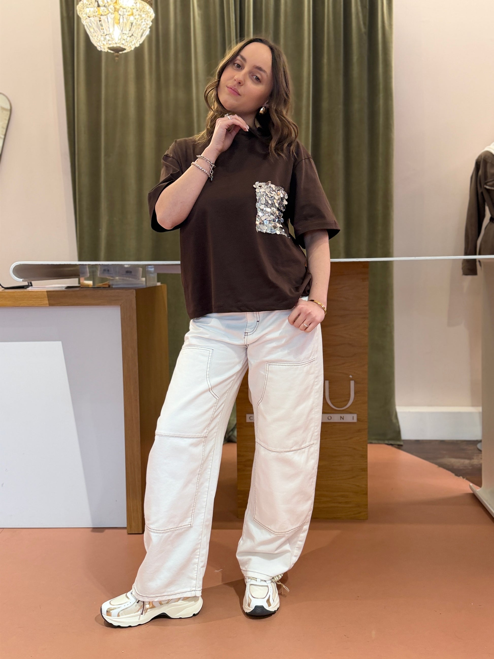 Tensione in T-shirt taschino paillettes Moro