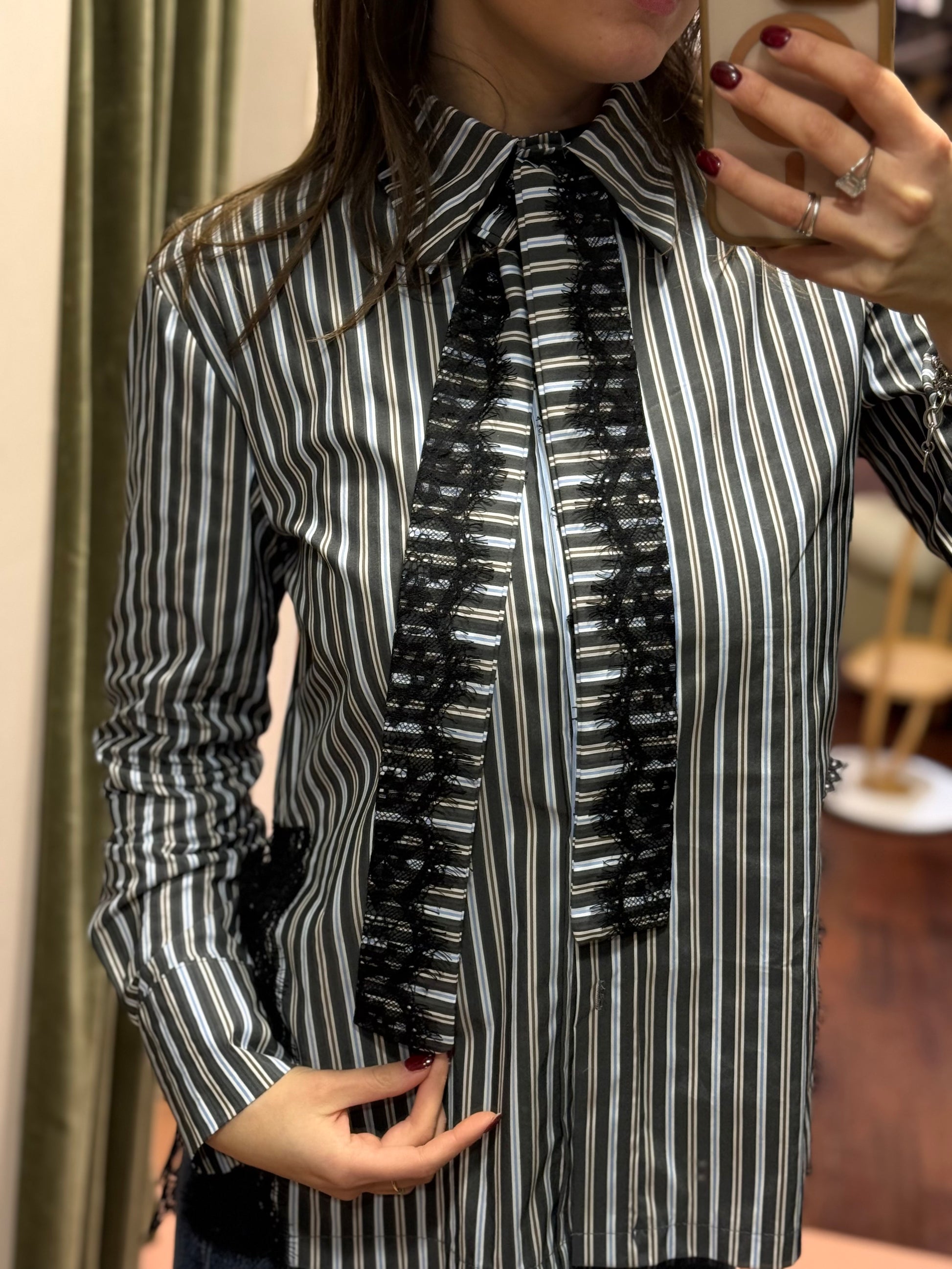 Camicia a righe con pizzo