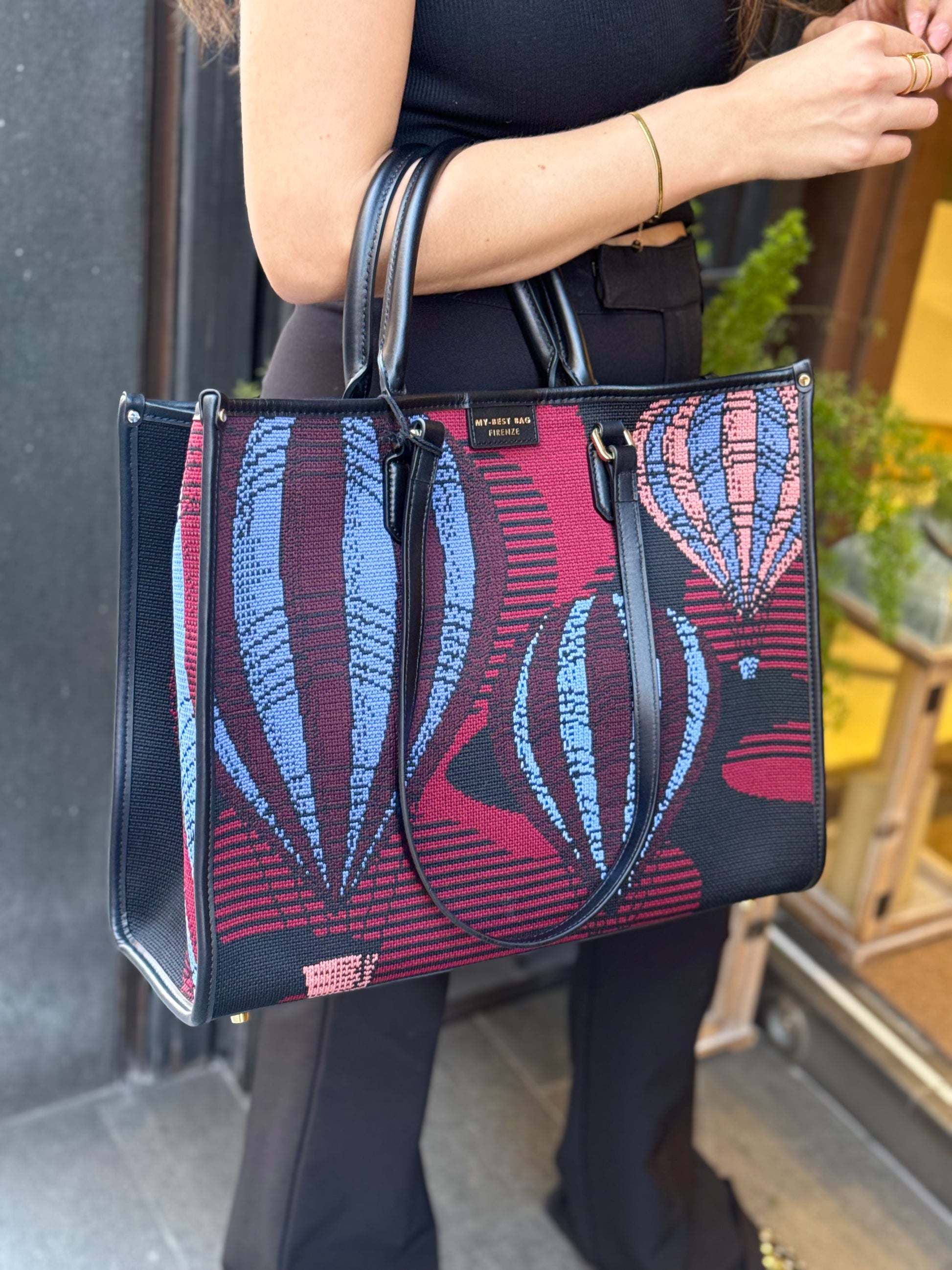 Borsa ricamata con stampa mongolfiere in tessuto e pelle del marchio italiano My Best Bag.
