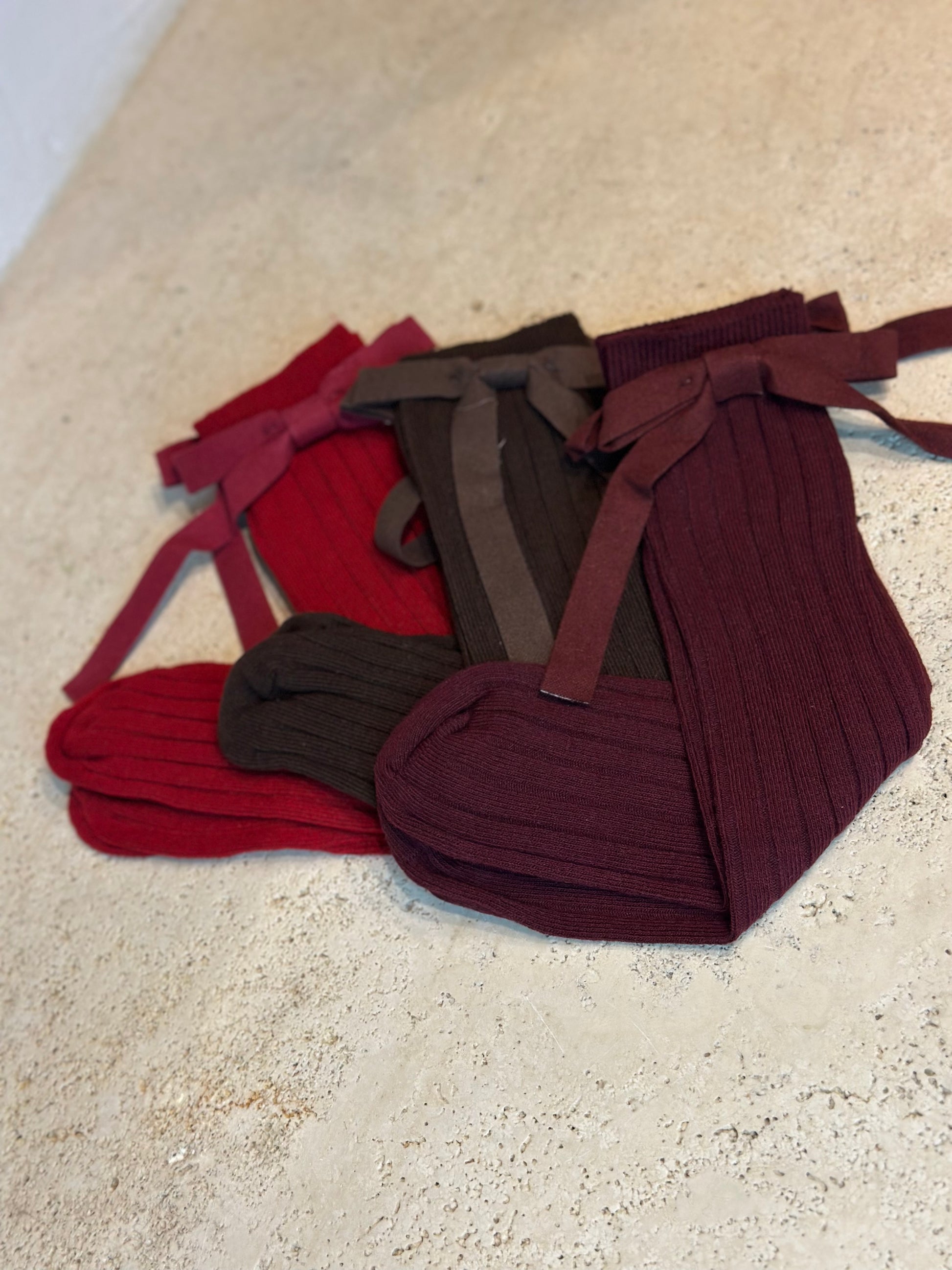Calzino medio in cotone a coste con fiocchi applicati sul retro