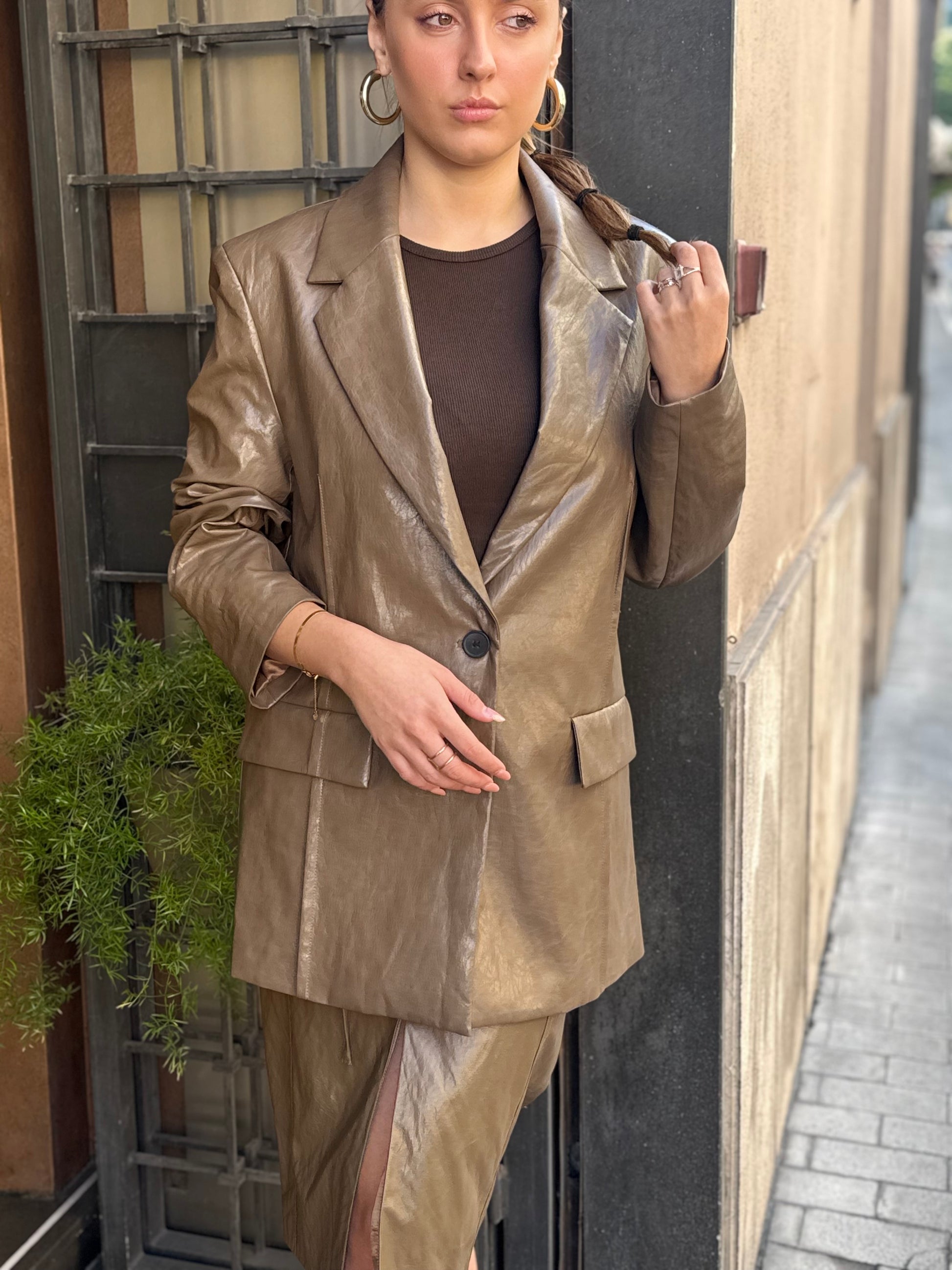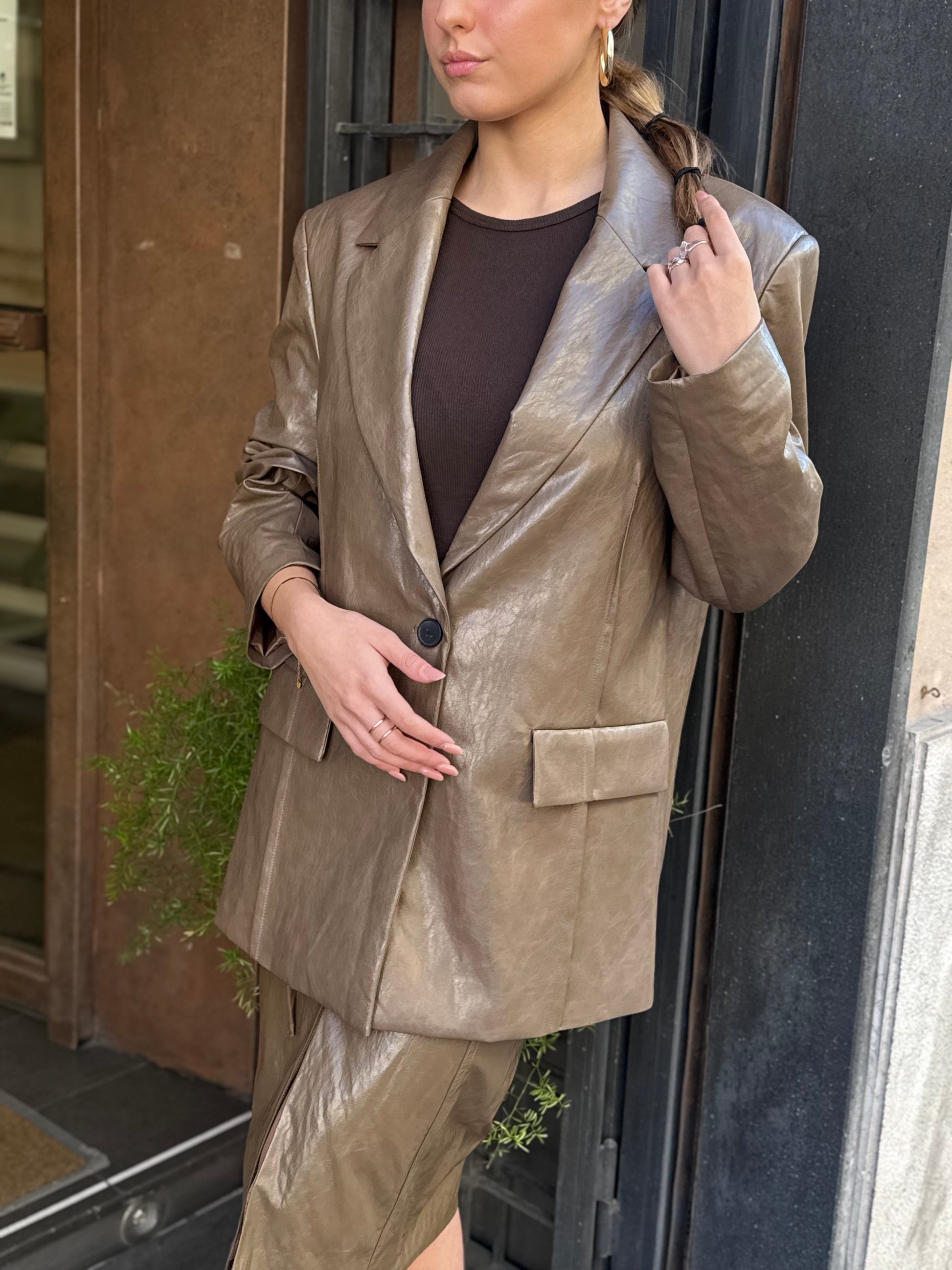 Eleh Blazer in ecopelle stropicciata VERDE OLIVA