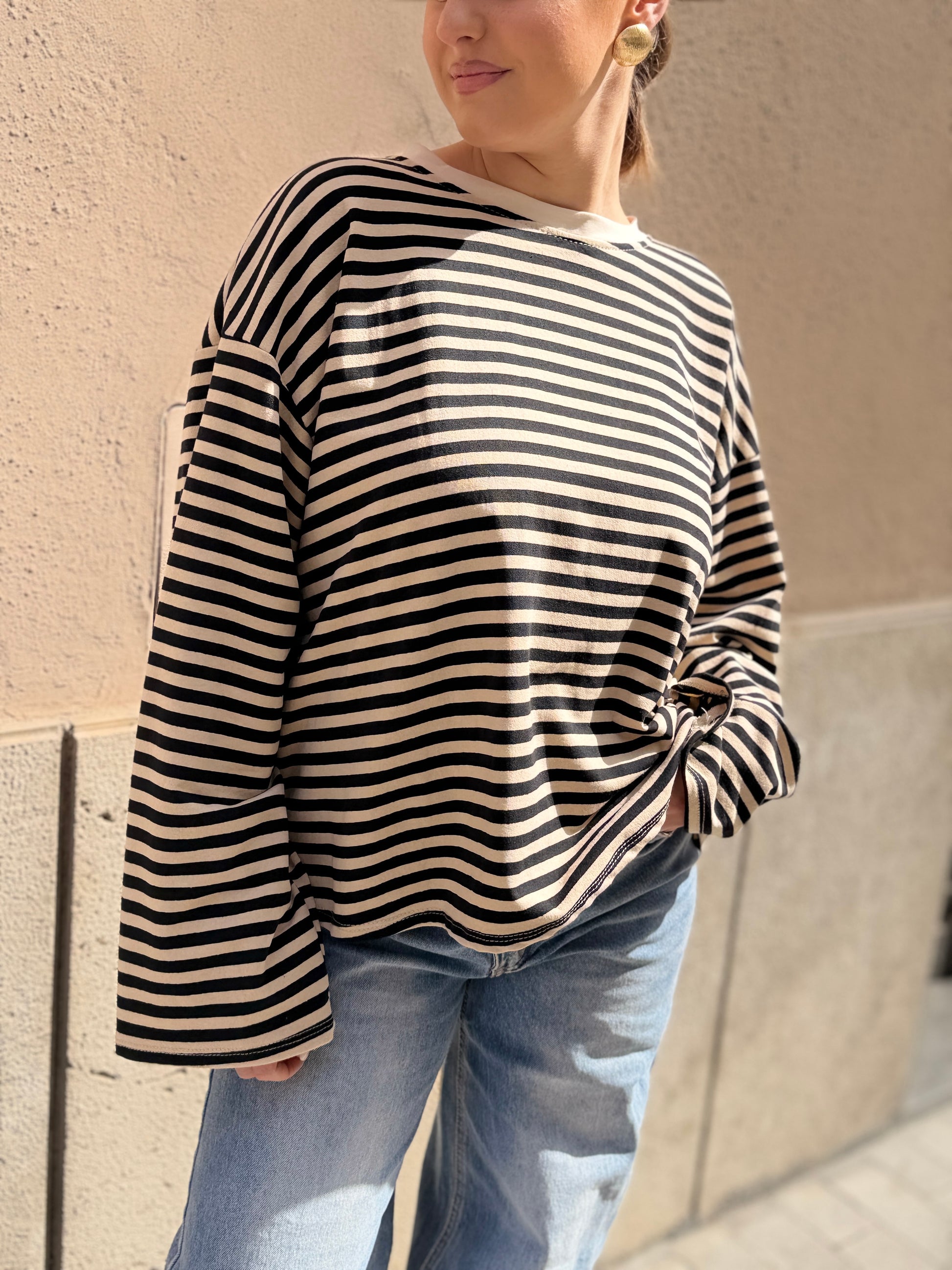 T-Shirt girocollo classico, spalle scese ,vestibilità over manica lunga.