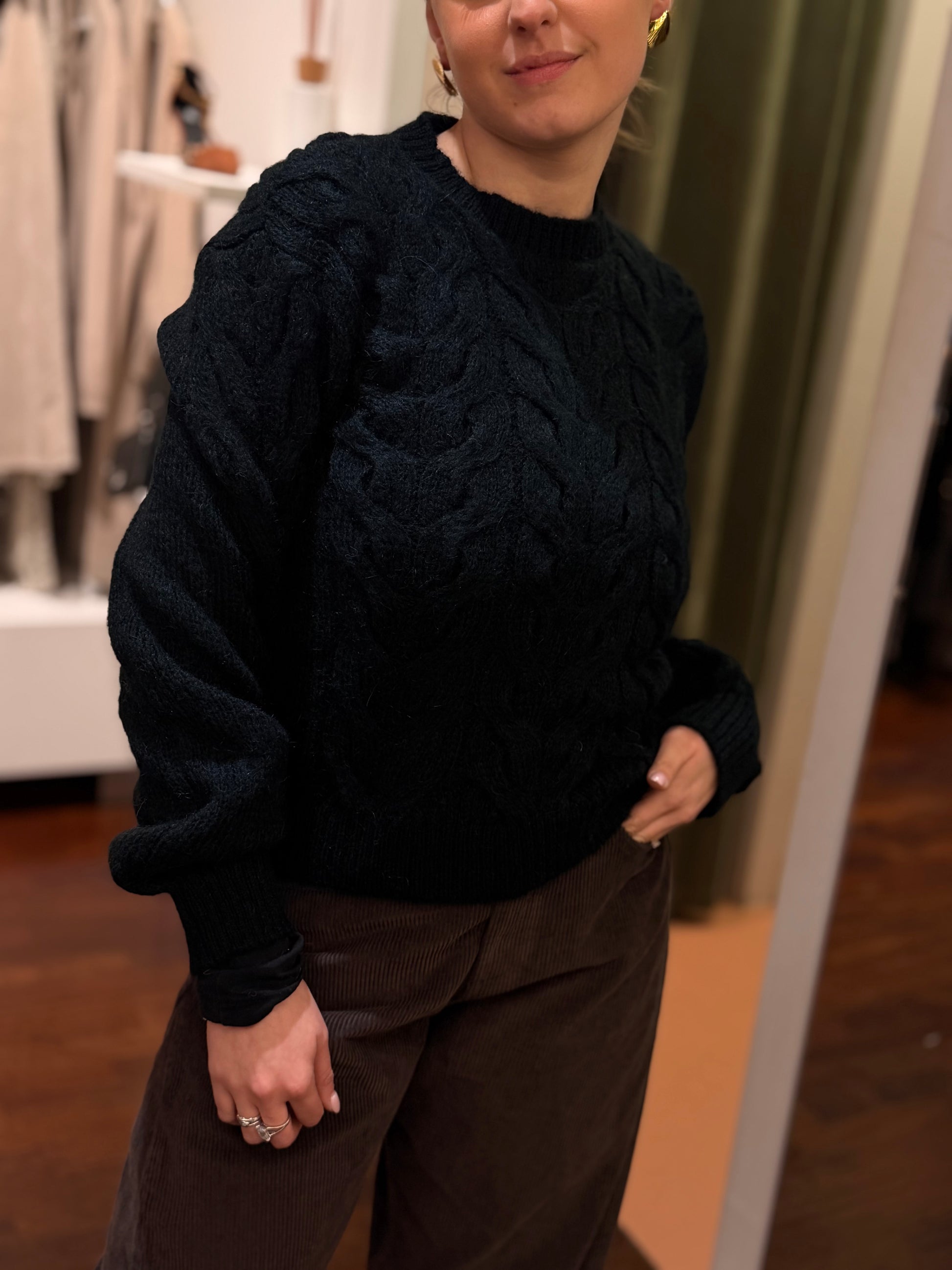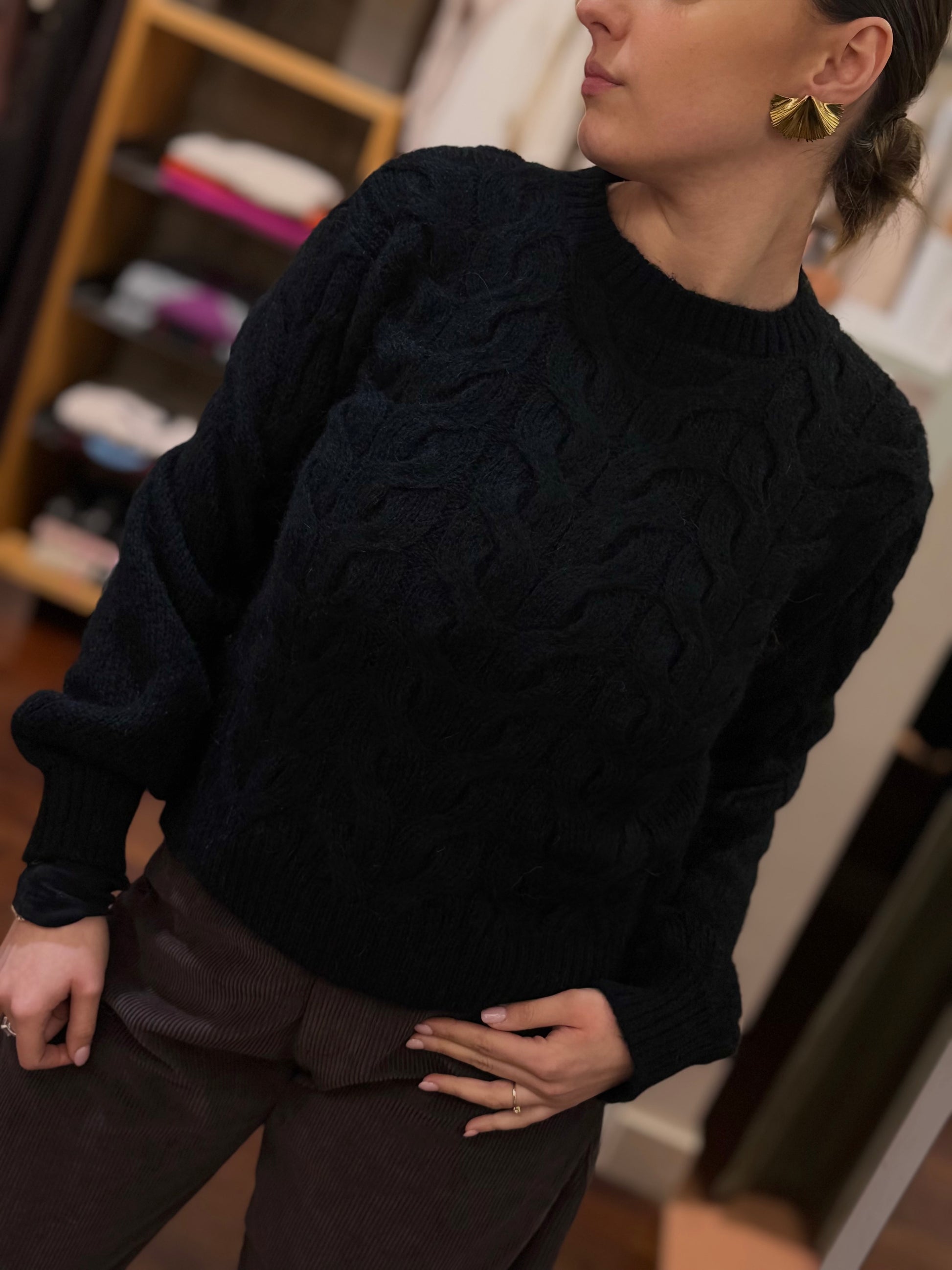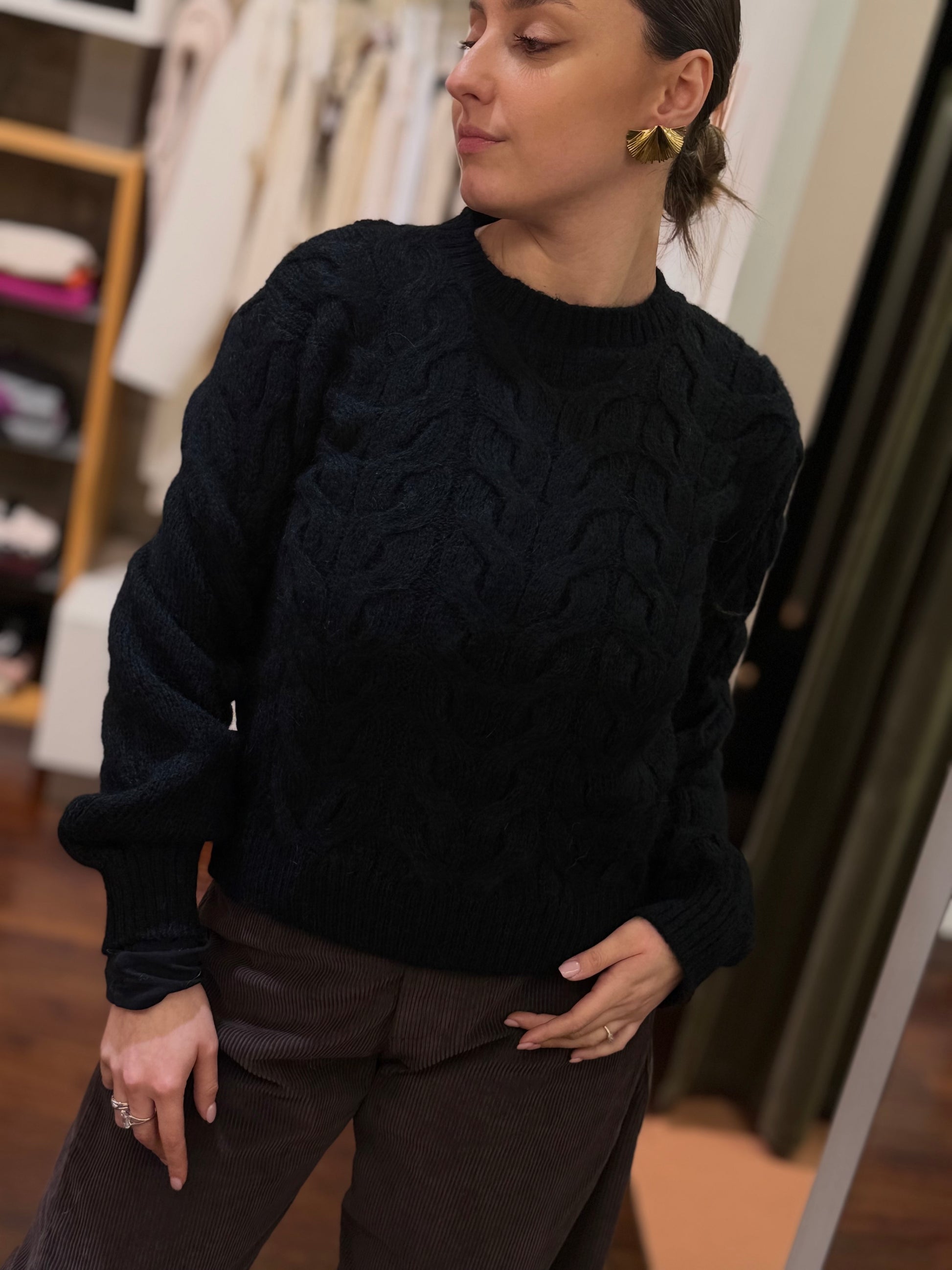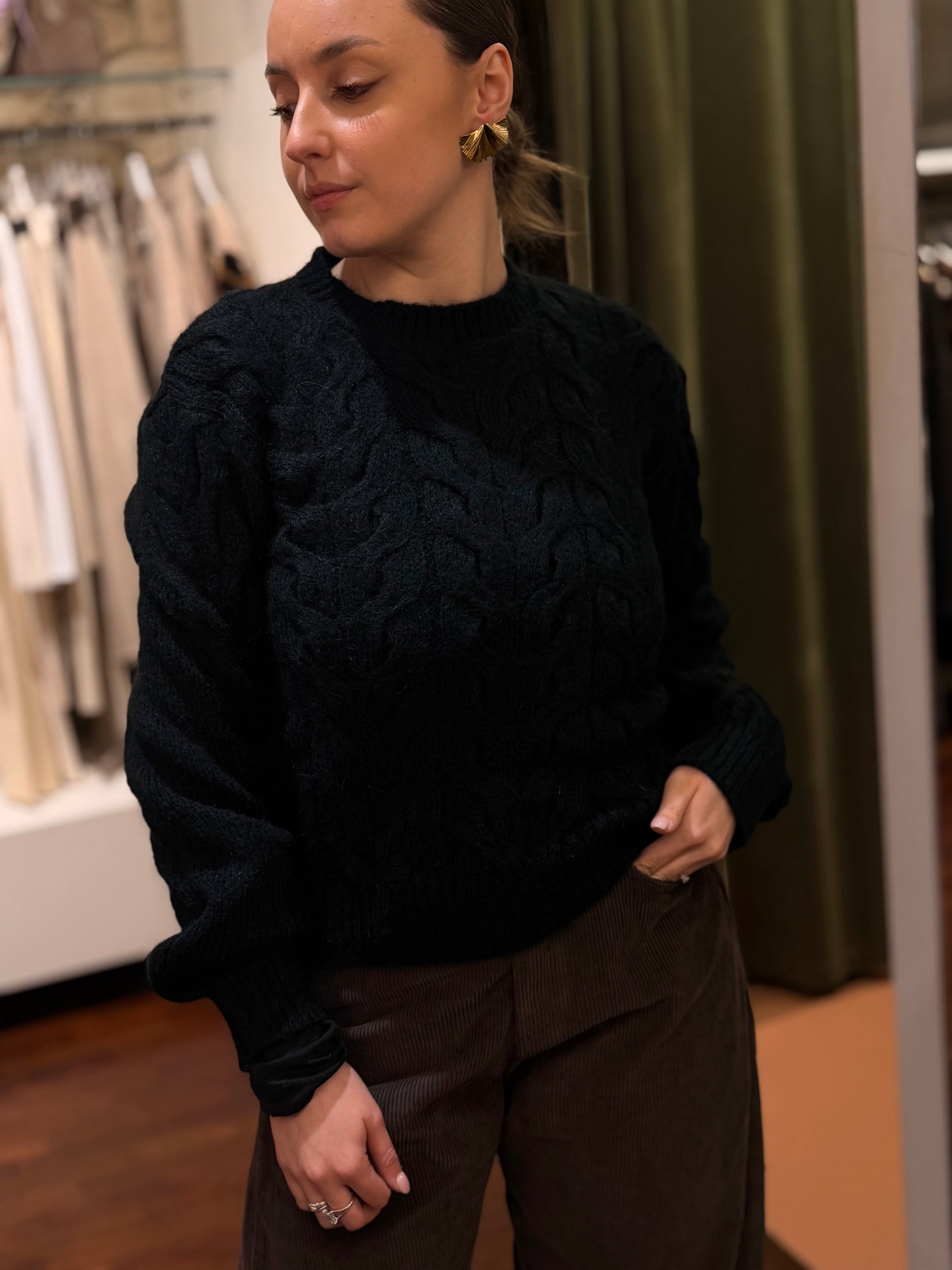 Tensione In Maglia girocollo trecce NERO
