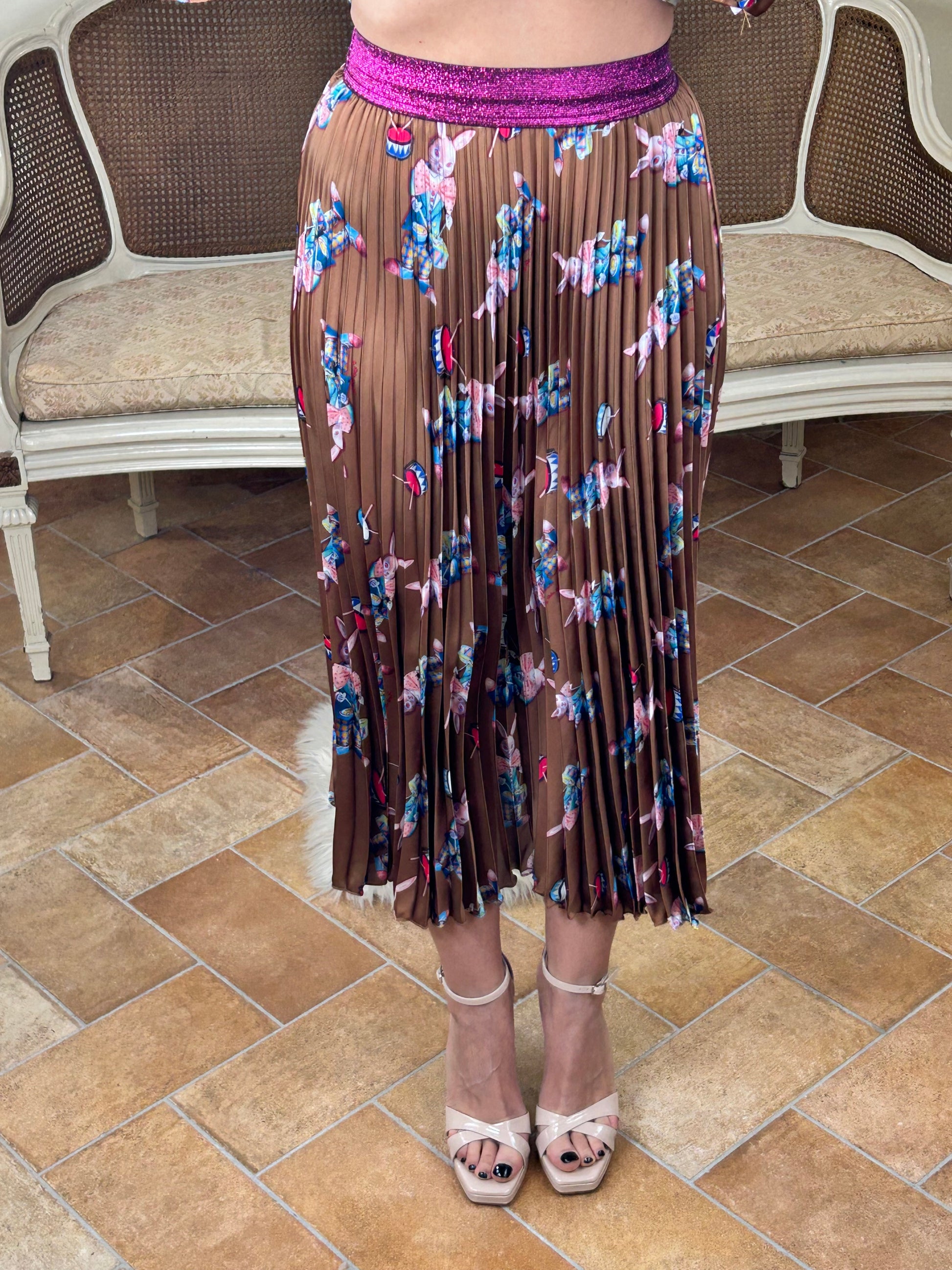 Gonna Plissè con elastico in vita, stampa rabbit.