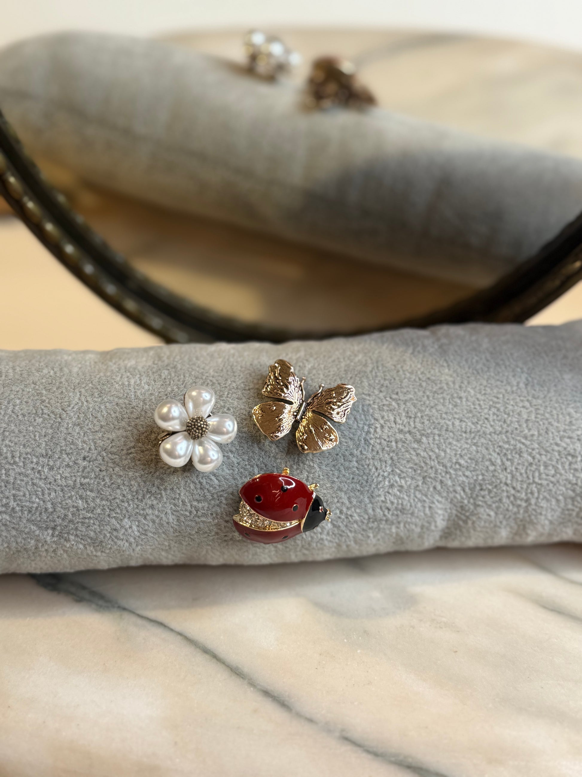 - Set 3 spille, coccinella, fiore in perle e farfalla oro