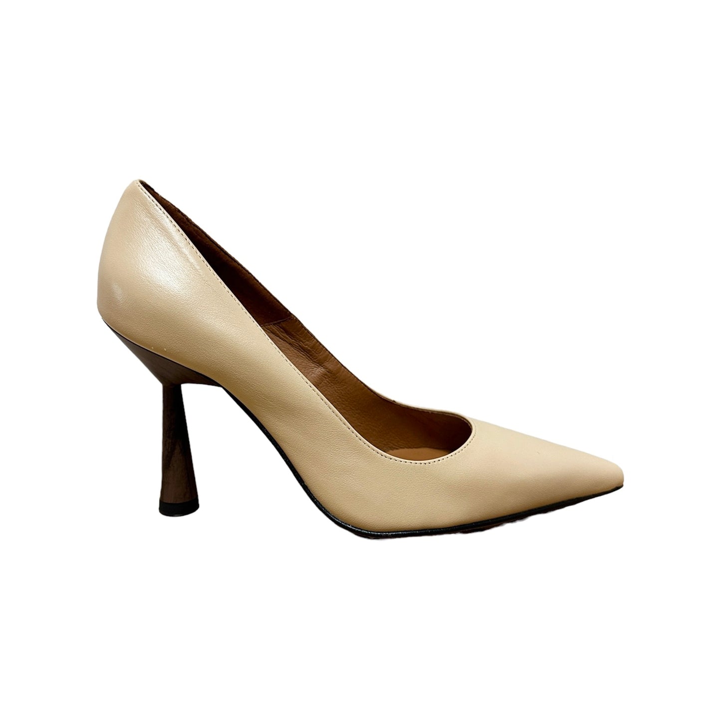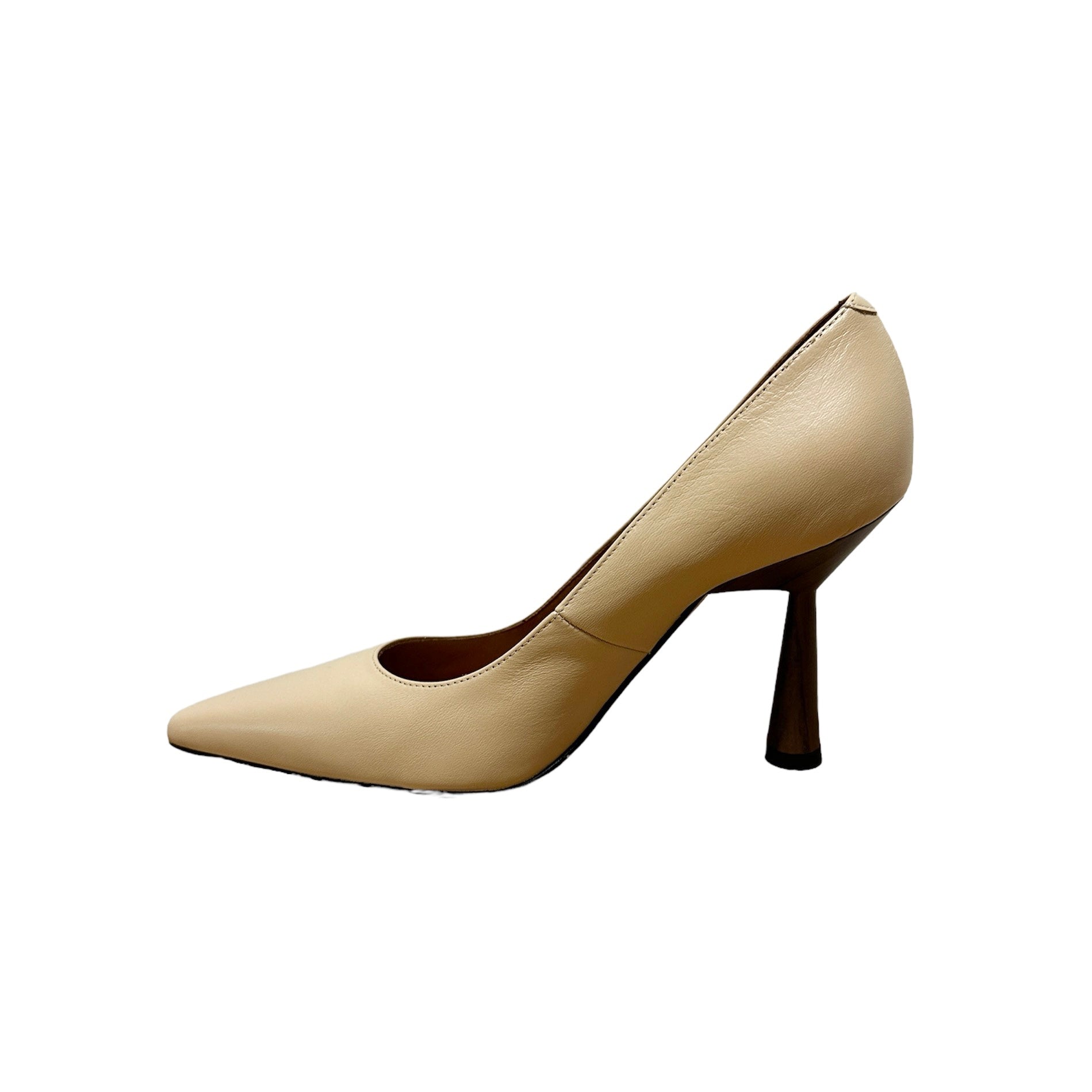 Décolleté in pelle, sottopiede in pelle, tacco a clessidra 90mm, suola in tunit.