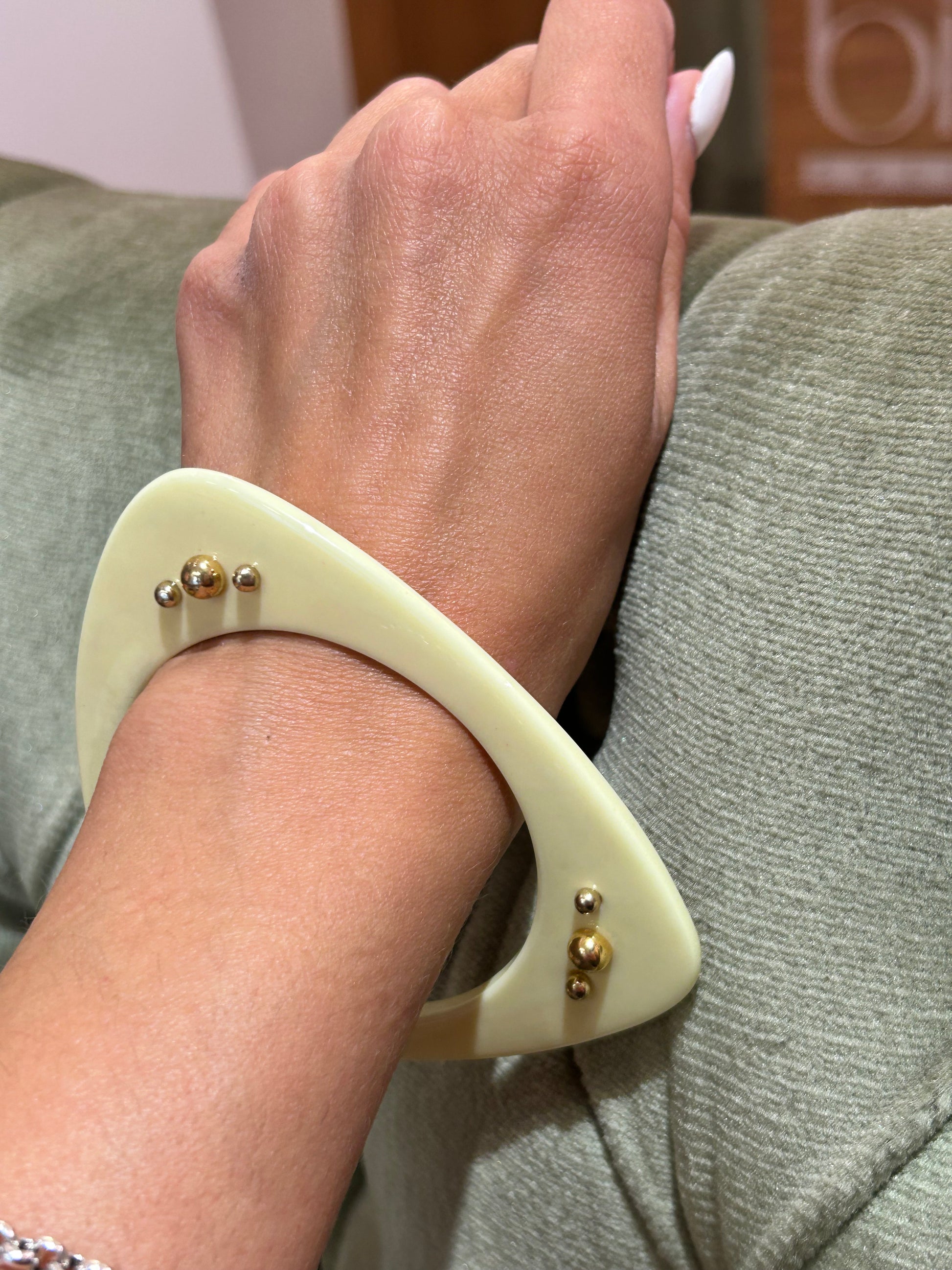 Bracciale rigido variante gialla con micro borchie oro