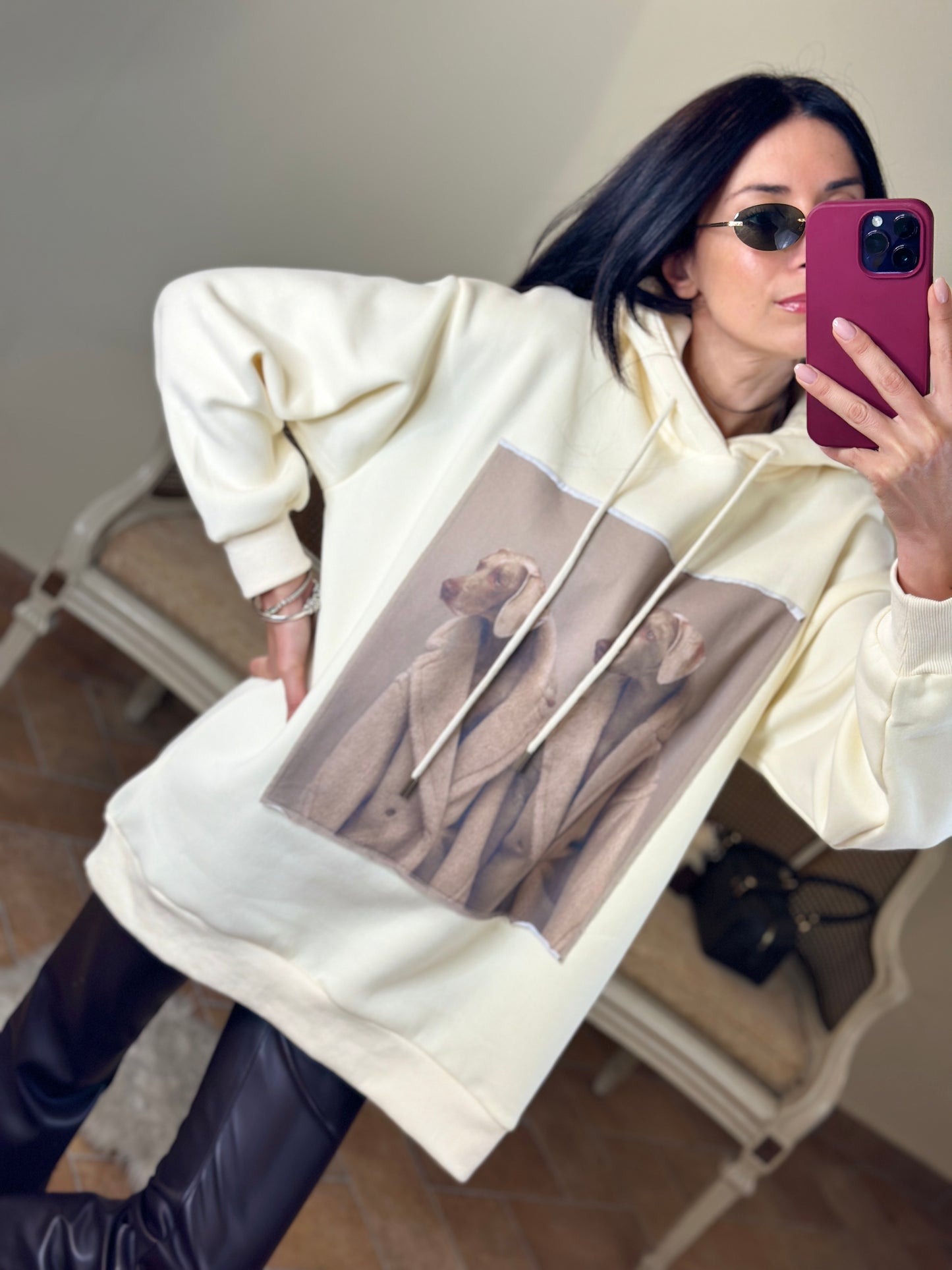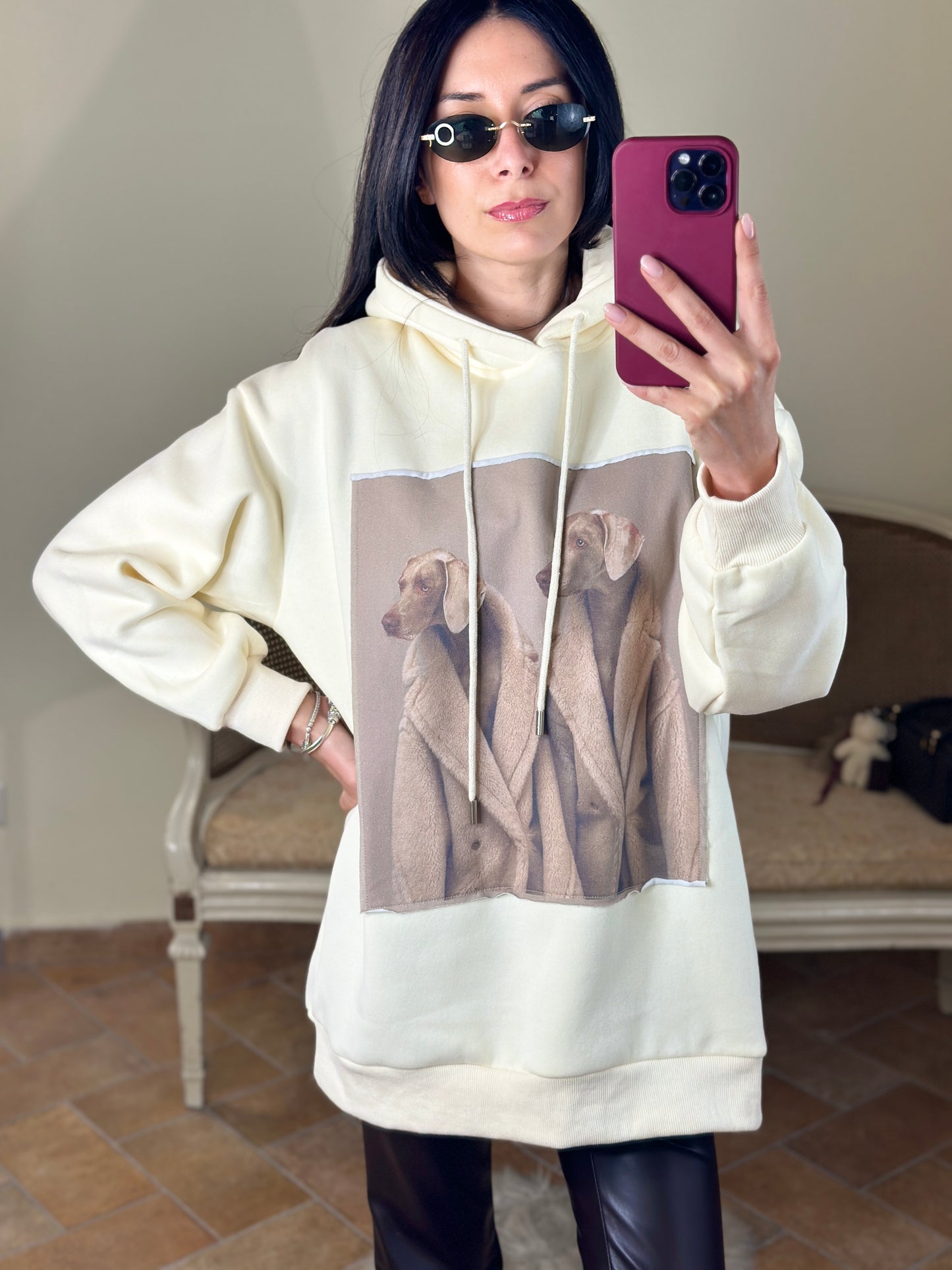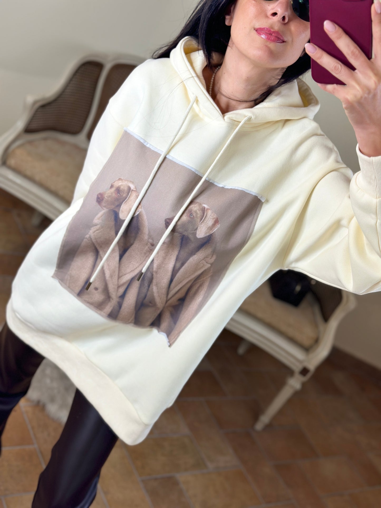 Maxi felpa felpata all’interno, cappuccio con coulisse e stampa Bracco Weimaraner