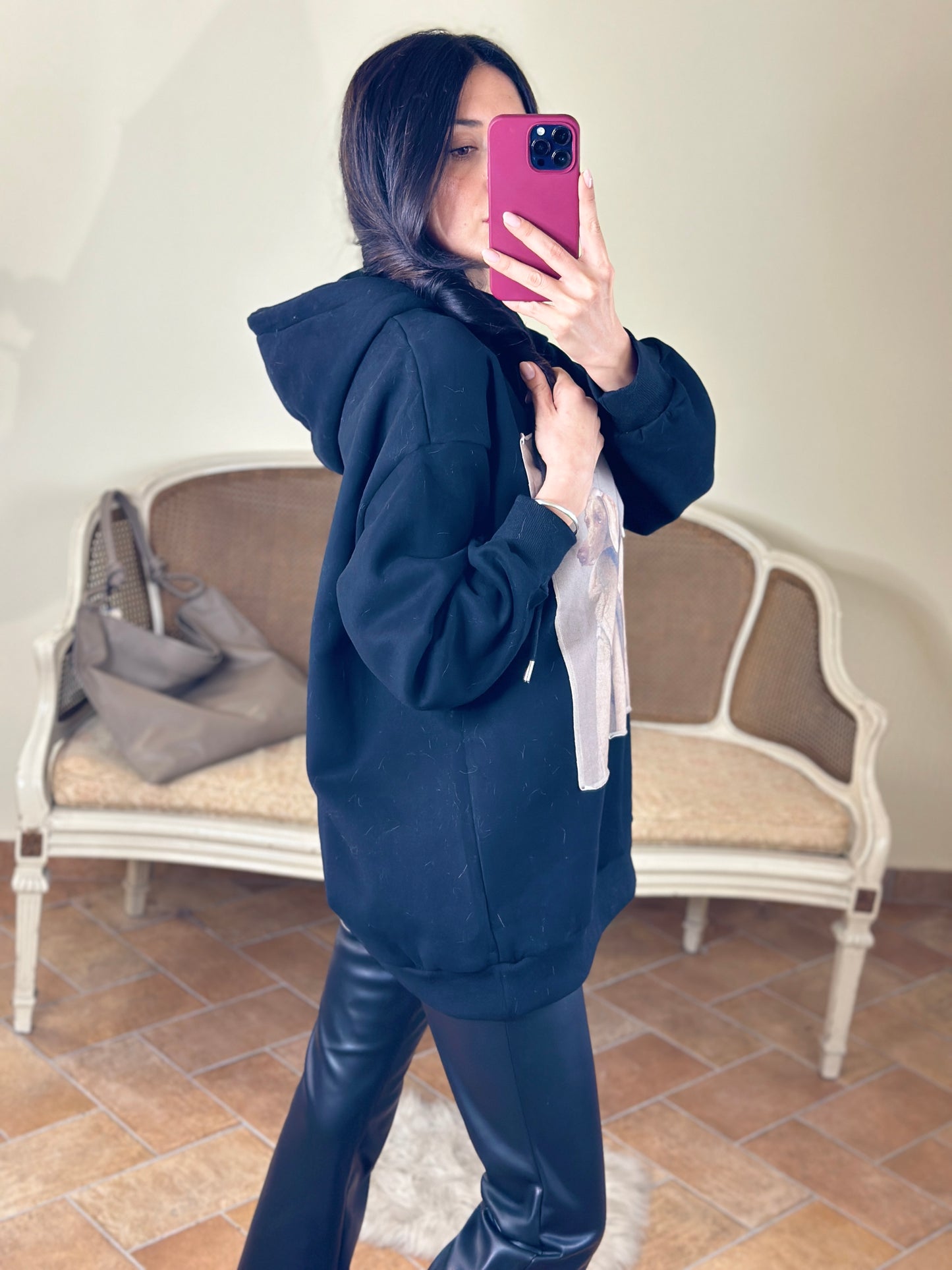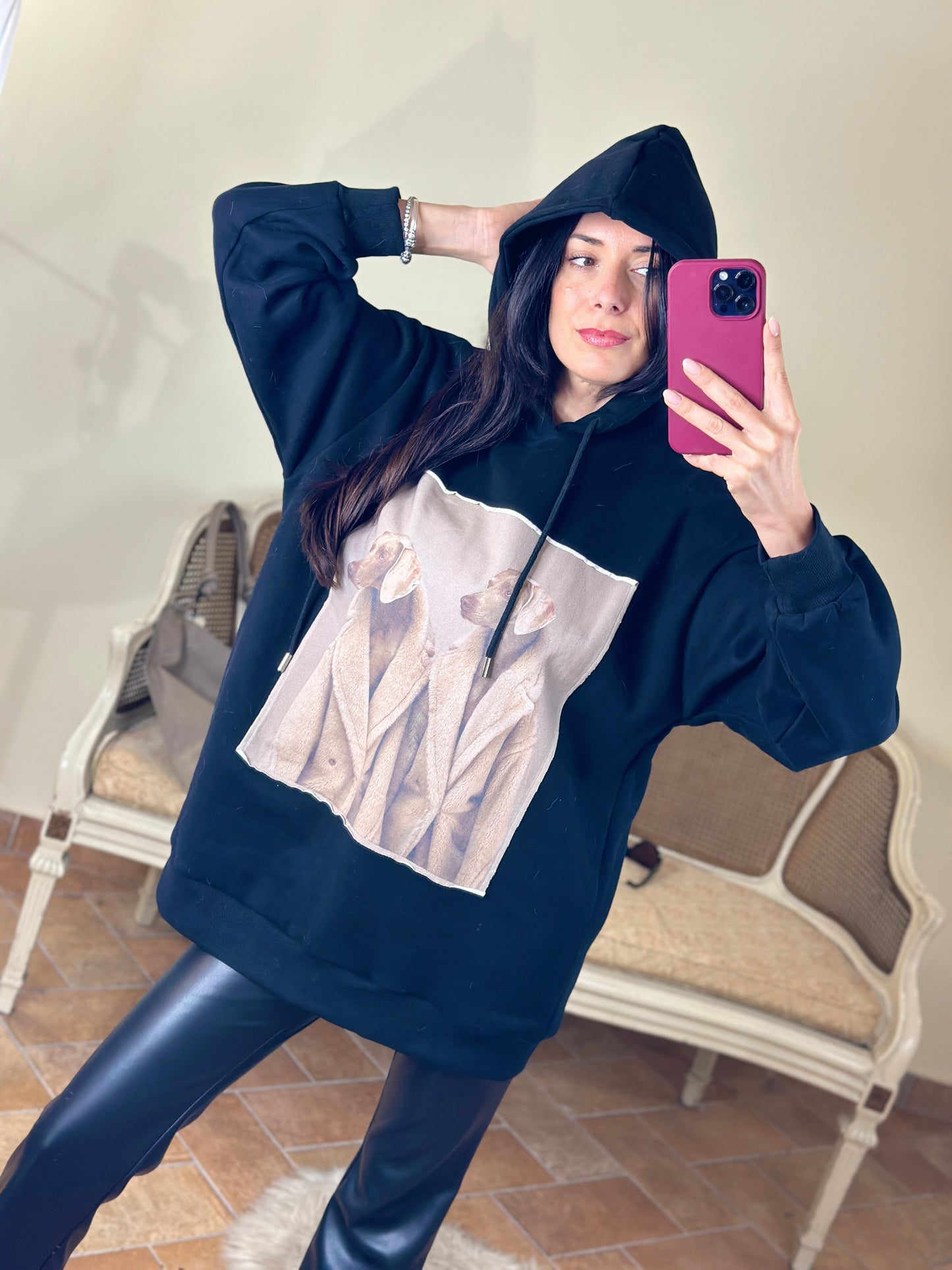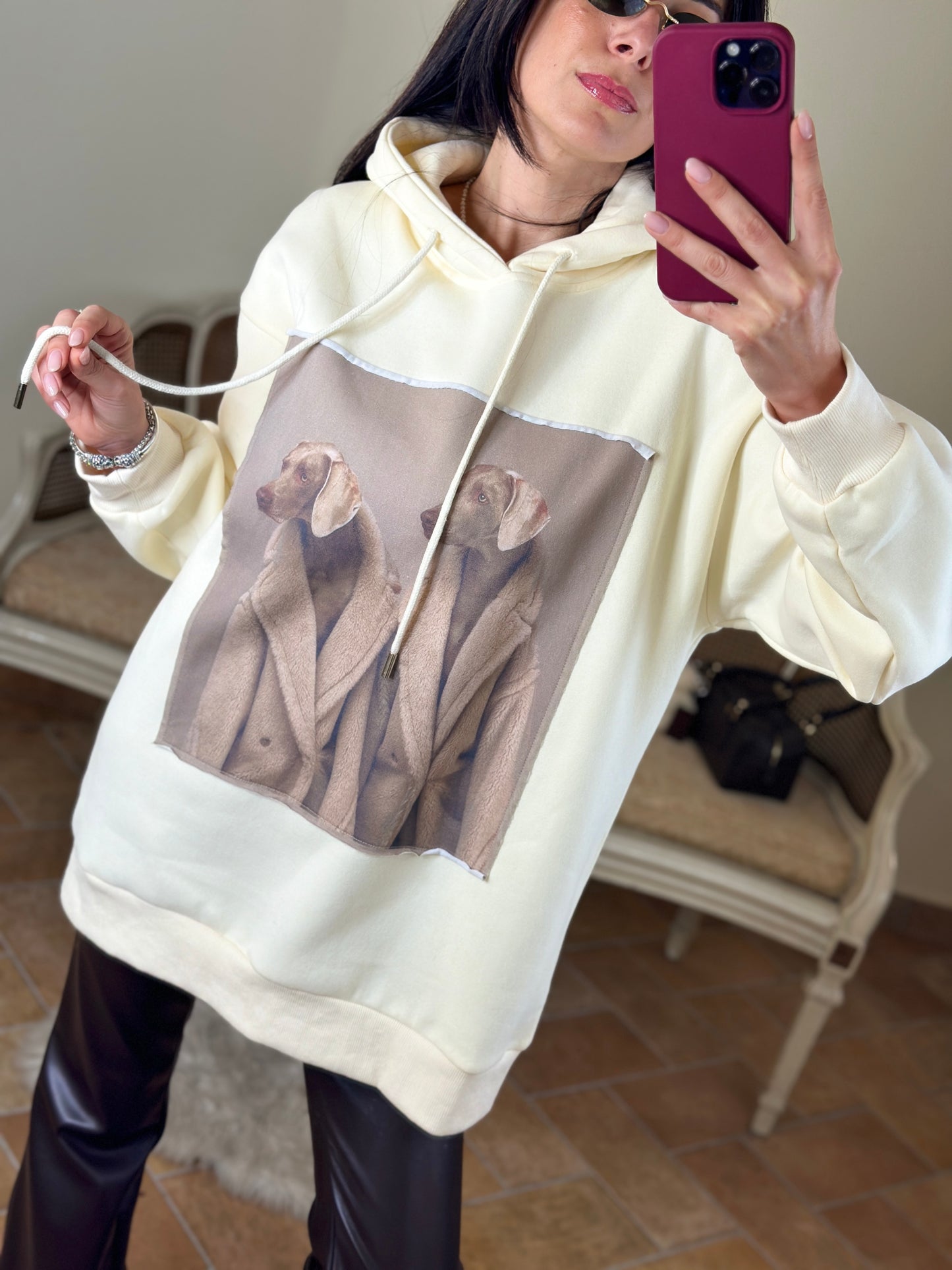 Maxi felpa felpata all’interno, cappuccio con coulisse e stampa Bracco Weimaraner