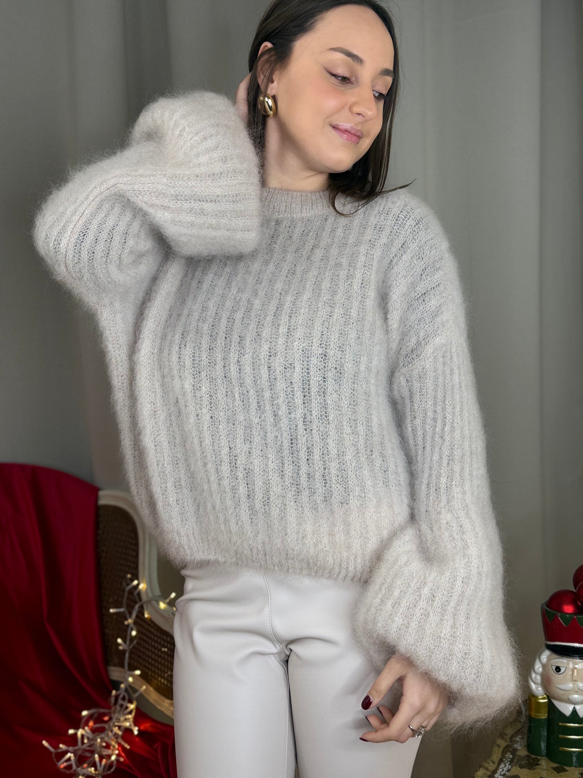 Maglia con manica a sbuffo nella parte finale, lavorazione intrecciata.