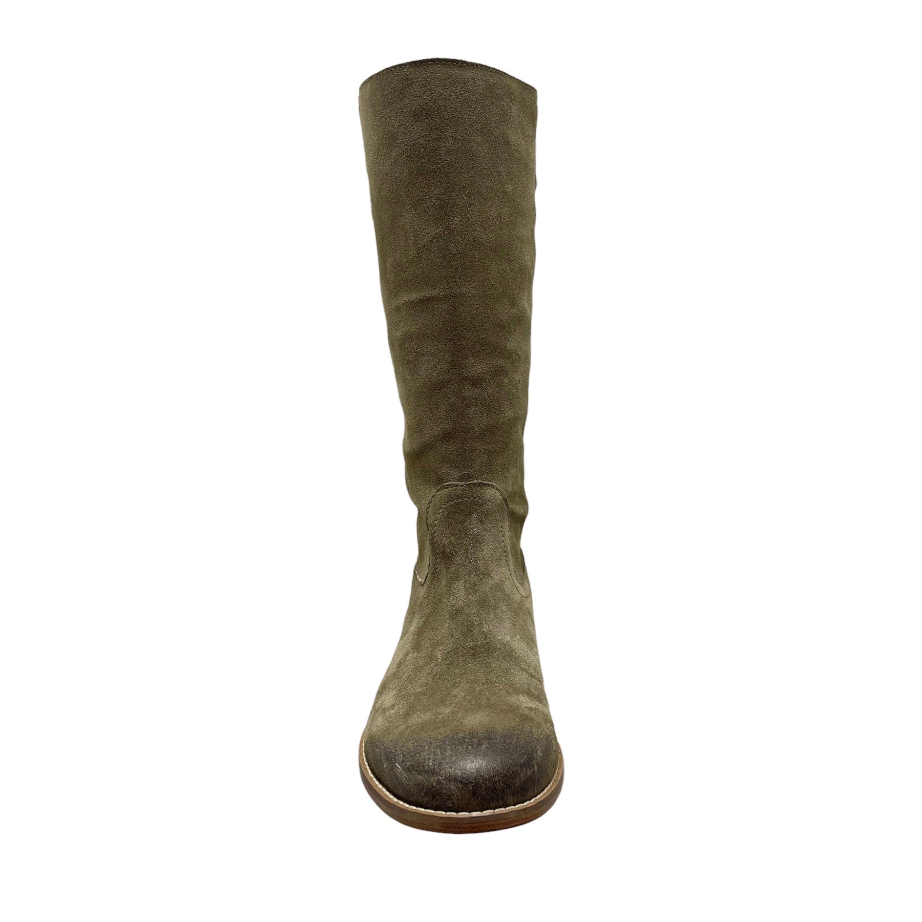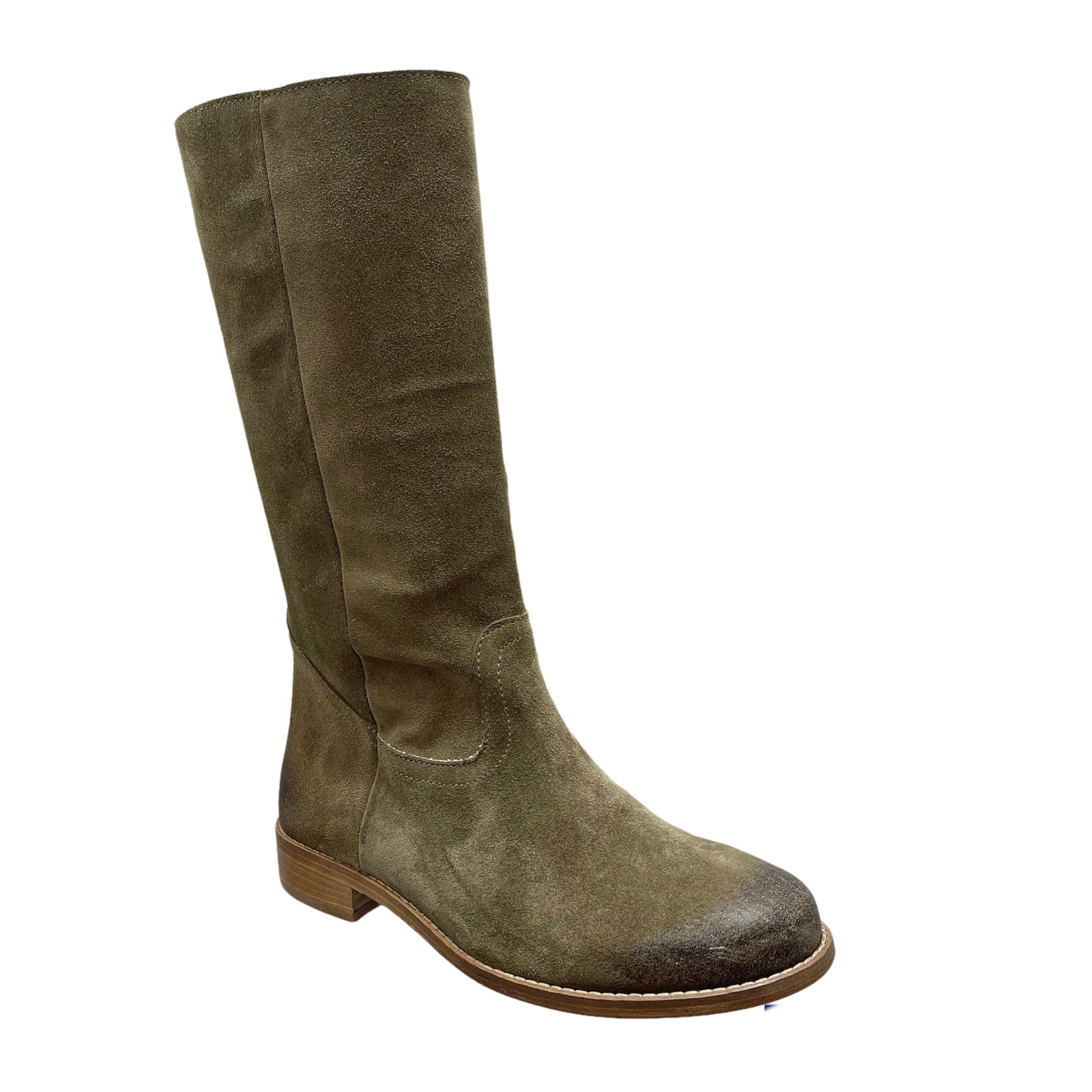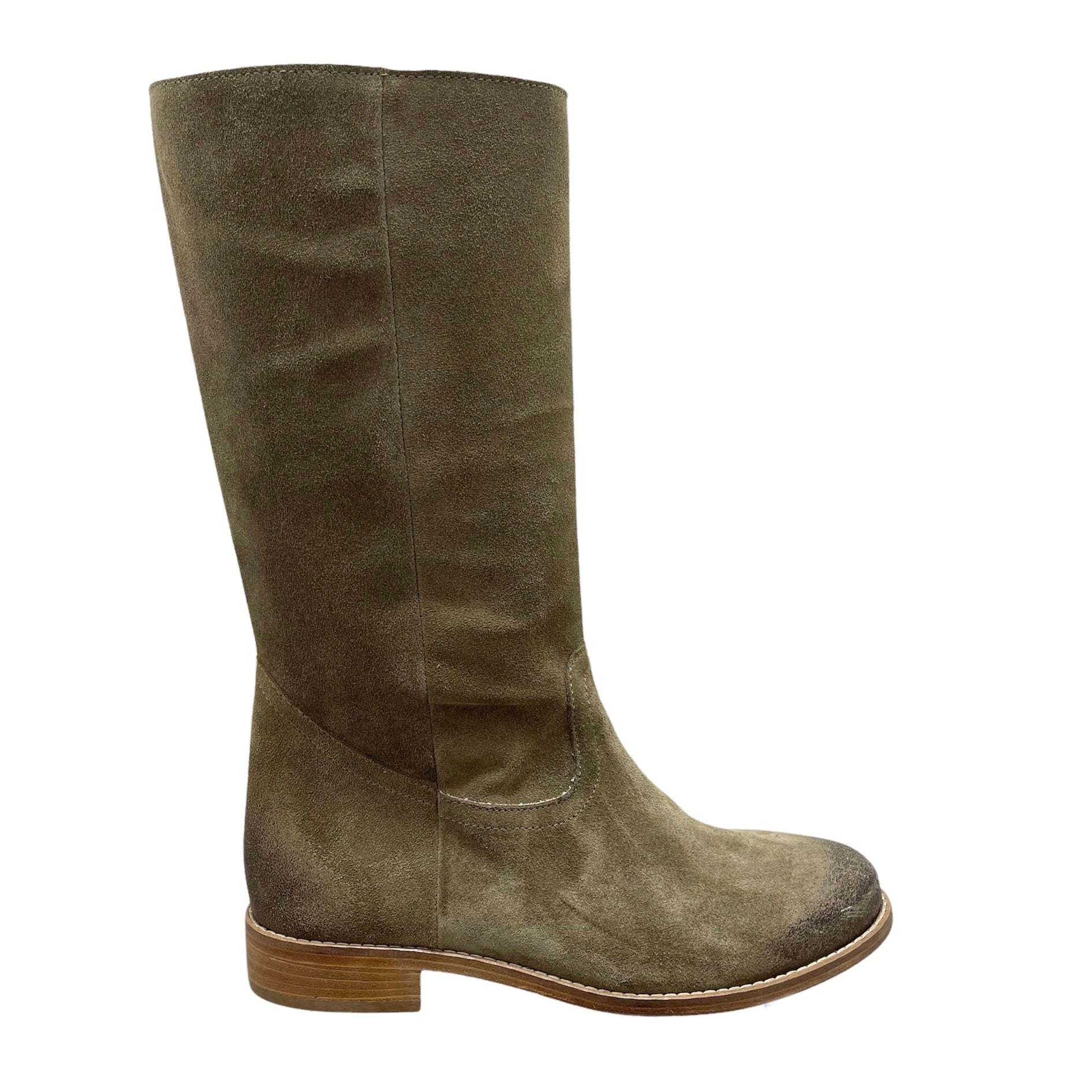 Stivale in camoscio, interno in pelle, fondo in cuoio, tacco 25mm.
