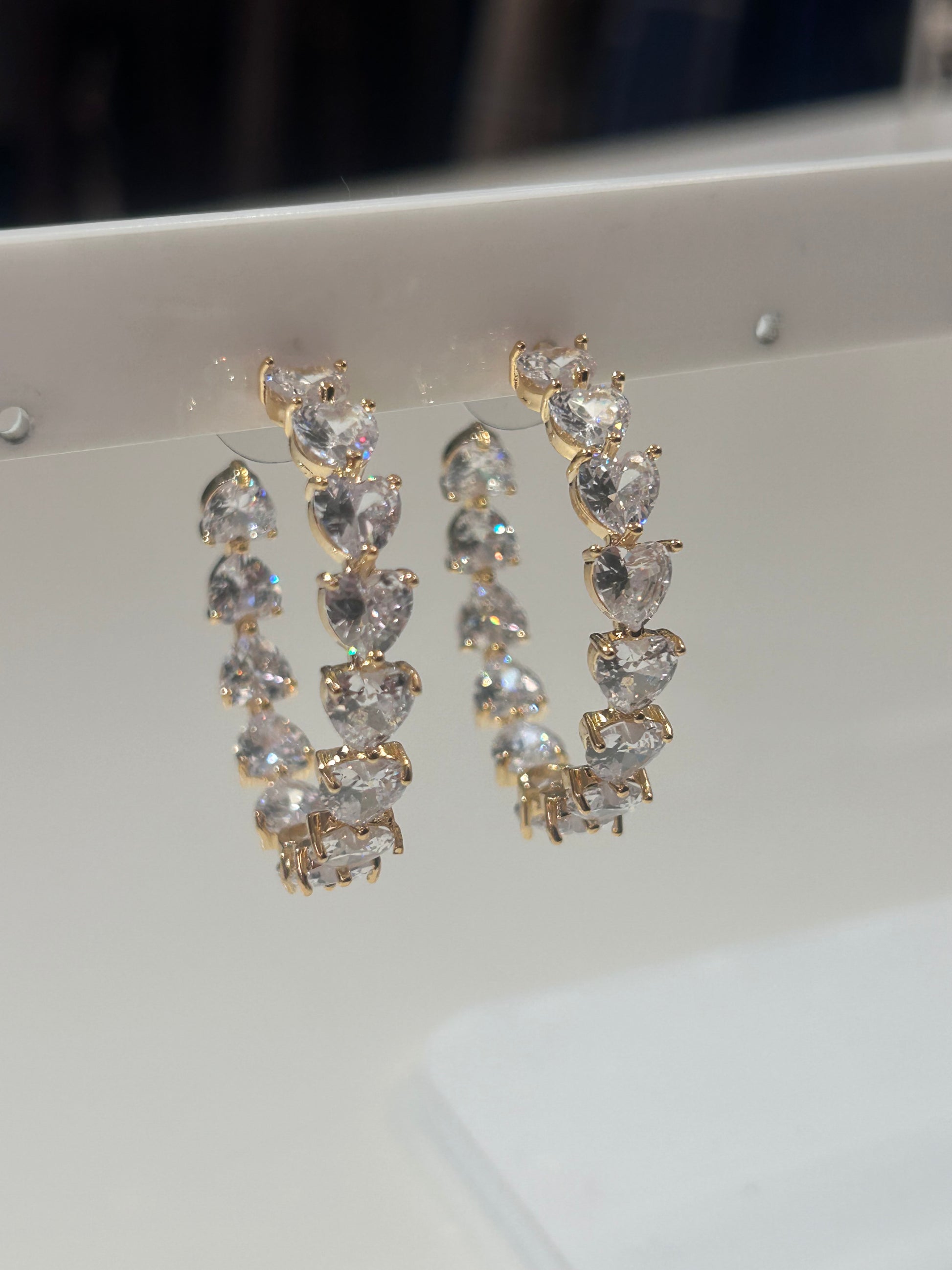 Orecchini semicerchi variante oro con strass a forma di cuore