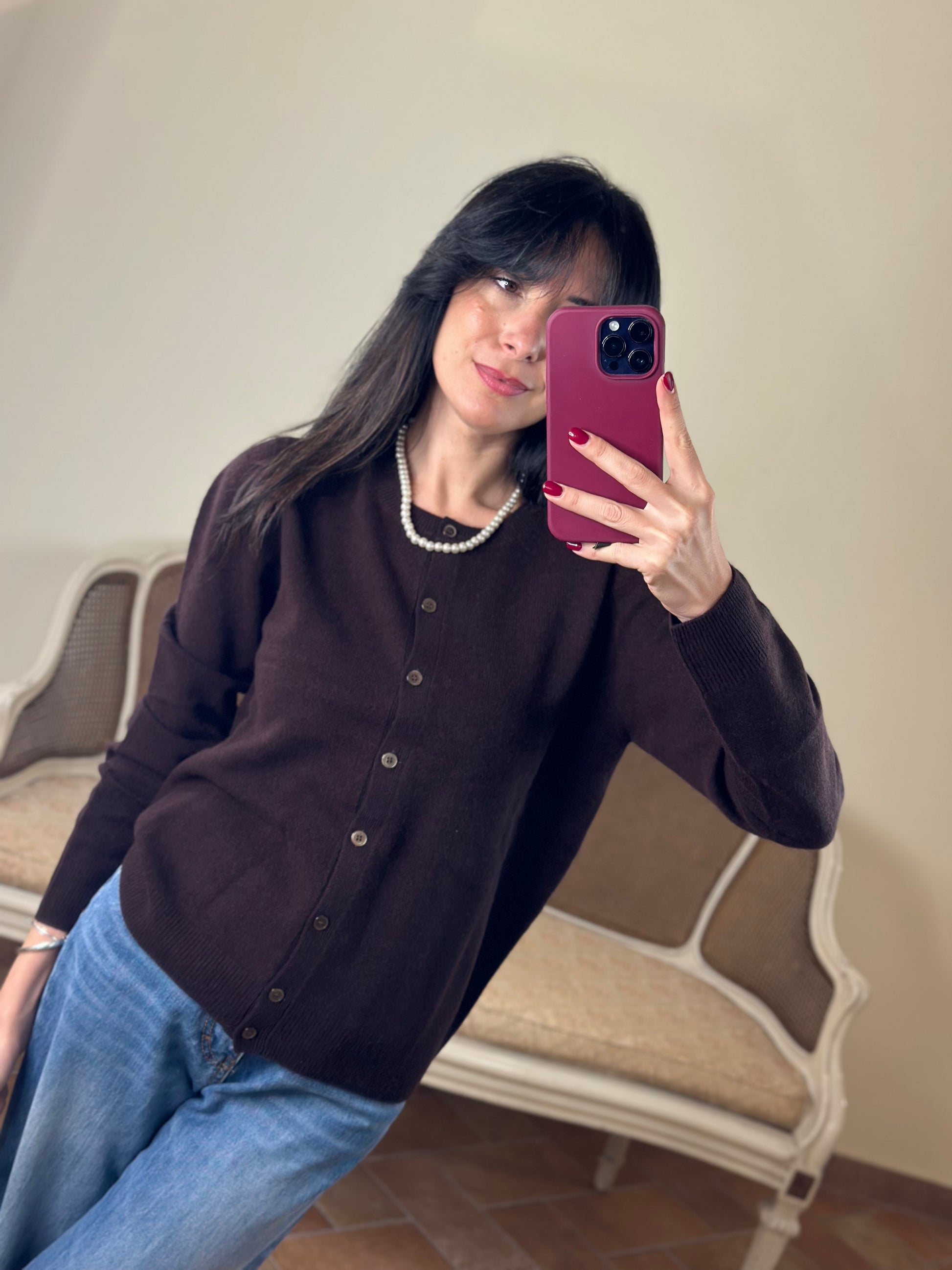 Cardigan CARLA paricollo misto cashmere CAFFEE