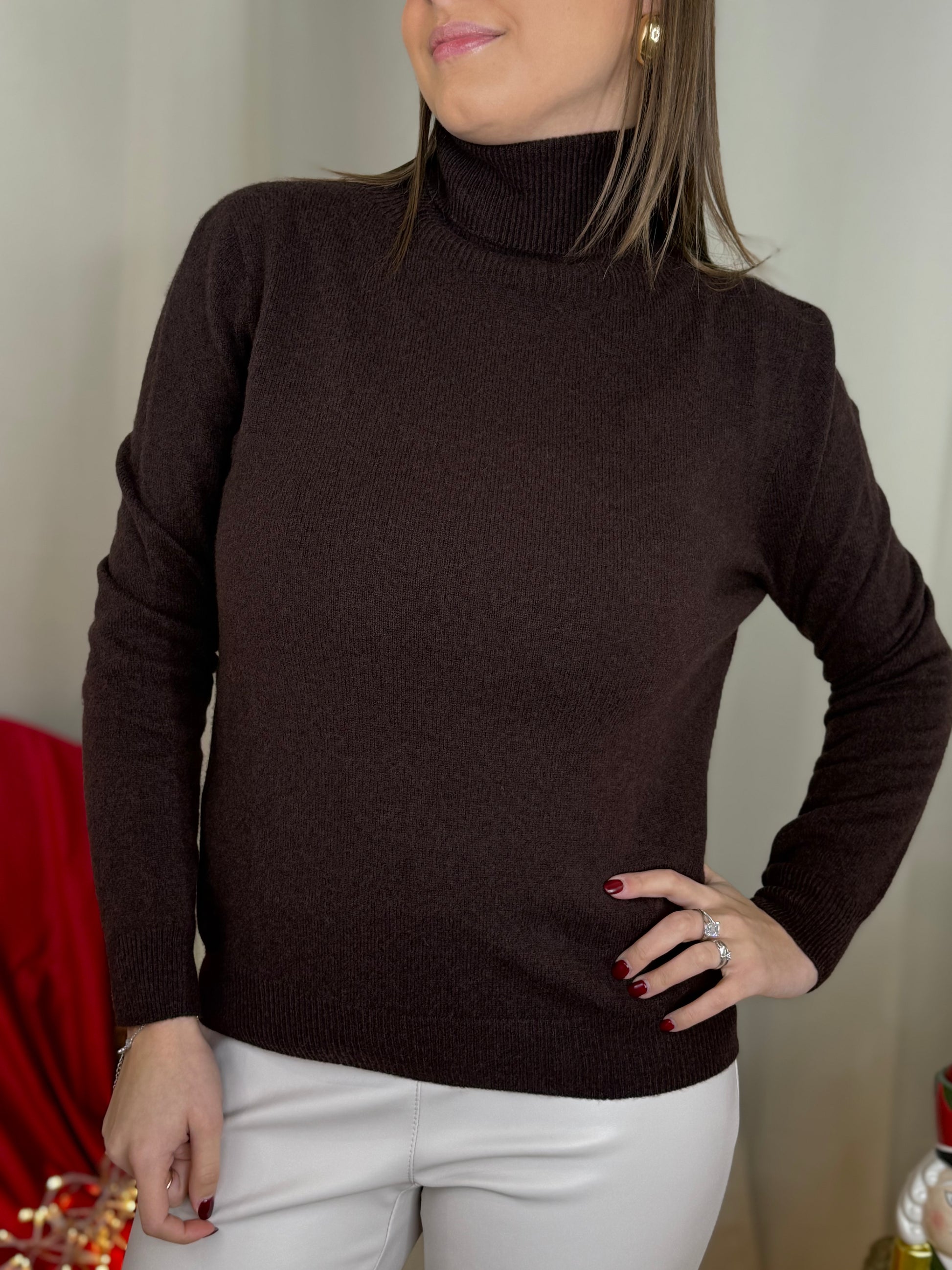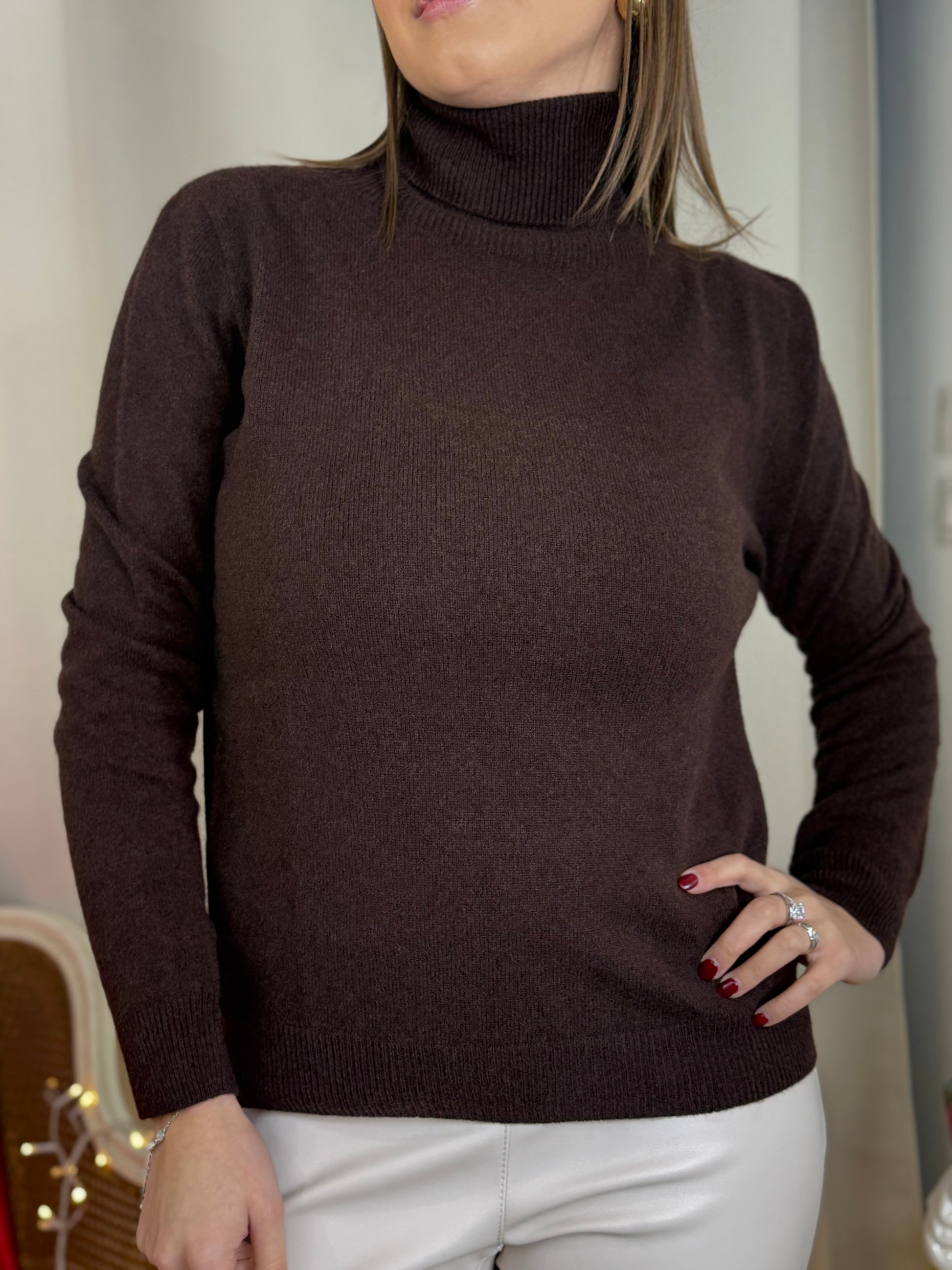 Maglia collo alto misto cashmere CAFFEE