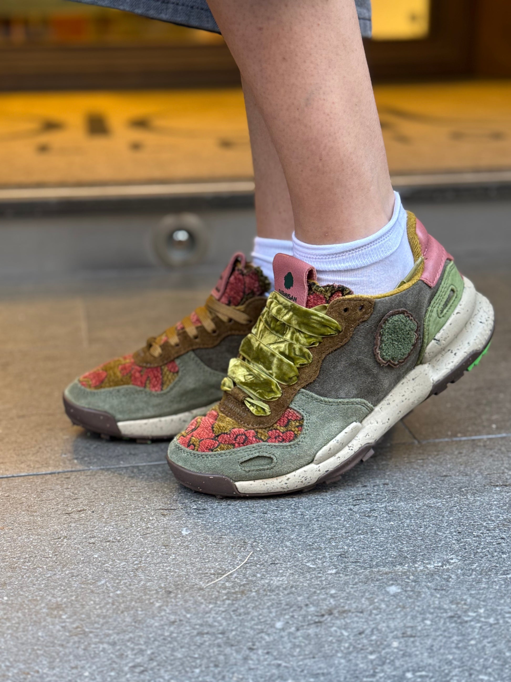 Chacrona, la nostra creazione ecosostenibile, prende il nome dalla foglia amazzonica utilizzata dalle tribù indigene per connettere corpo e anima. È la nostra interpretazione di una scarpa da cross-training degli anni '80, super comoda e resistente.