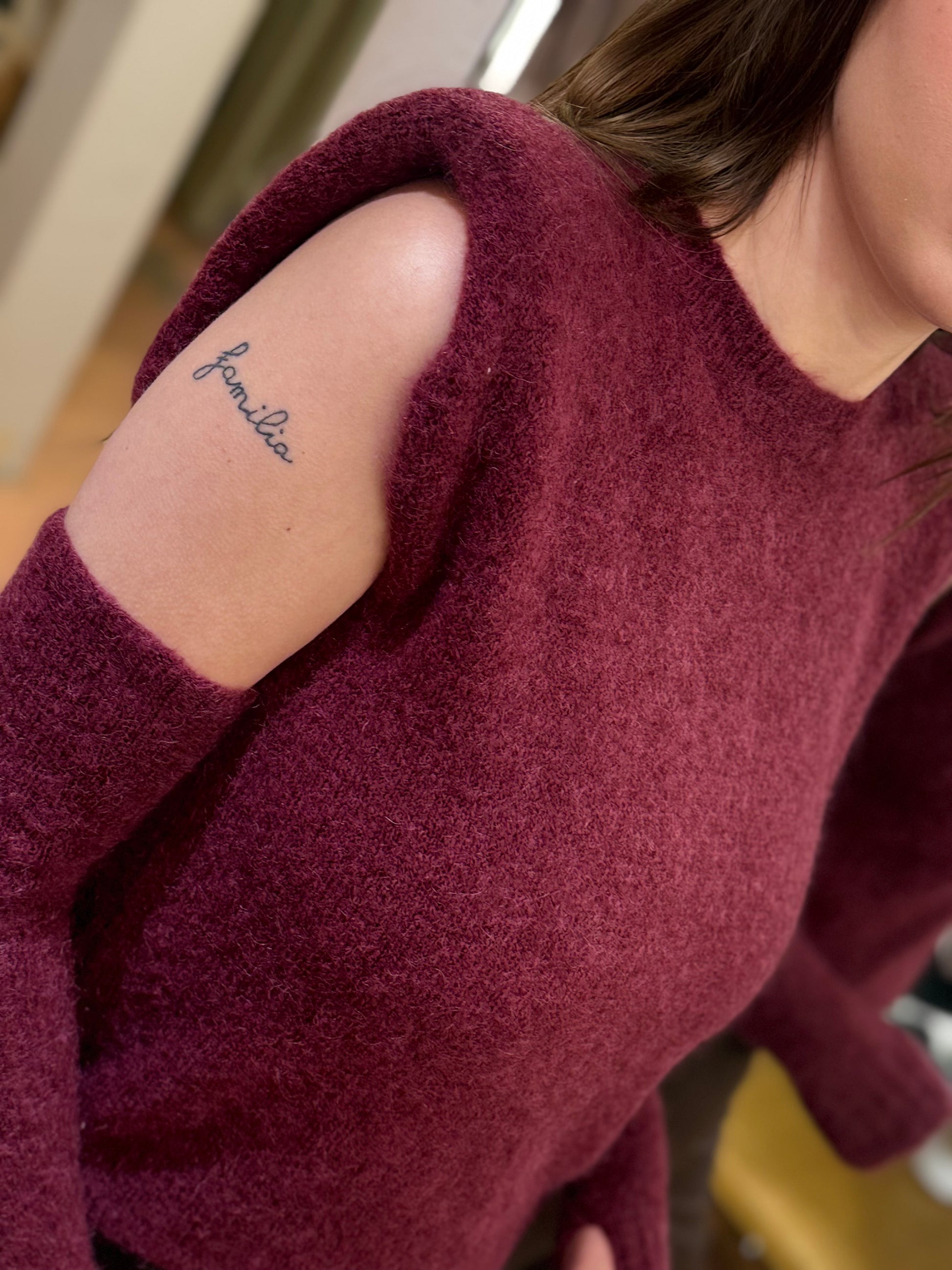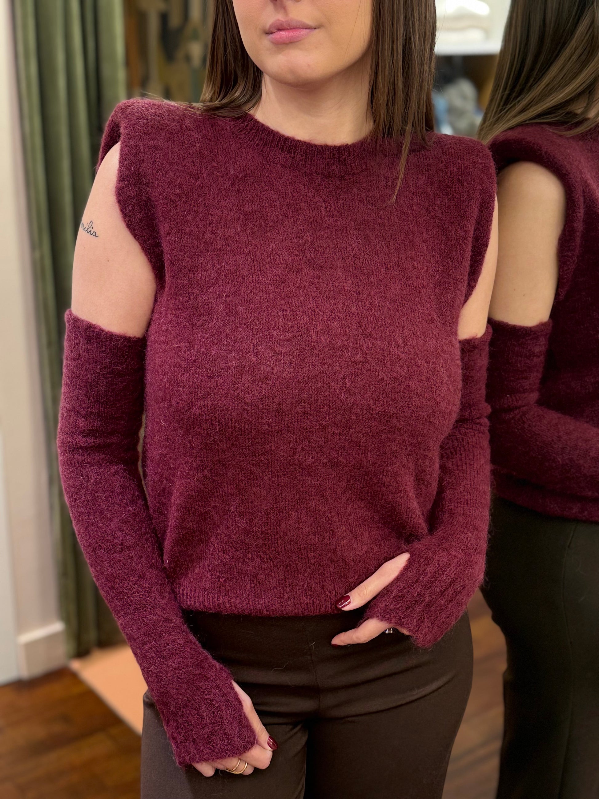 Tensione in Maglia mohair elasticizzato spalline imbottite con manicotti BURGUNDY