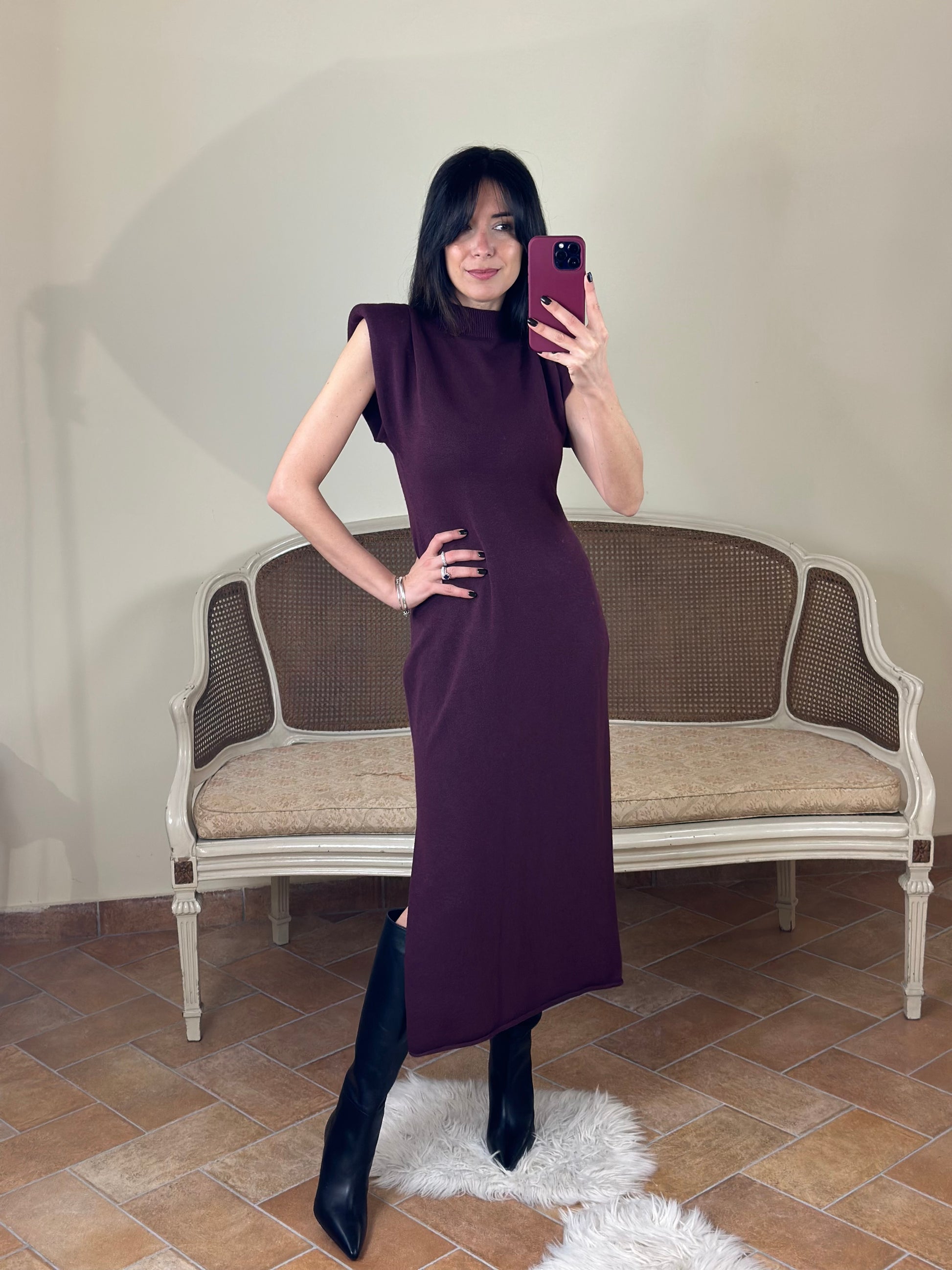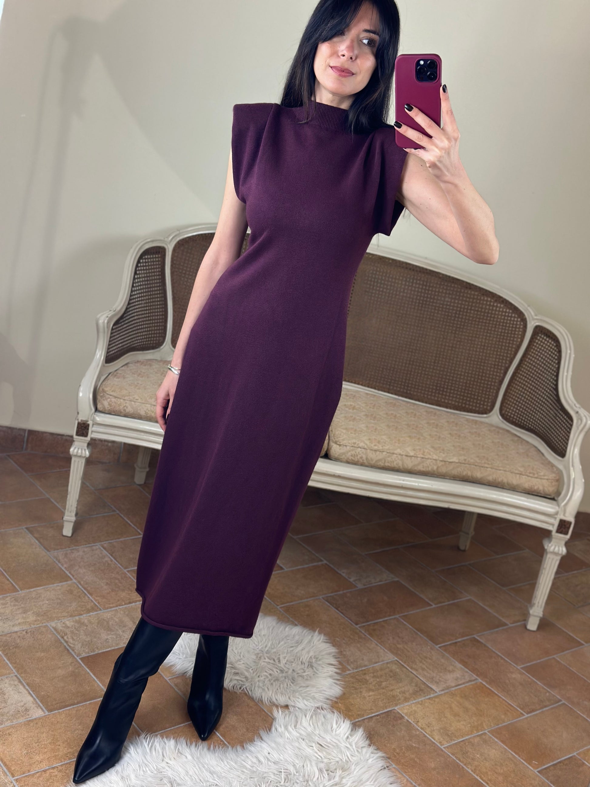 Abito lungo in maglina con spalline imbottite VINO