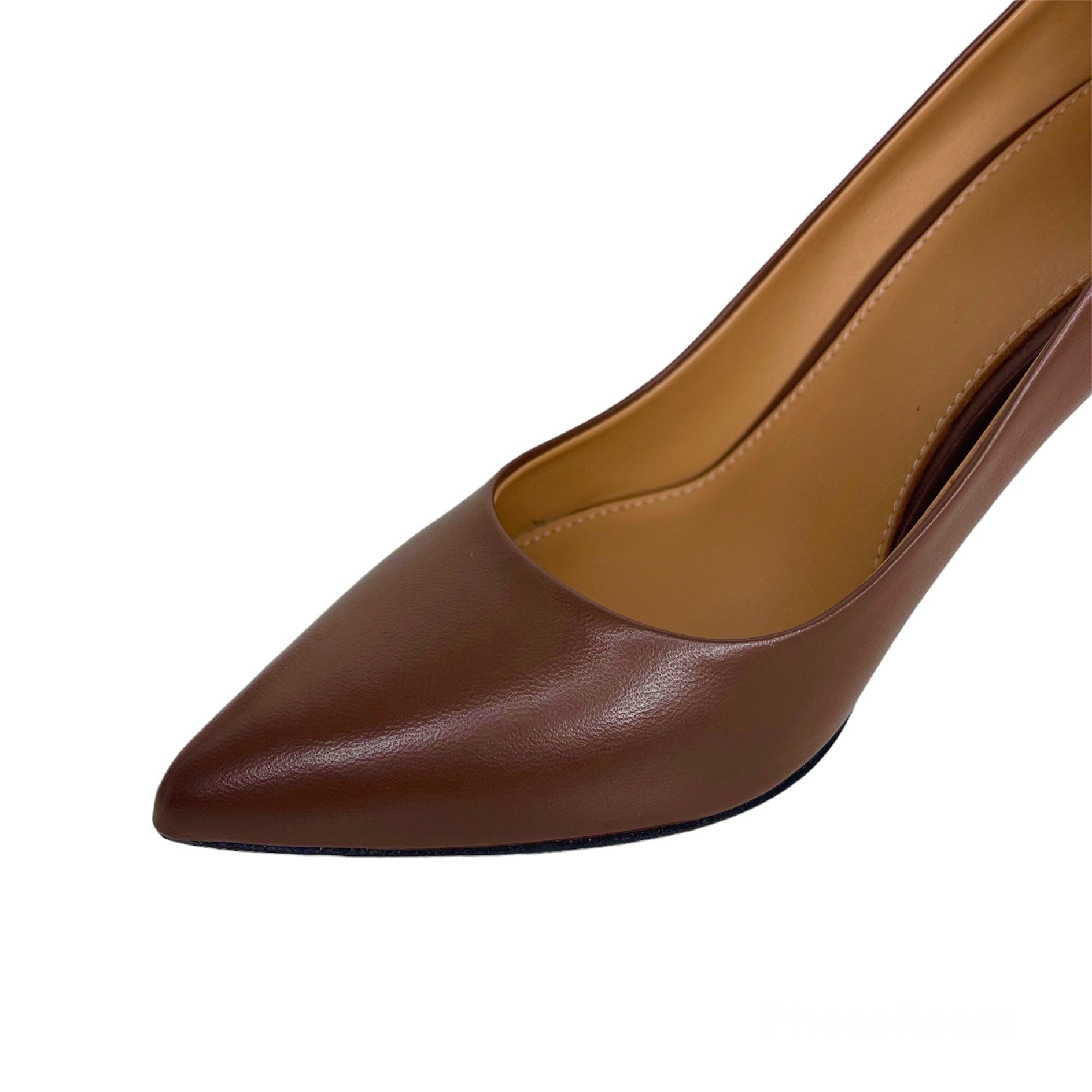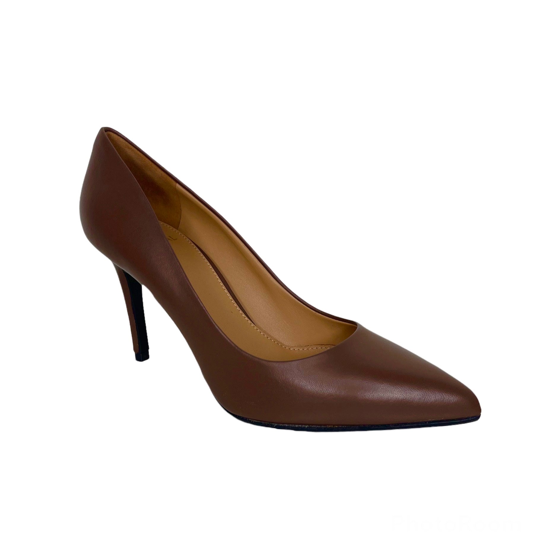 Décolleté in nappa, interno in pelle, tacco foderato in pelle 80mm, suola in cuoio e gomma.
