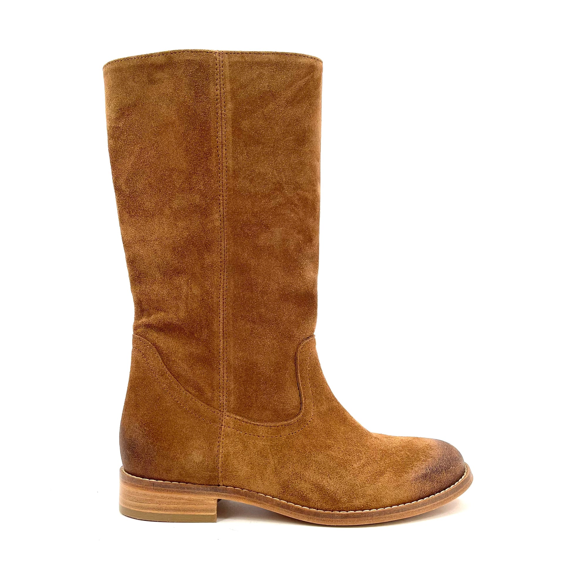 Stivale in camoscio, fondo in cuoio, tacco 25mm.