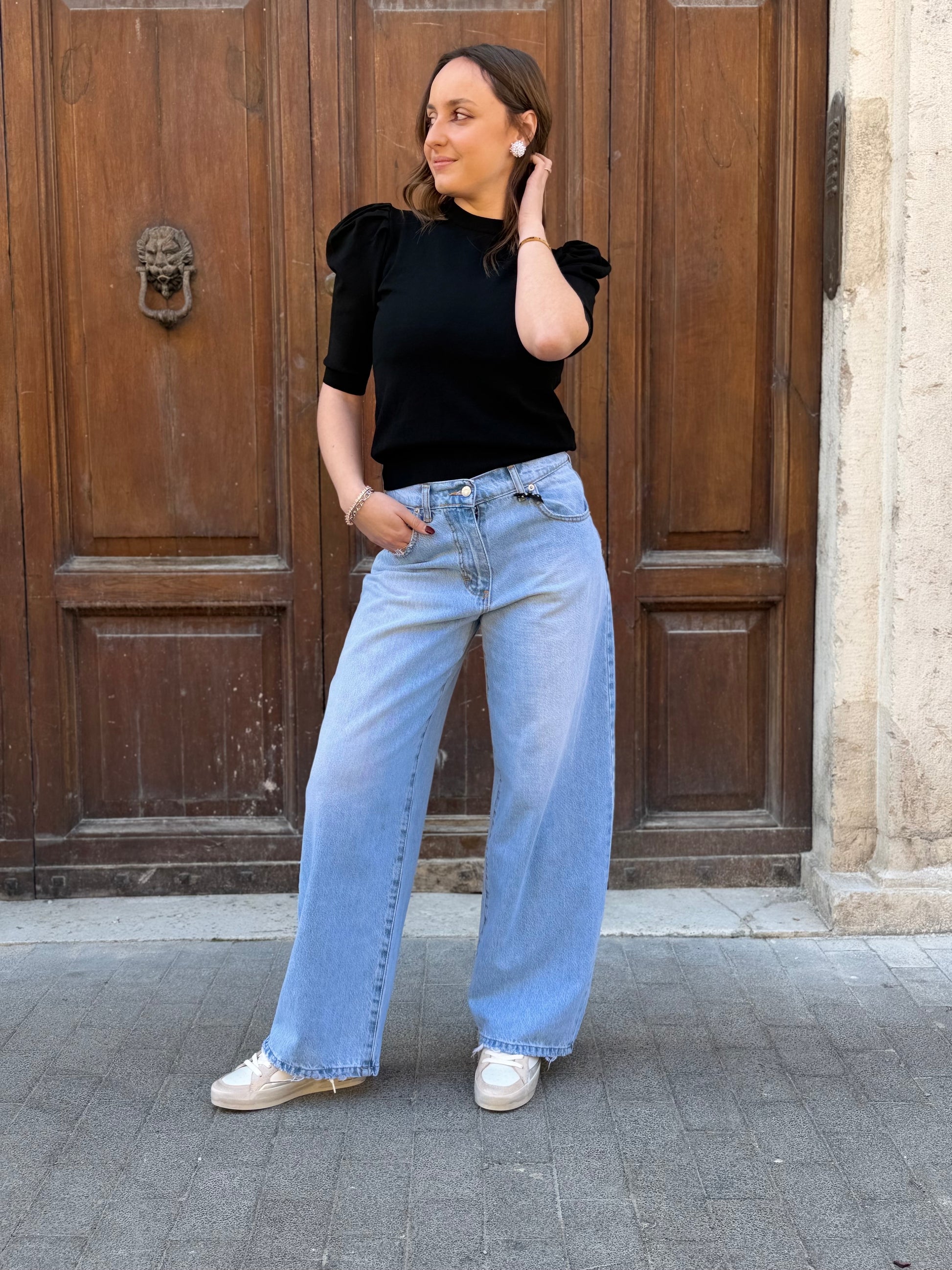 Haveone Maglia manica a sbuffo NERA