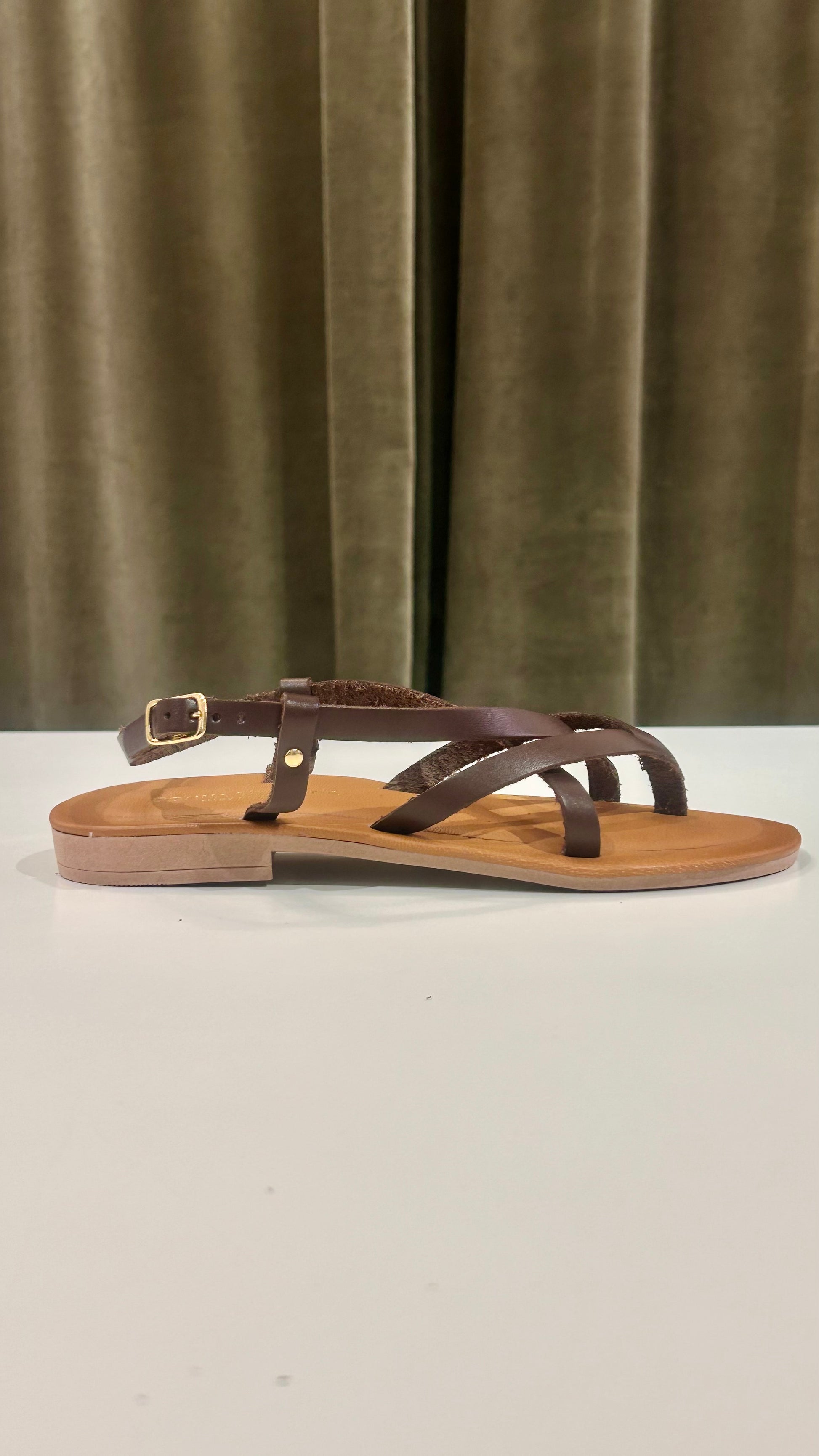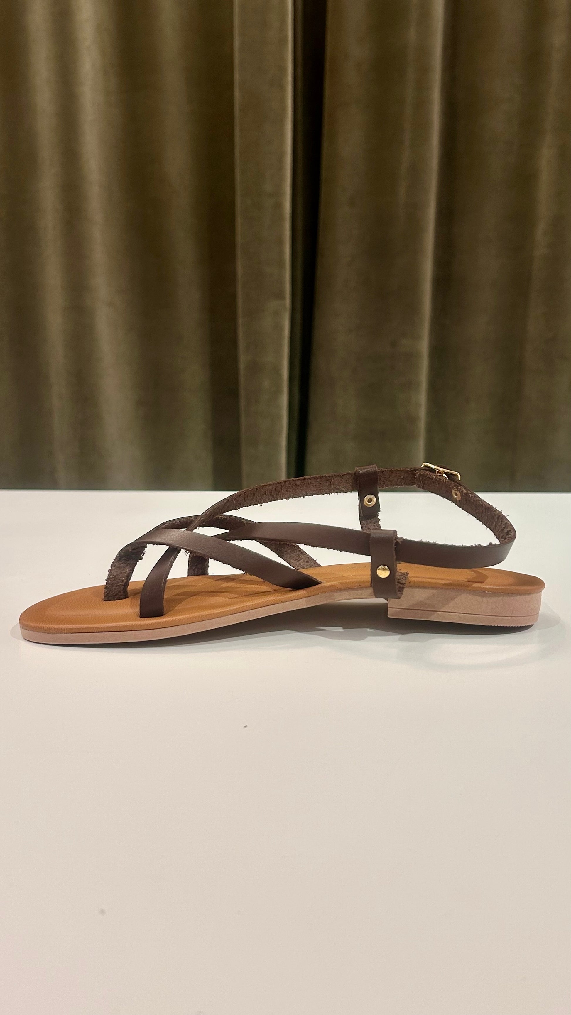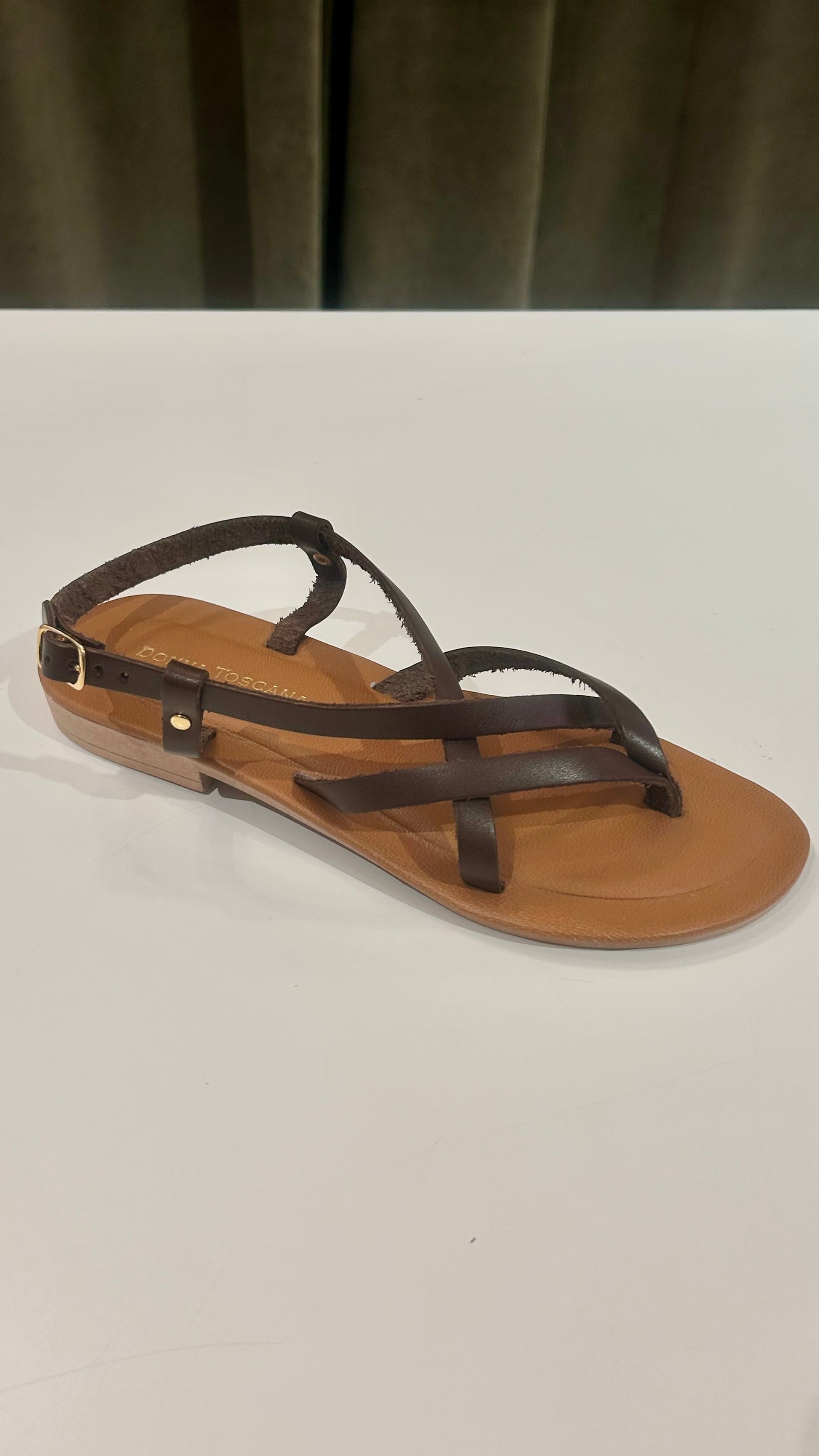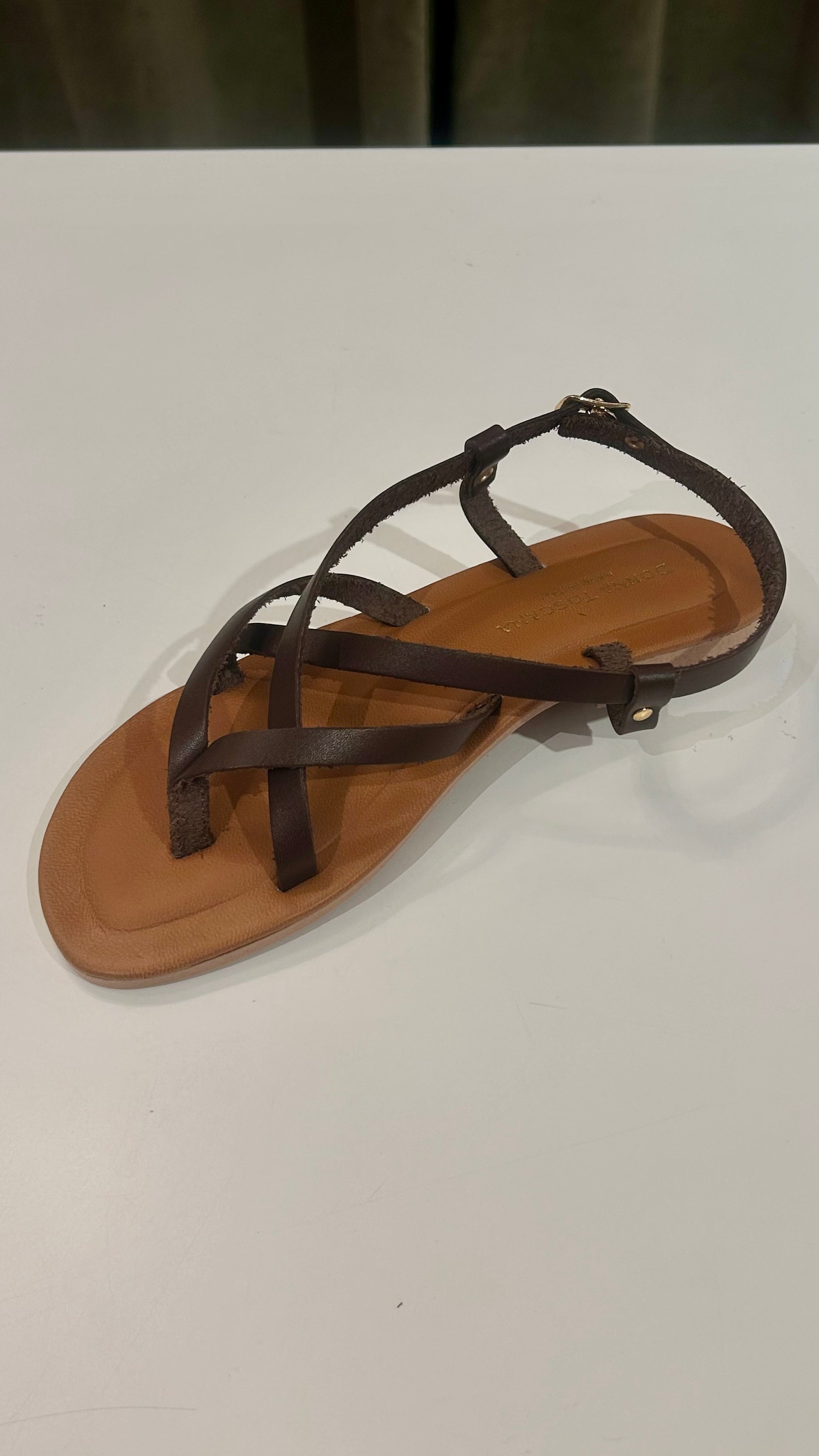 Infradito flat con incrocio nero in vera pelle, cinturino con fibbia regolabile, sottopiede imbottito in pelle, fondo in gomma, MADE IN ITALY
