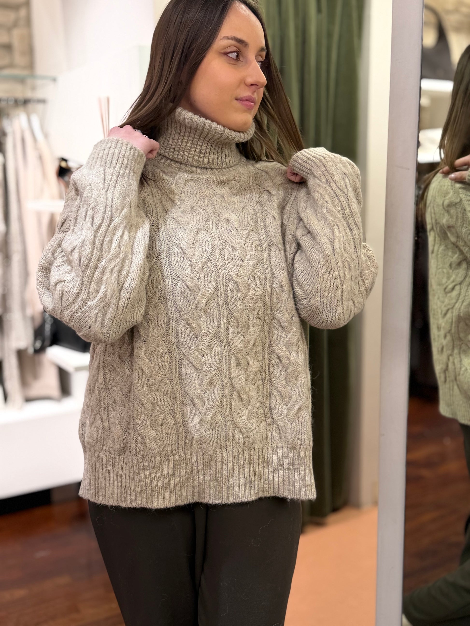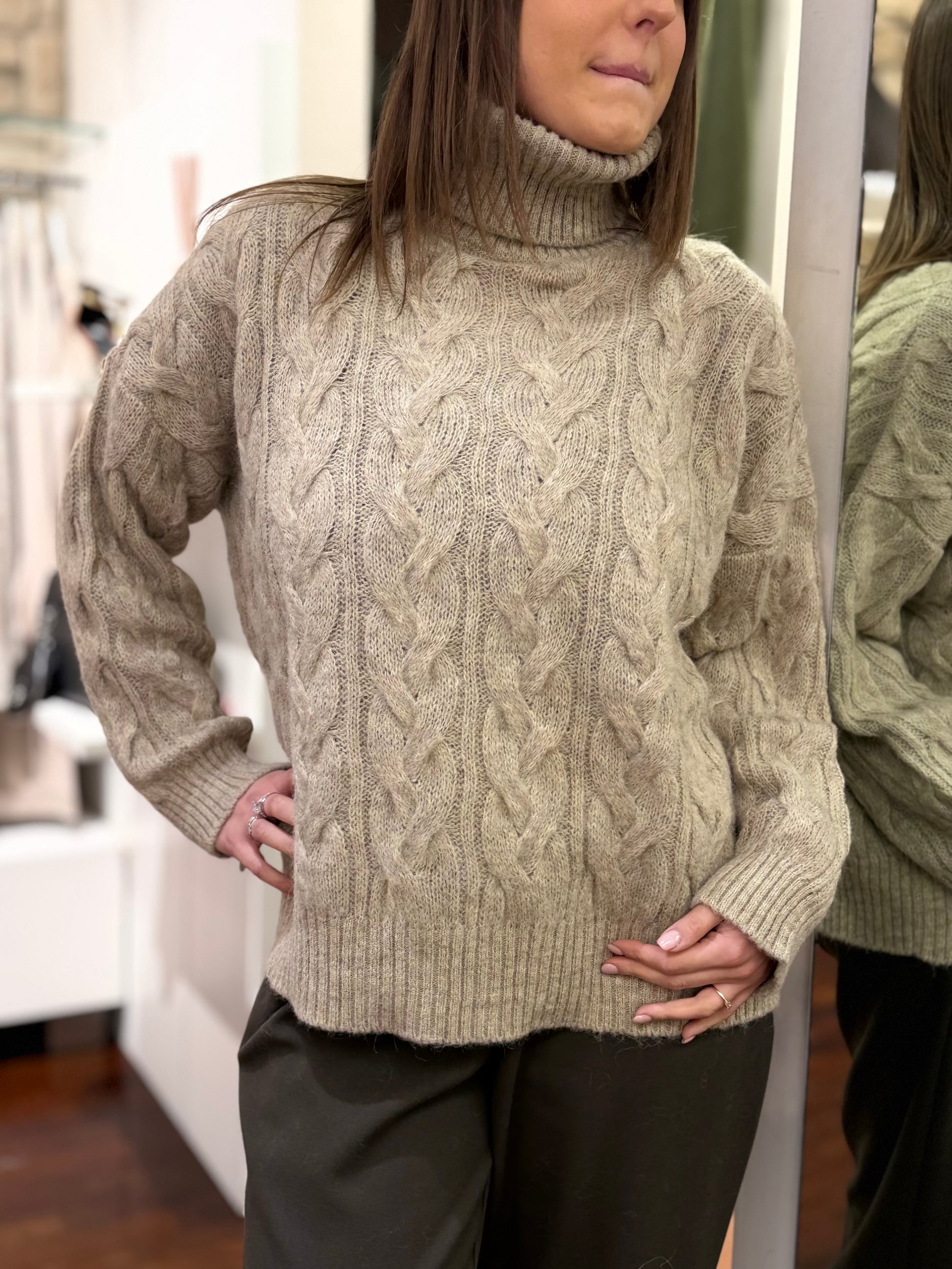 Tensione In Maglia collo alto con trecce in alpaca BEIGE