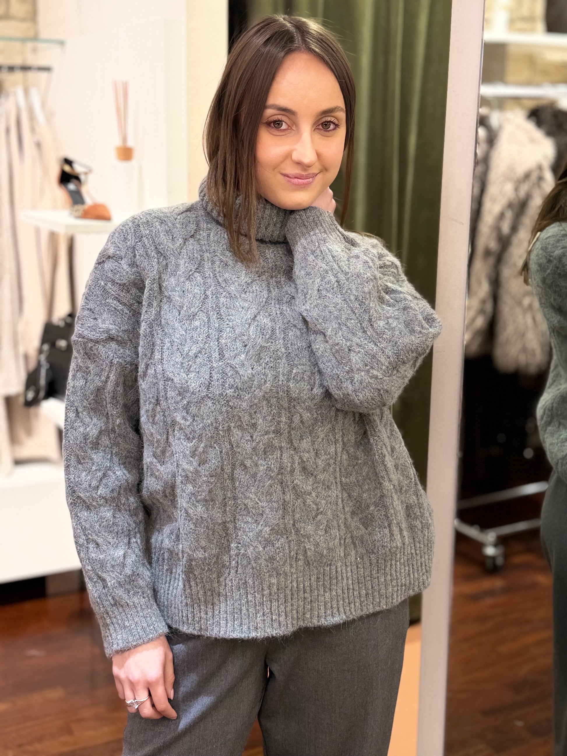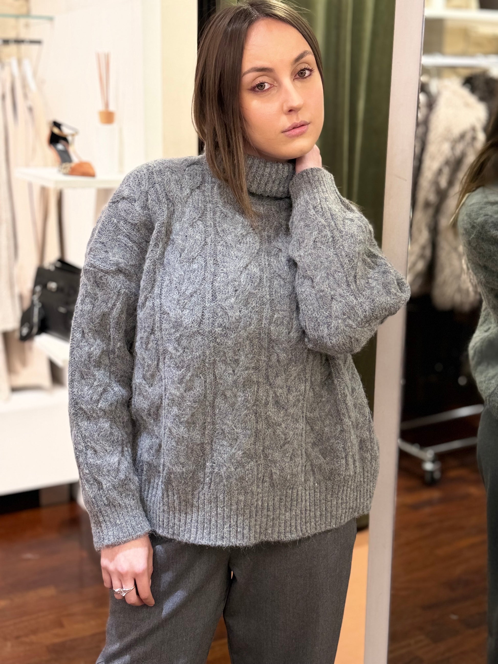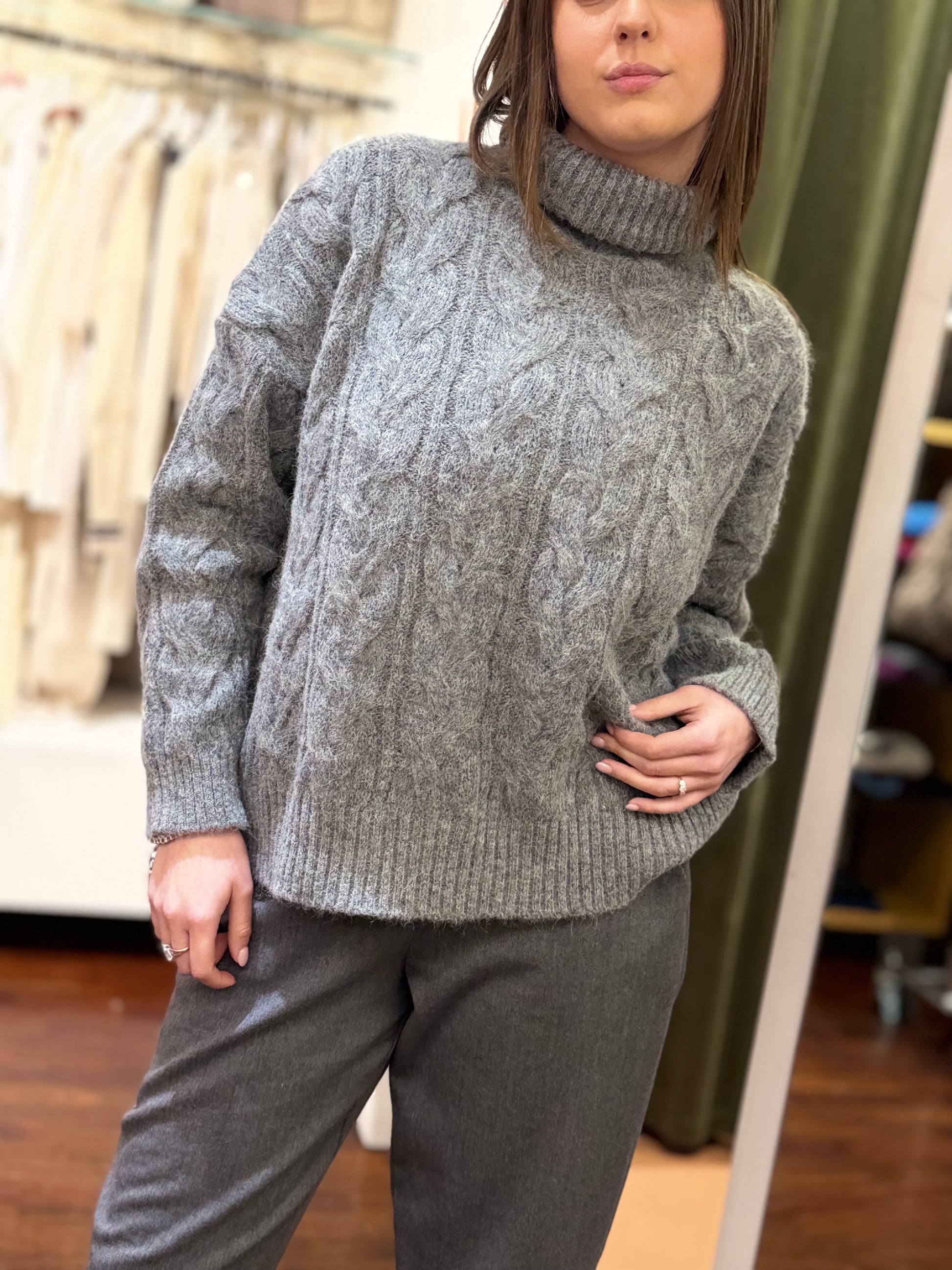 Tensione In Maglia collo alto con trecce in alpaca GRIGIO
