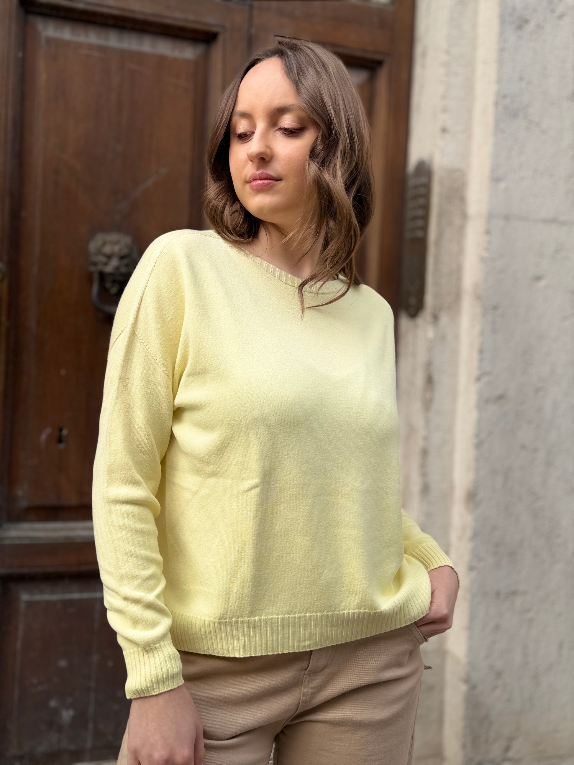 Tensione in Maglia girocollo con bottone gioiello GIALLO
