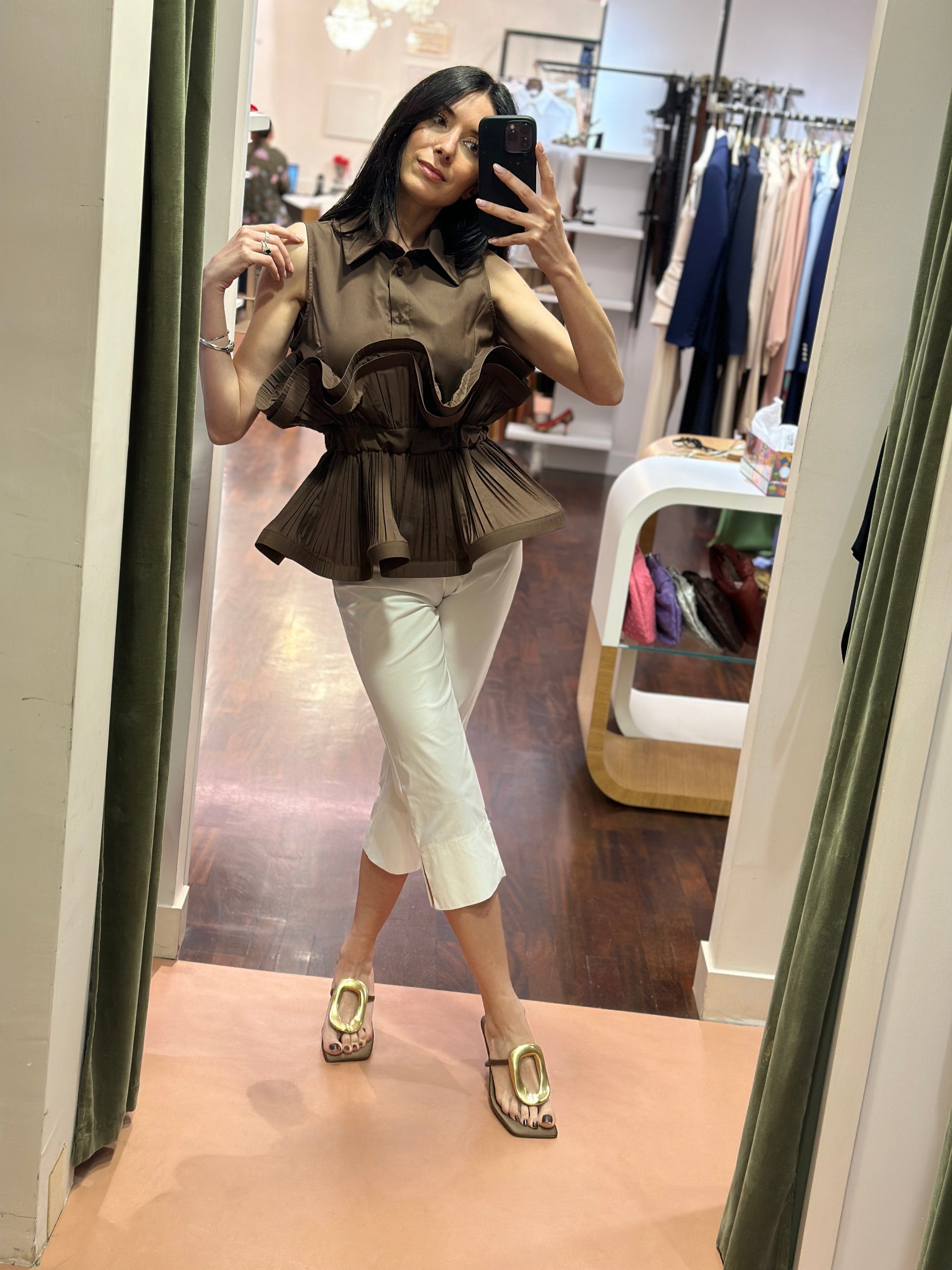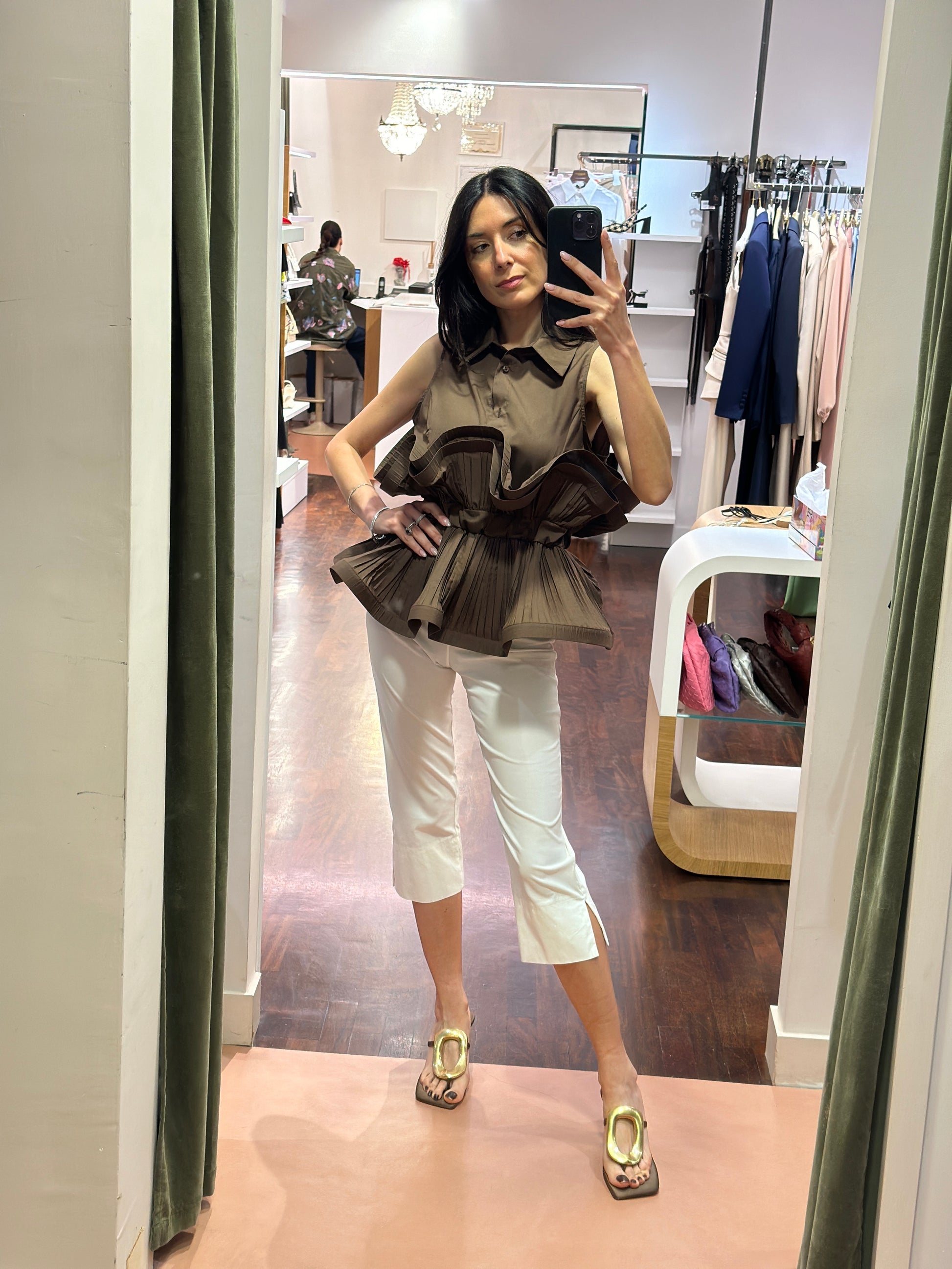 Pantalone i cotone a pinocchietto con elastico in vita e spacchetti sul fondo