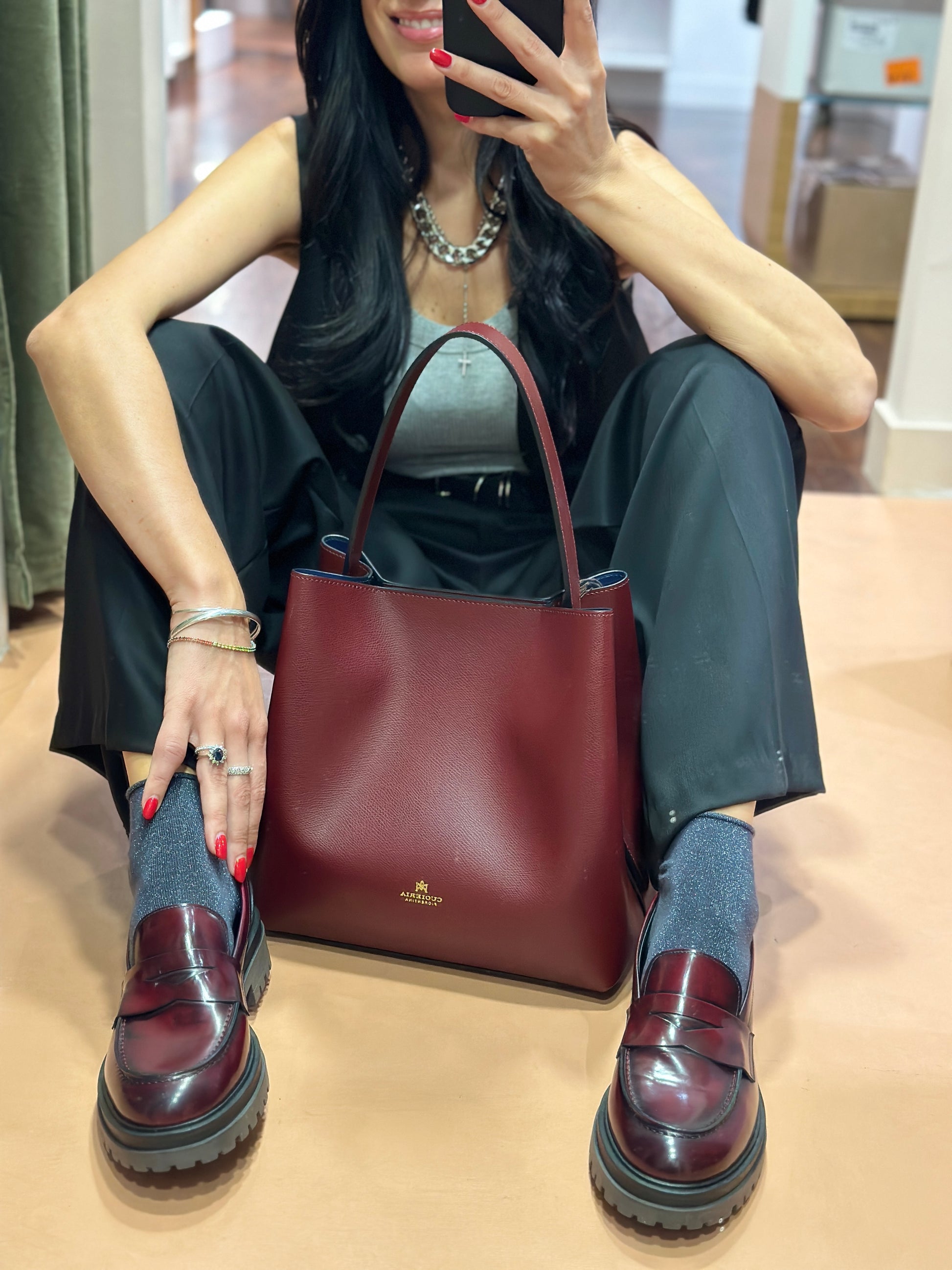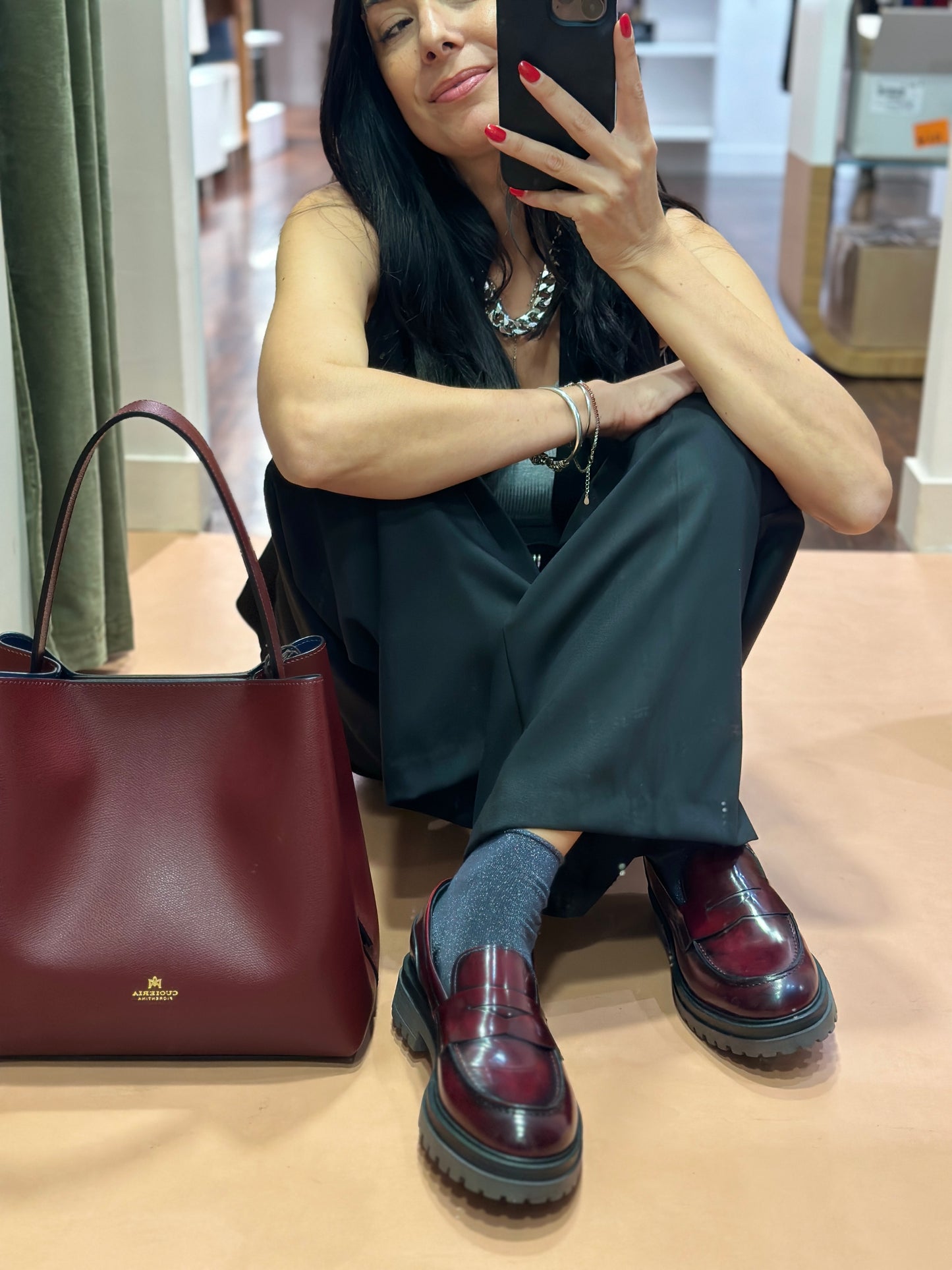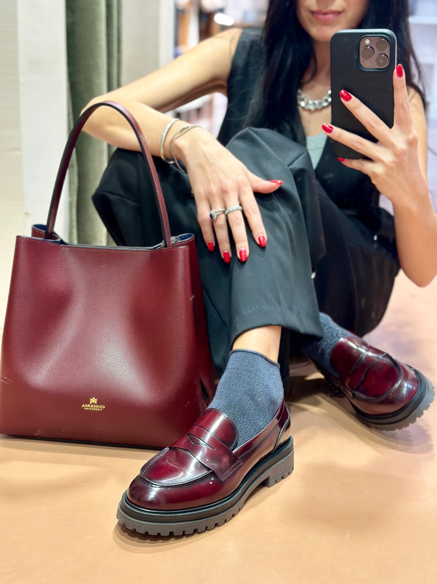 Mocassino all'inglese in pelle spazzolata, interno in pelle, fondo carrarmato 40 mm in gomma.