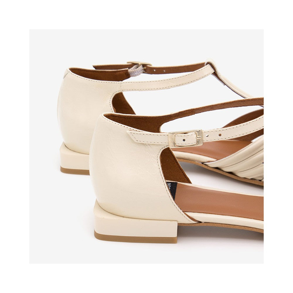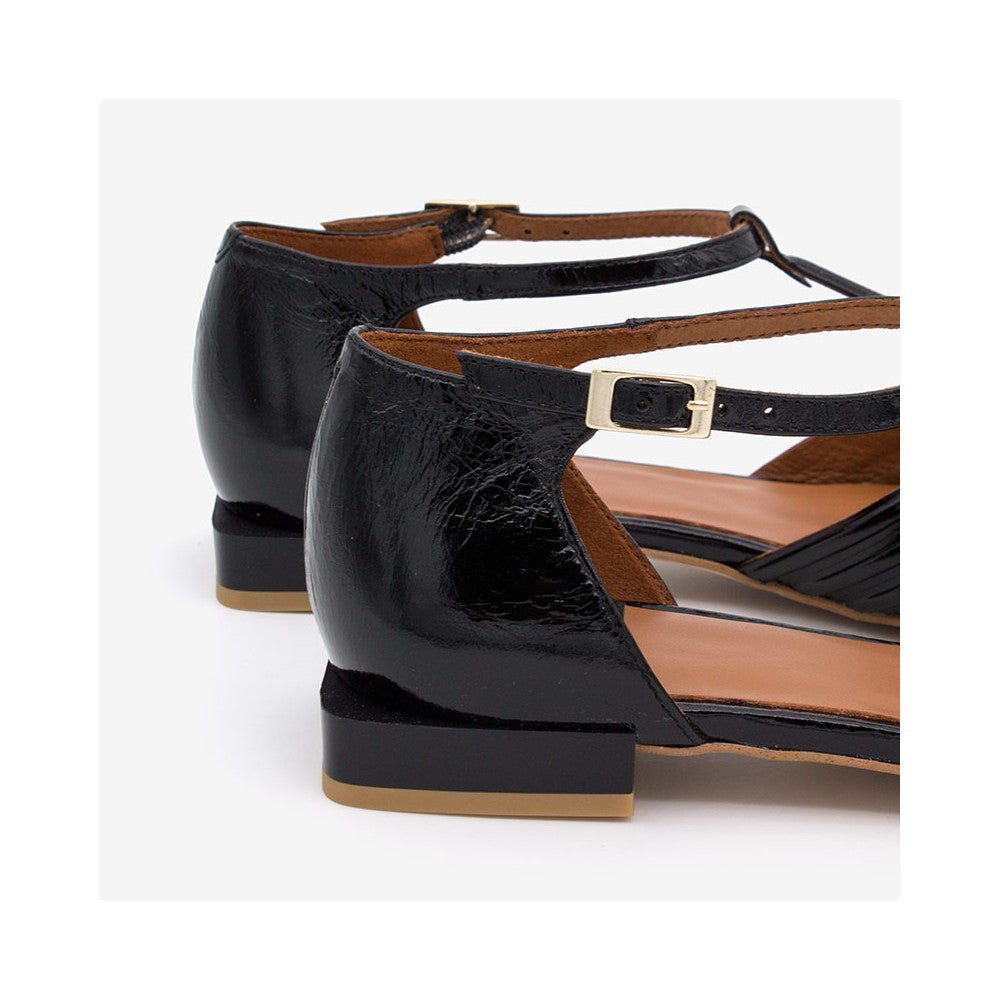 Ballerina in pelle e vernice traforata con cinturino.