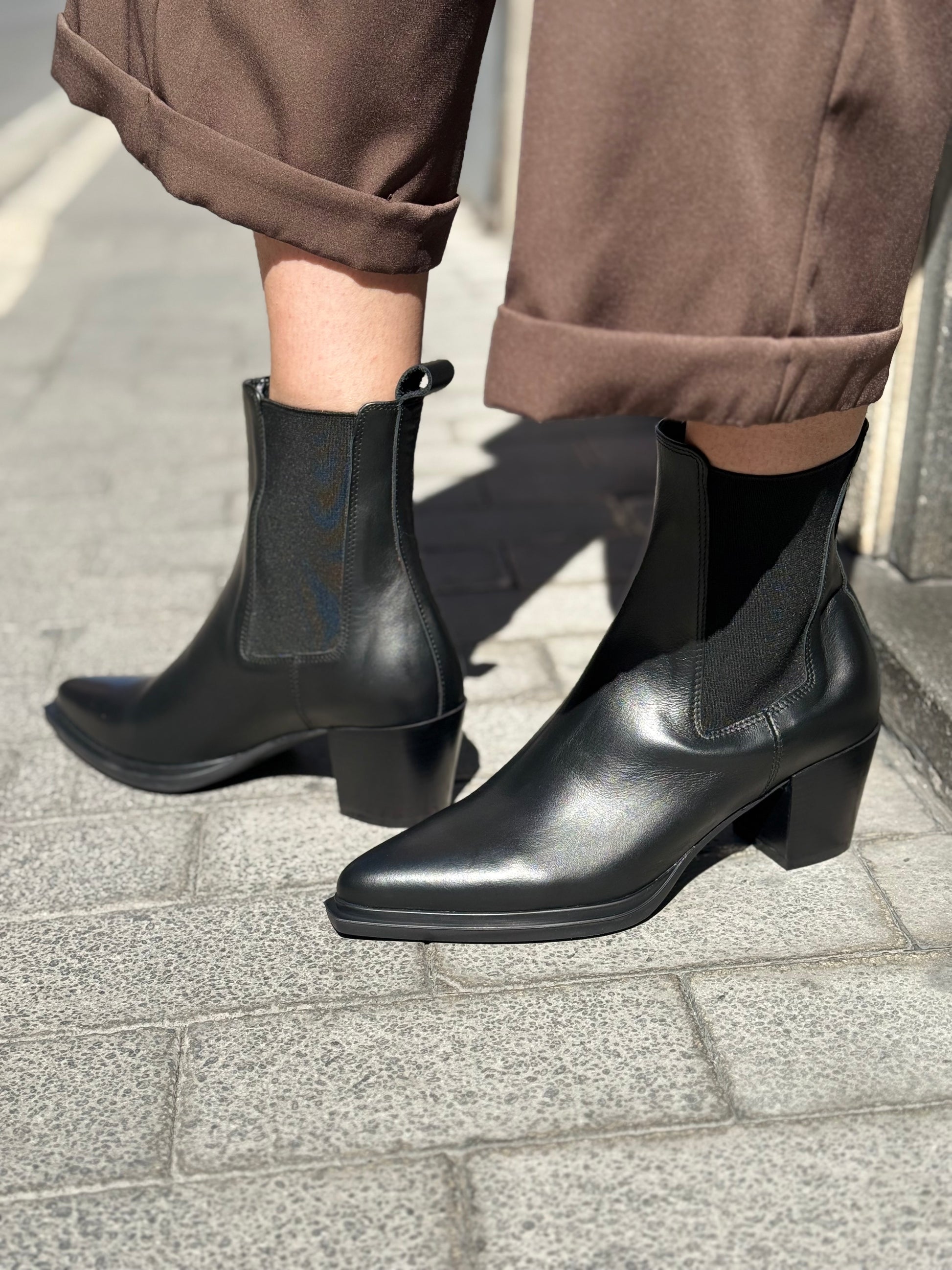 caratterizzato da elastici ì per facilitare l'ingresso del piede. Tacco largo e comodo,