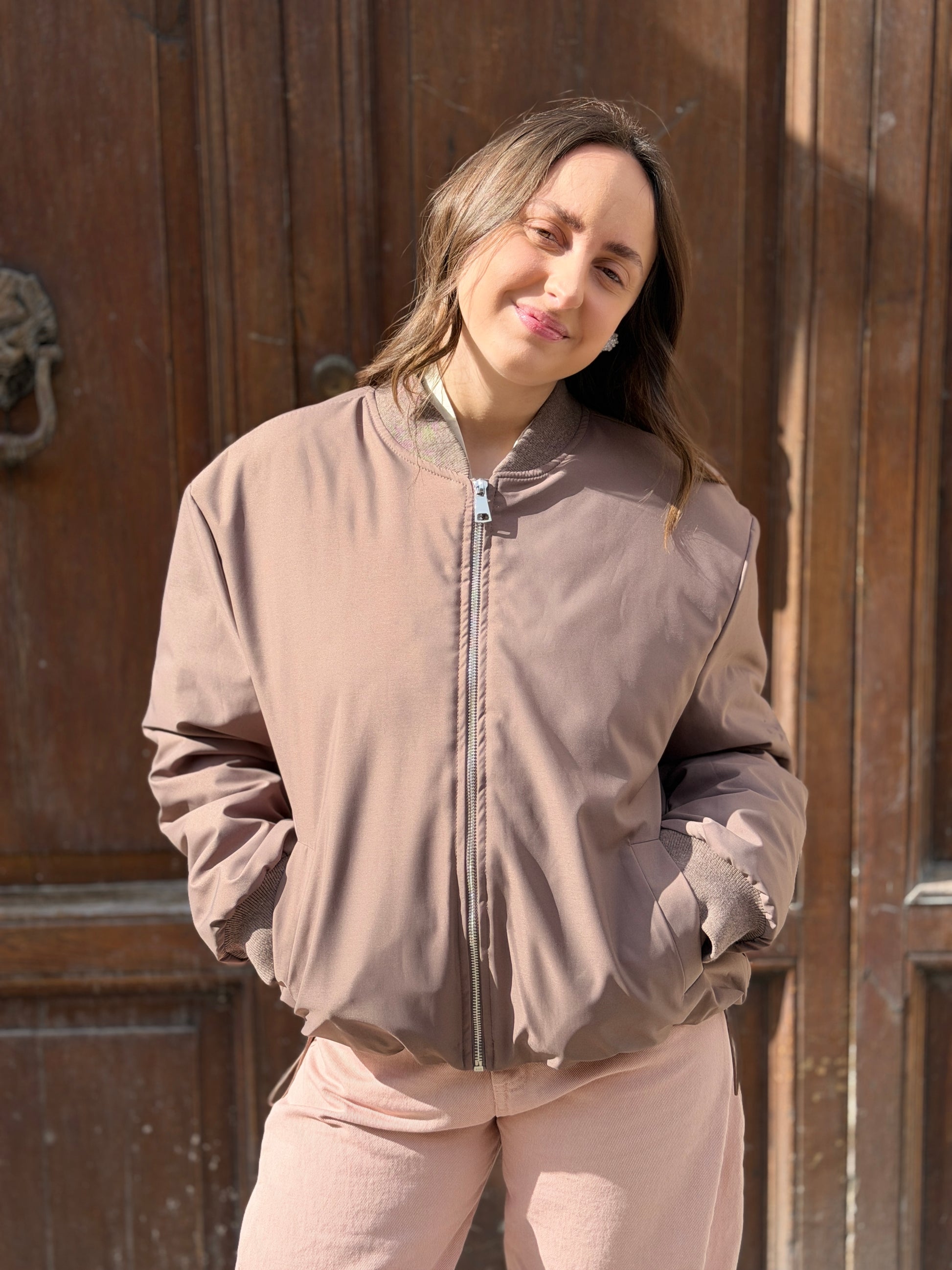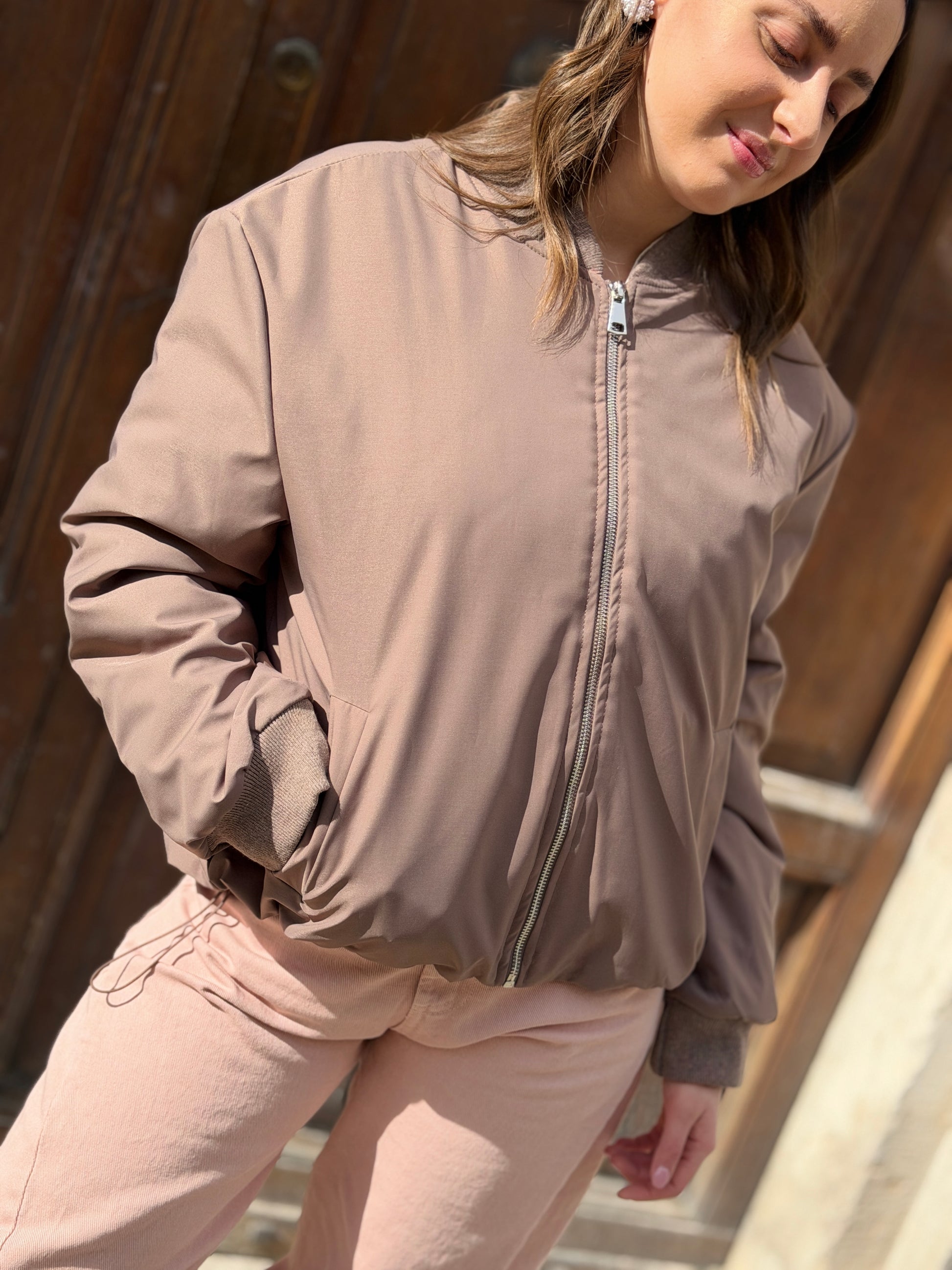 Bomber trapuntato, mezzo collo e polsini con finiture a costine.