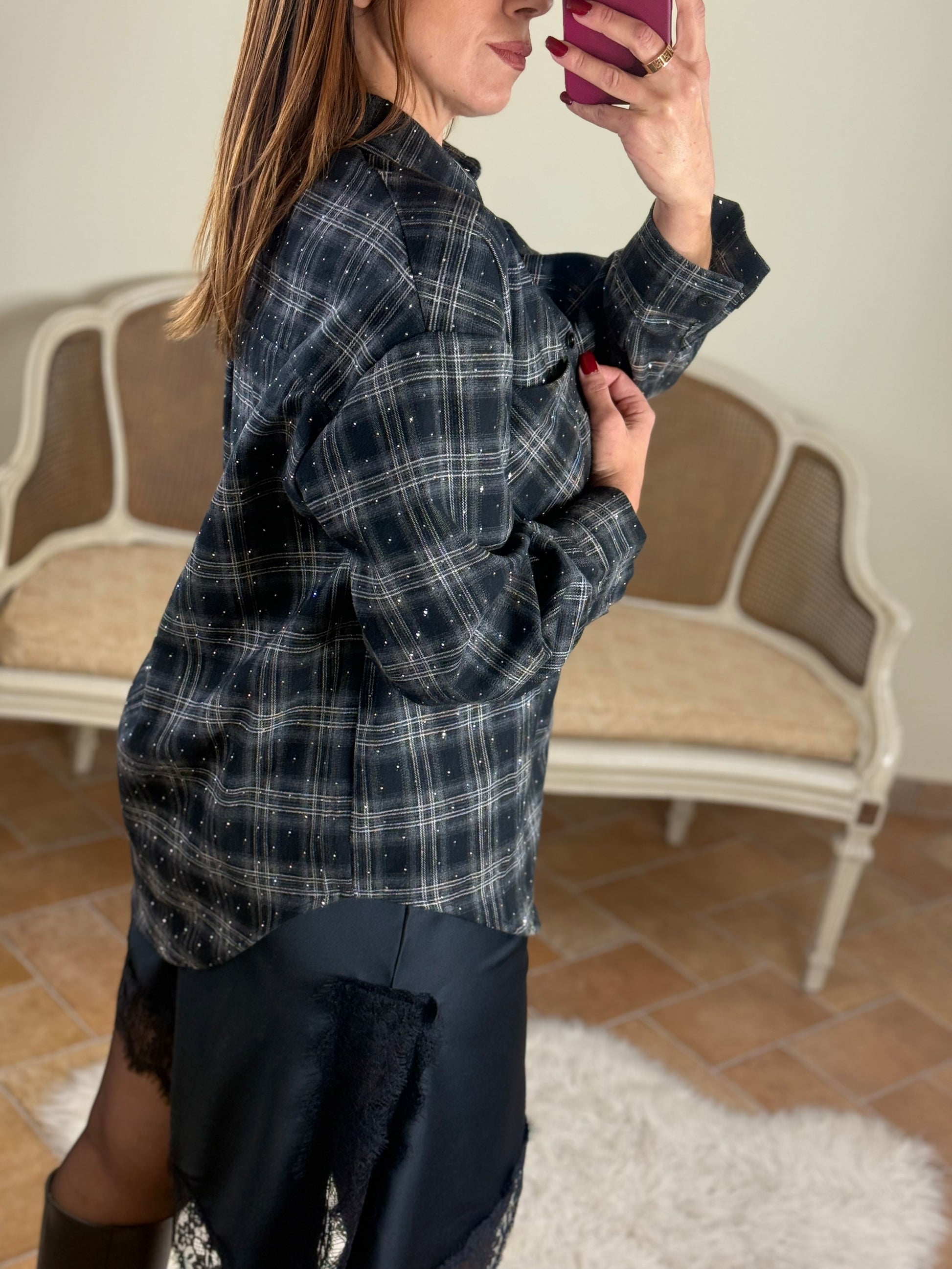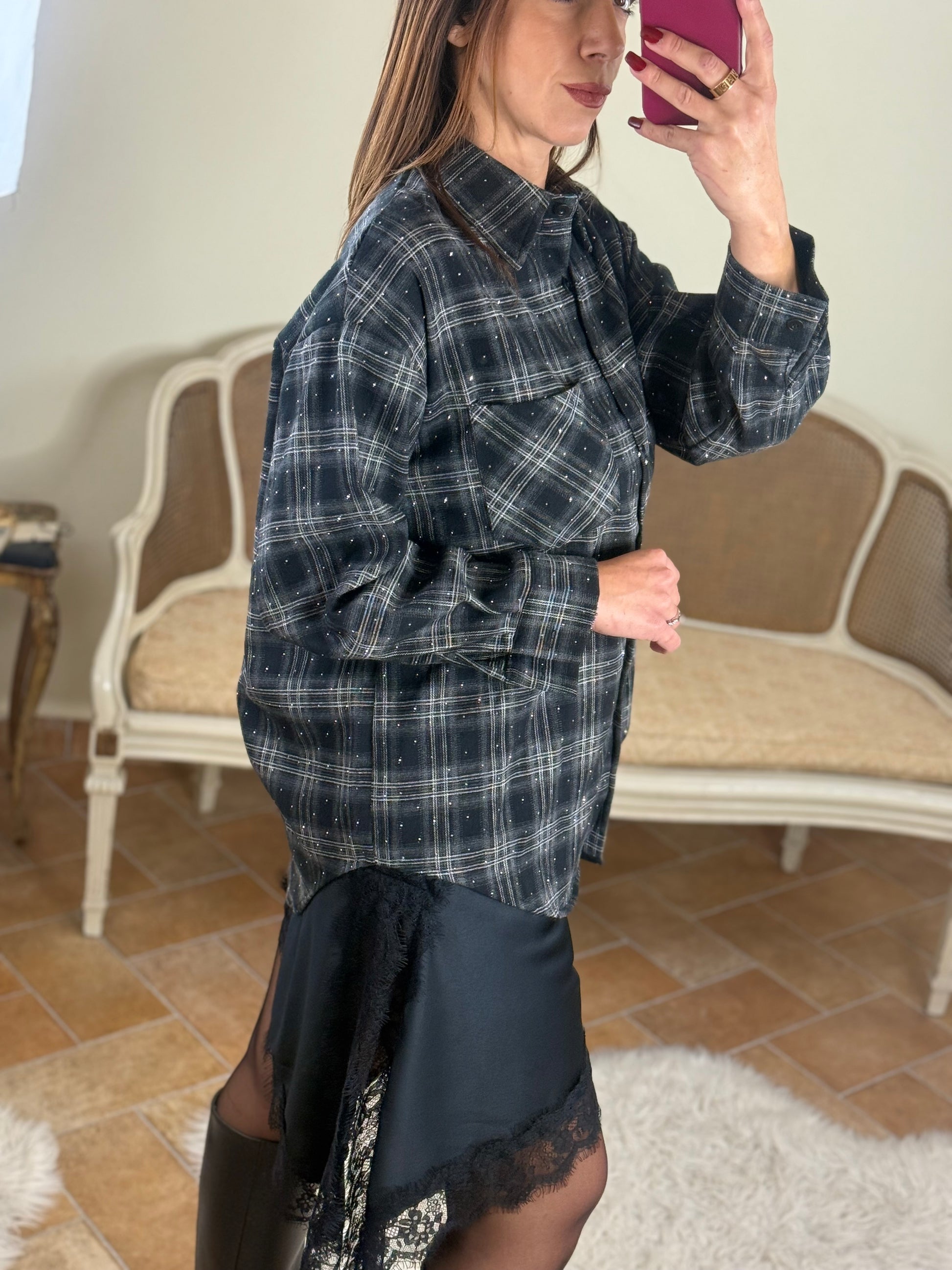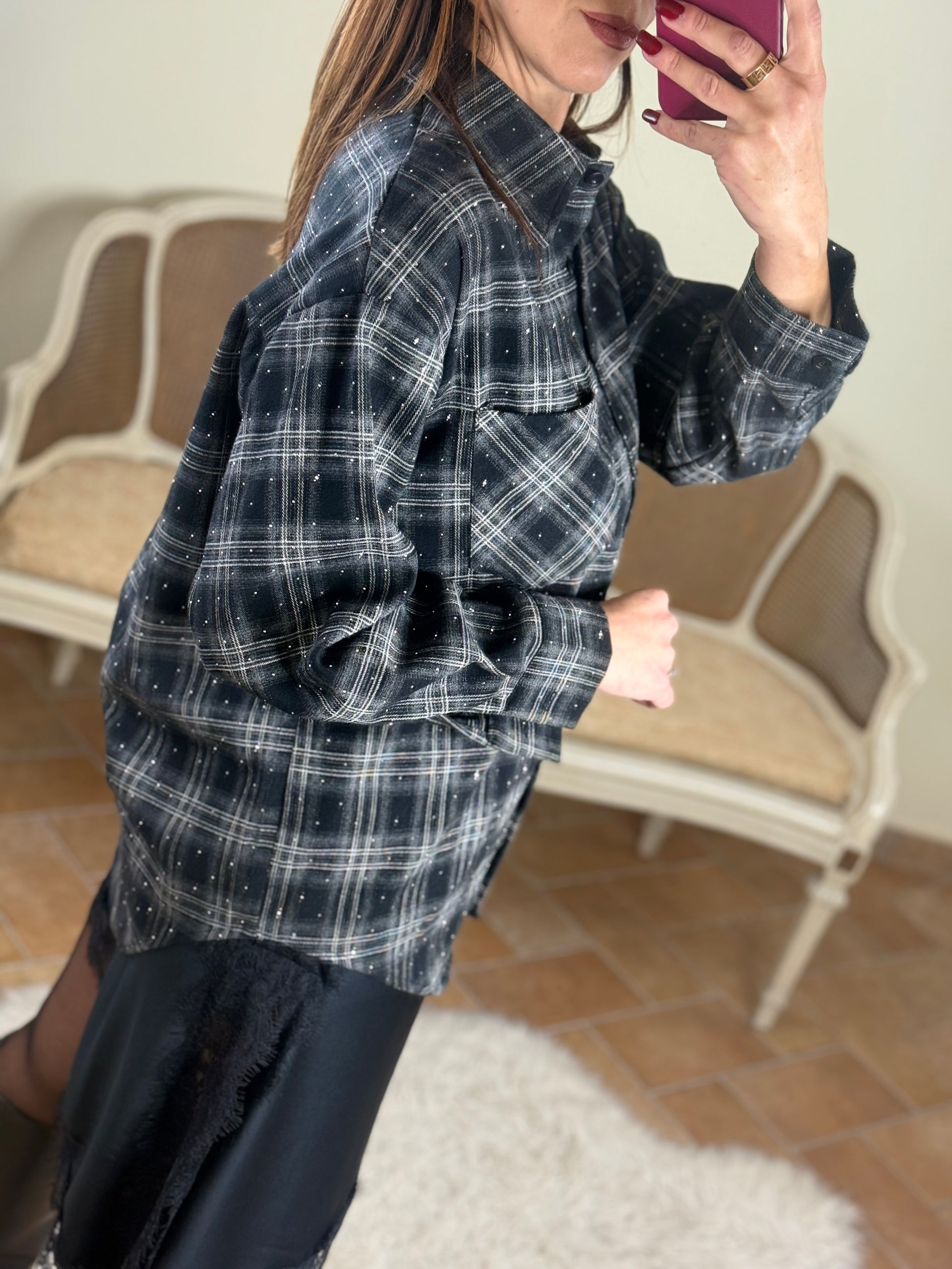 Camicia JOY quadri con punti luce NERO/BIANCO