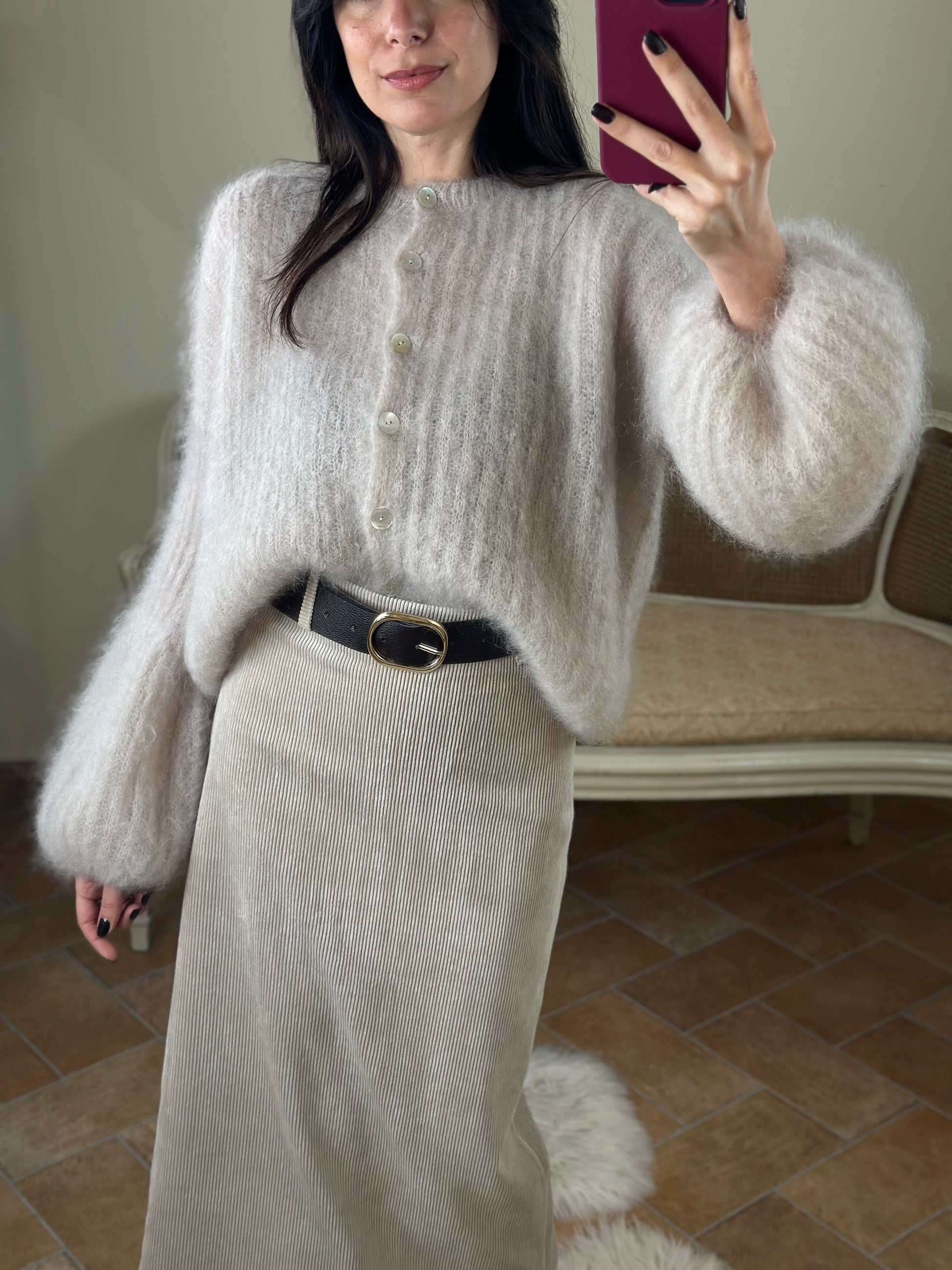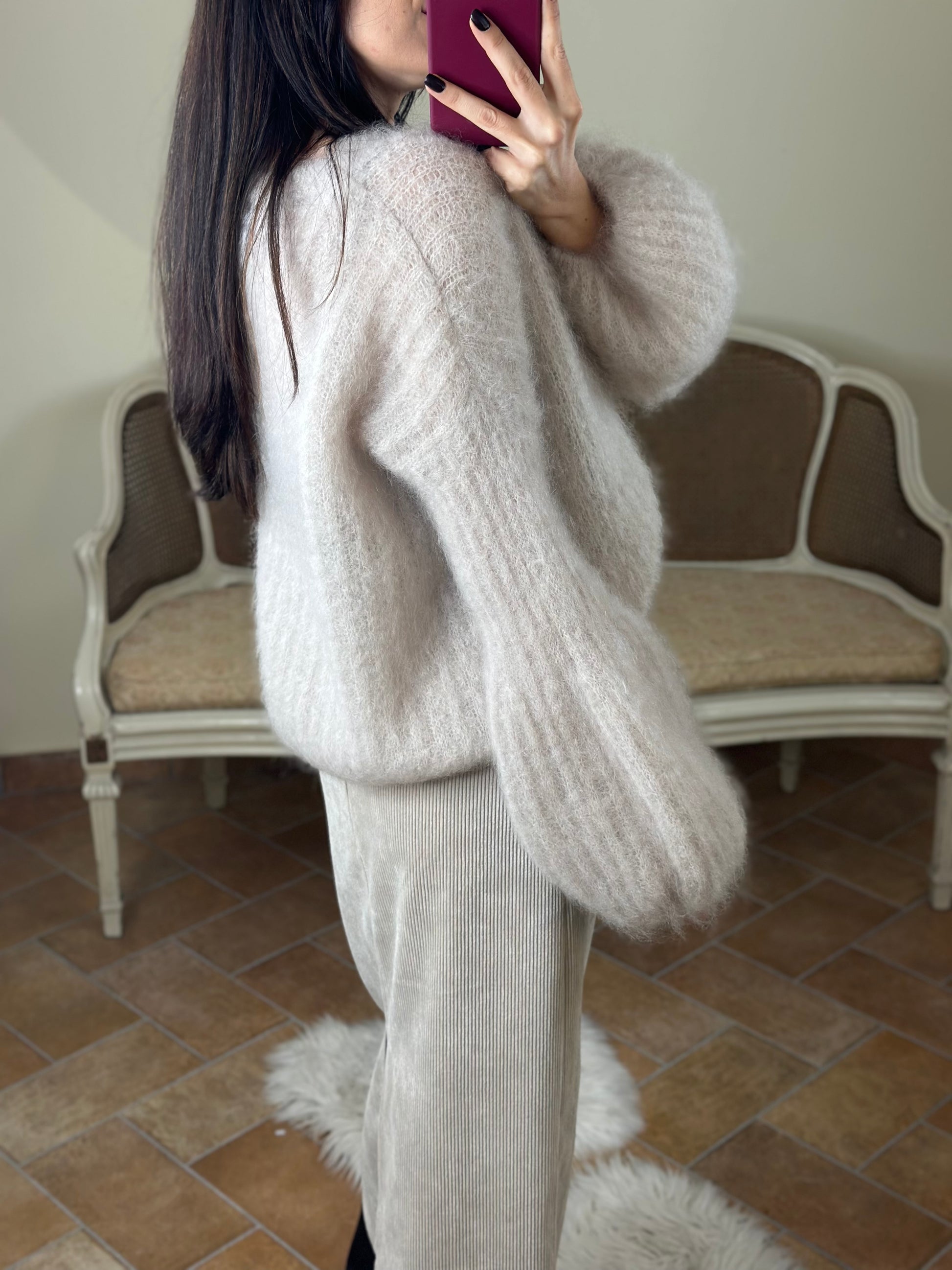 Cardigan in kid Mohair BEIGE con bottoni madreperla