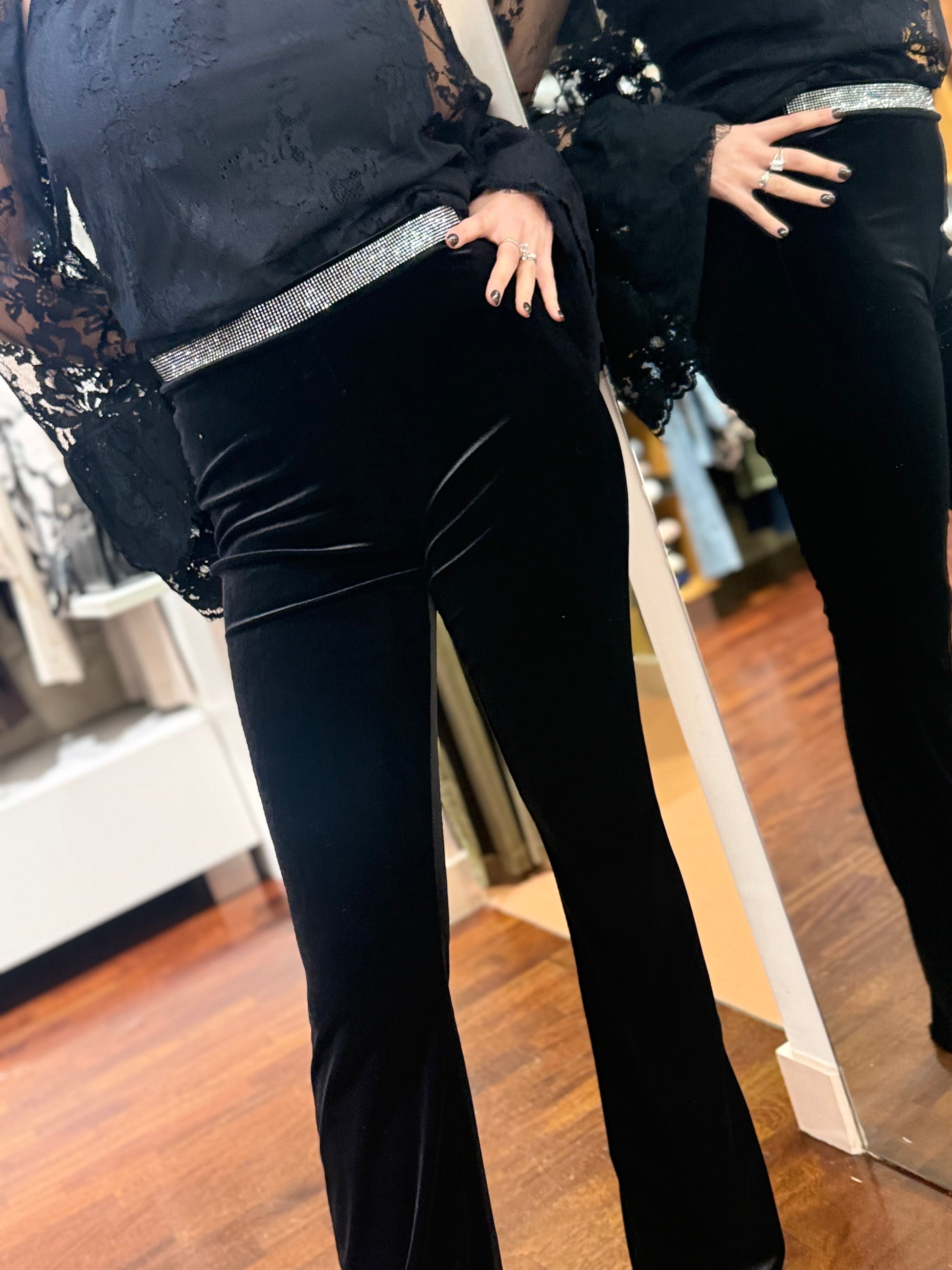 Leggins flare in ciniglia con puntiluce NERO
