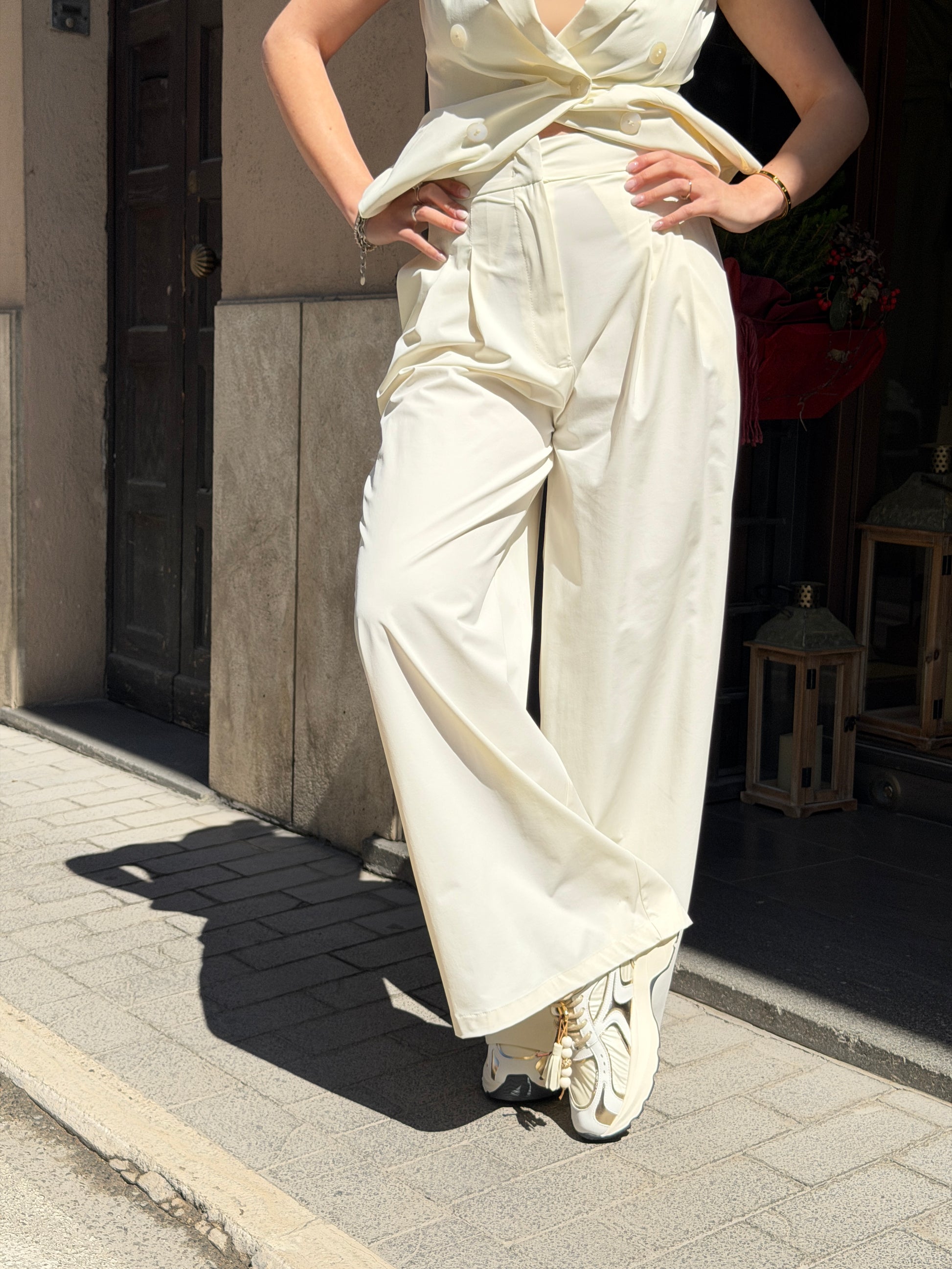 Pantalone in tessuto tecnico elasticizzato con pinces.