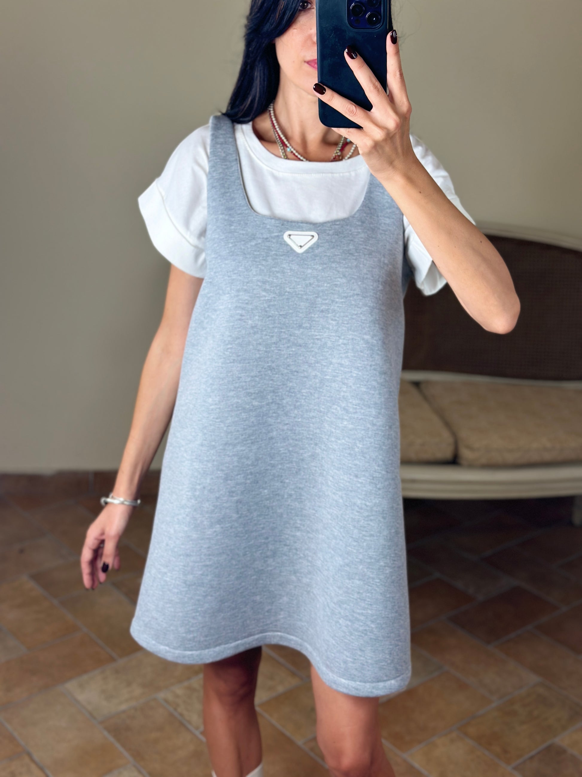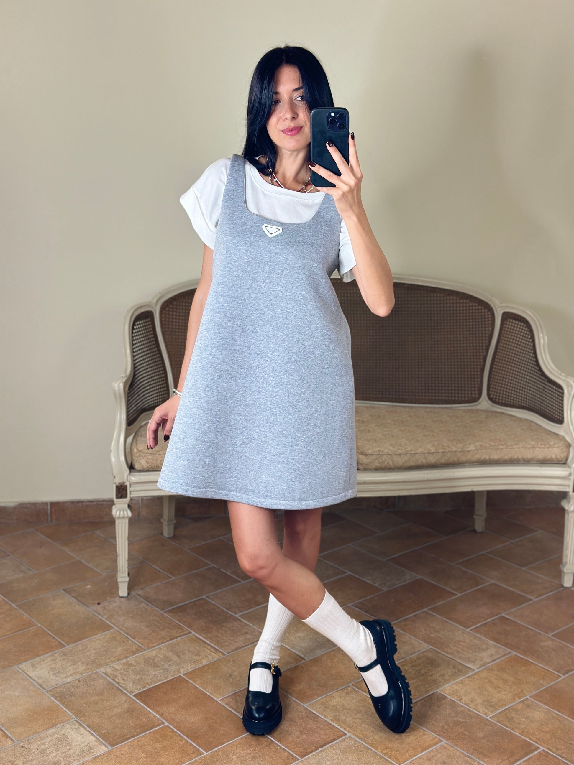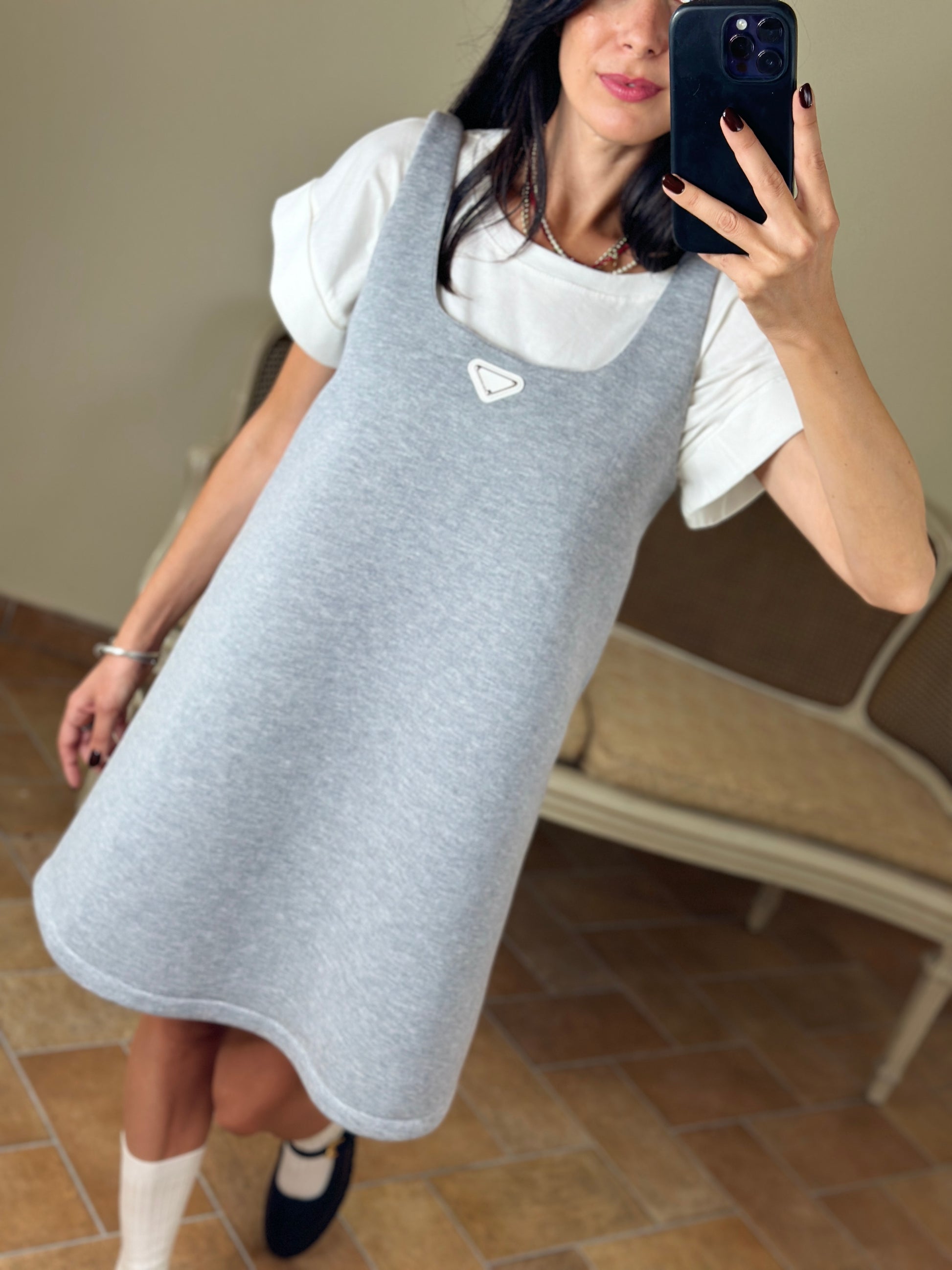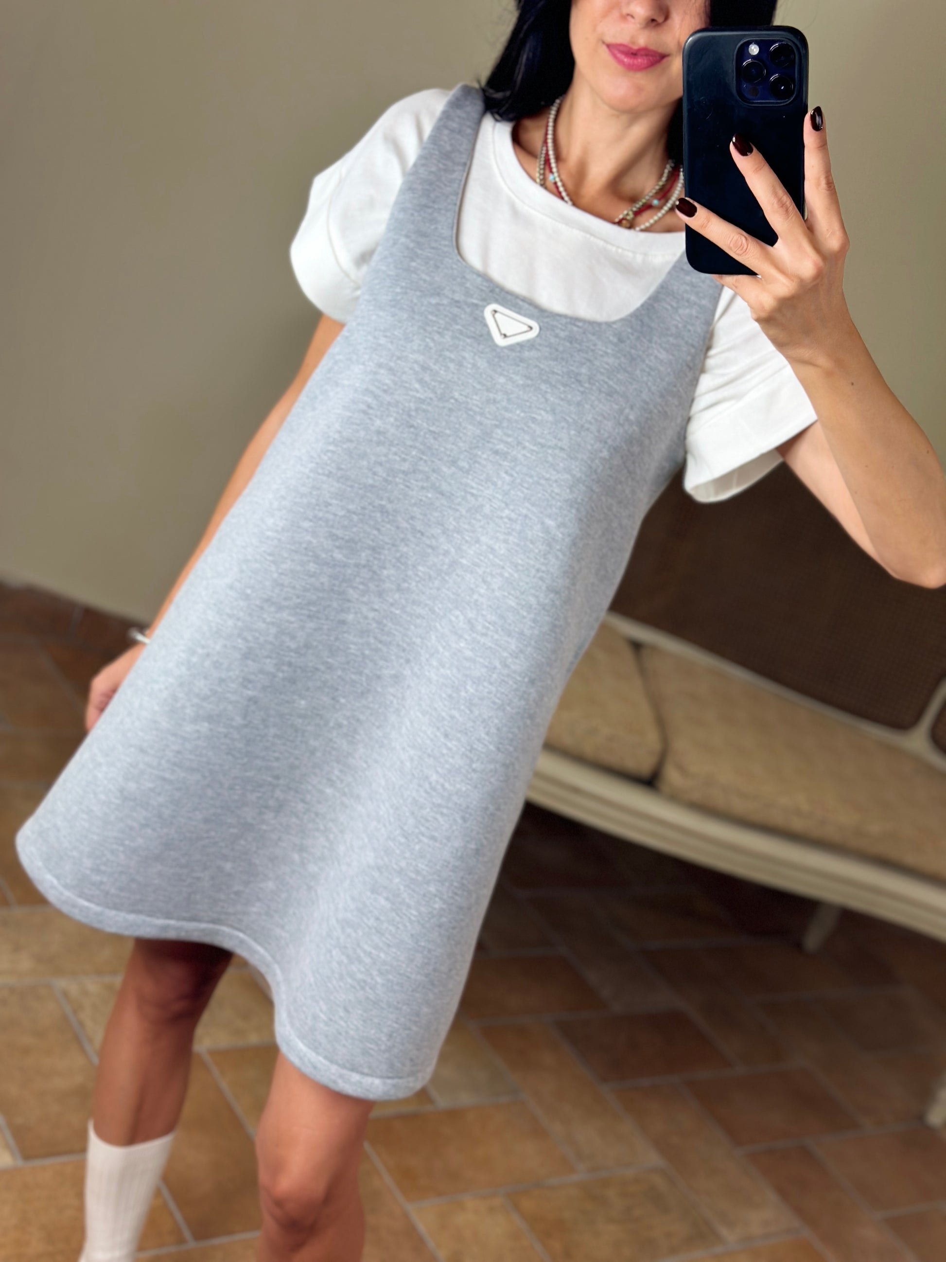 Abito in felpa 65% cotone unica variante grigio, taglio a trapezio, buona vestibilità