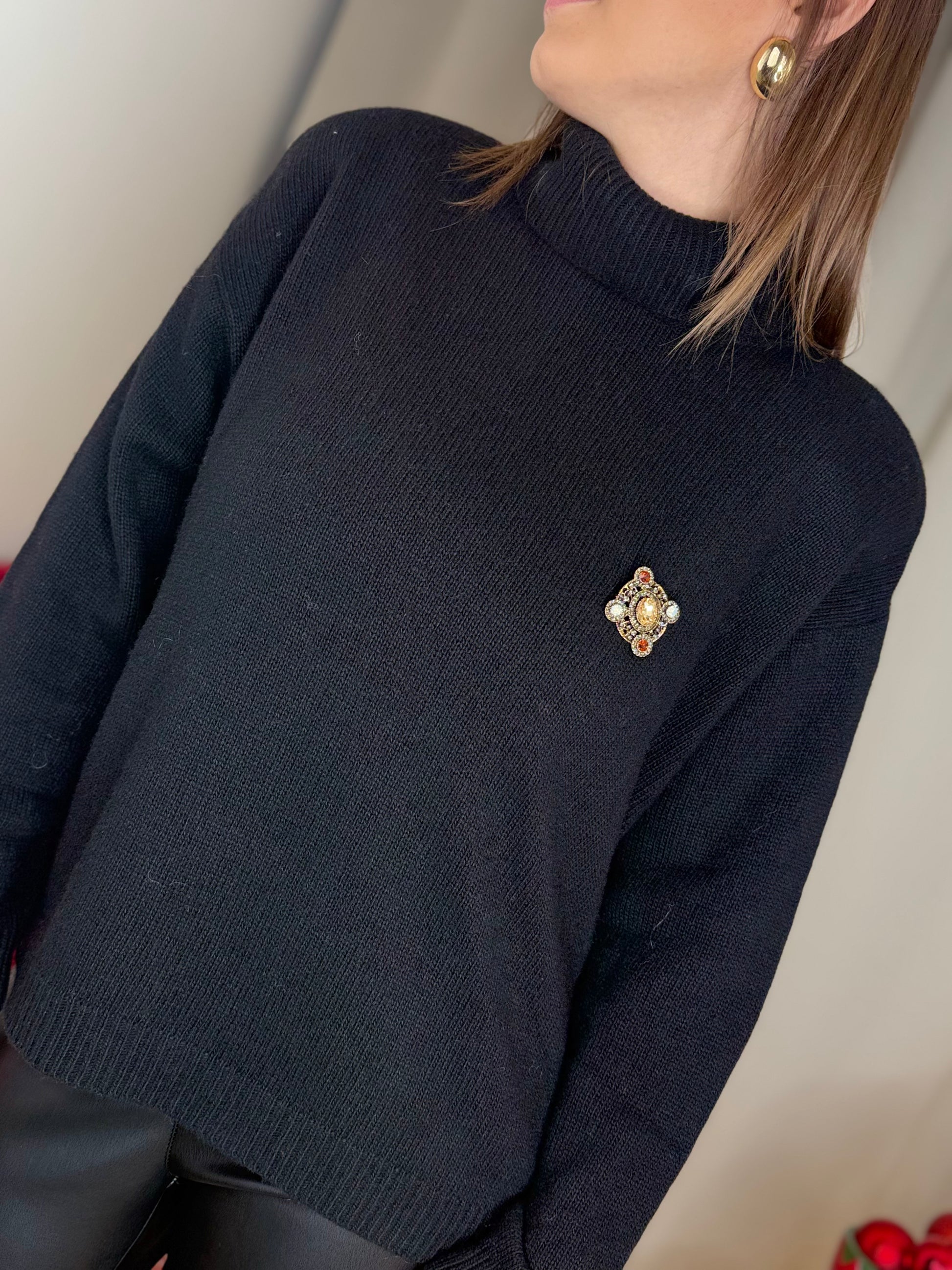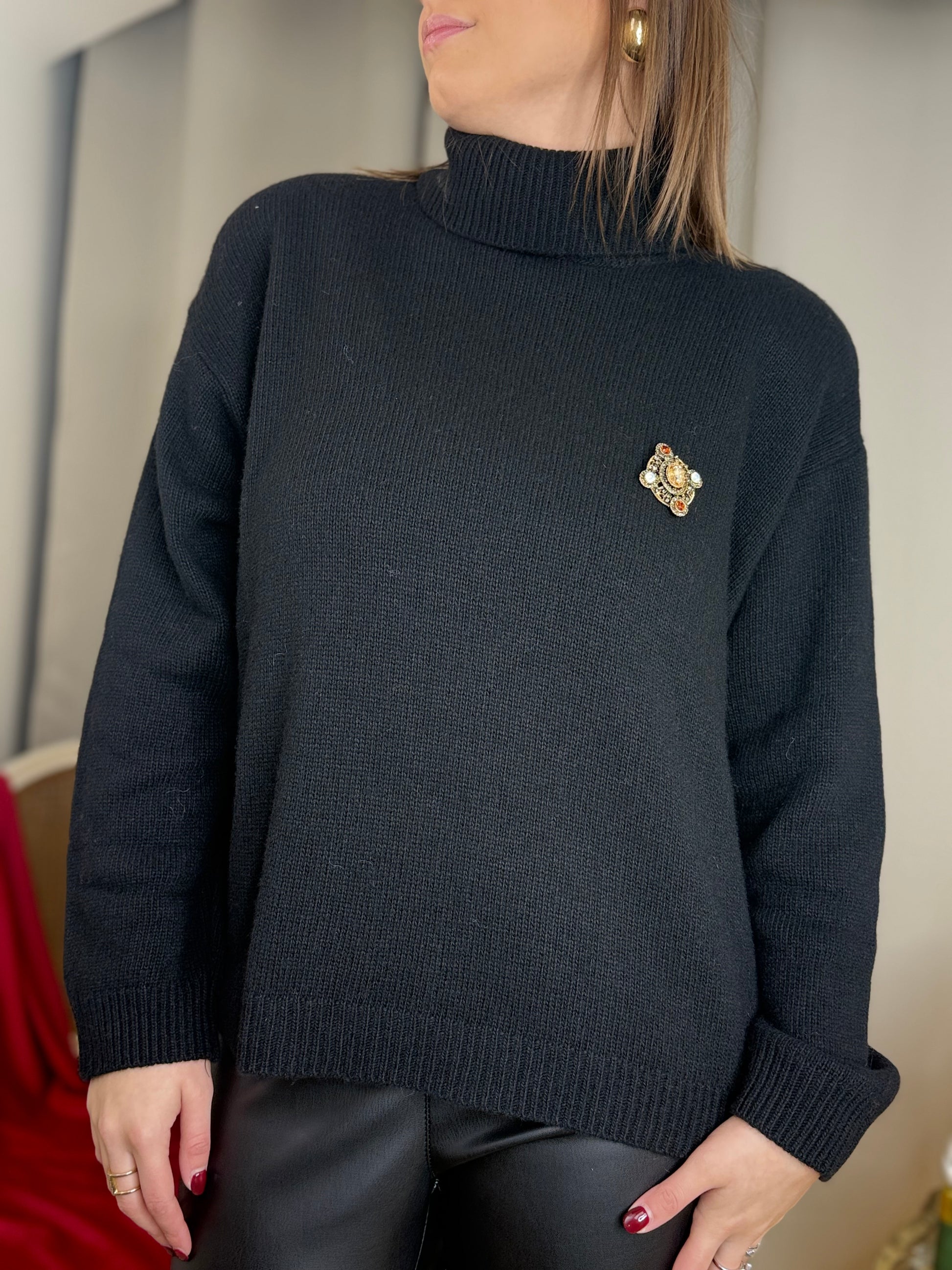 Dolcevita taglio a scatola con spalline imbottite, spilla in dotazione.