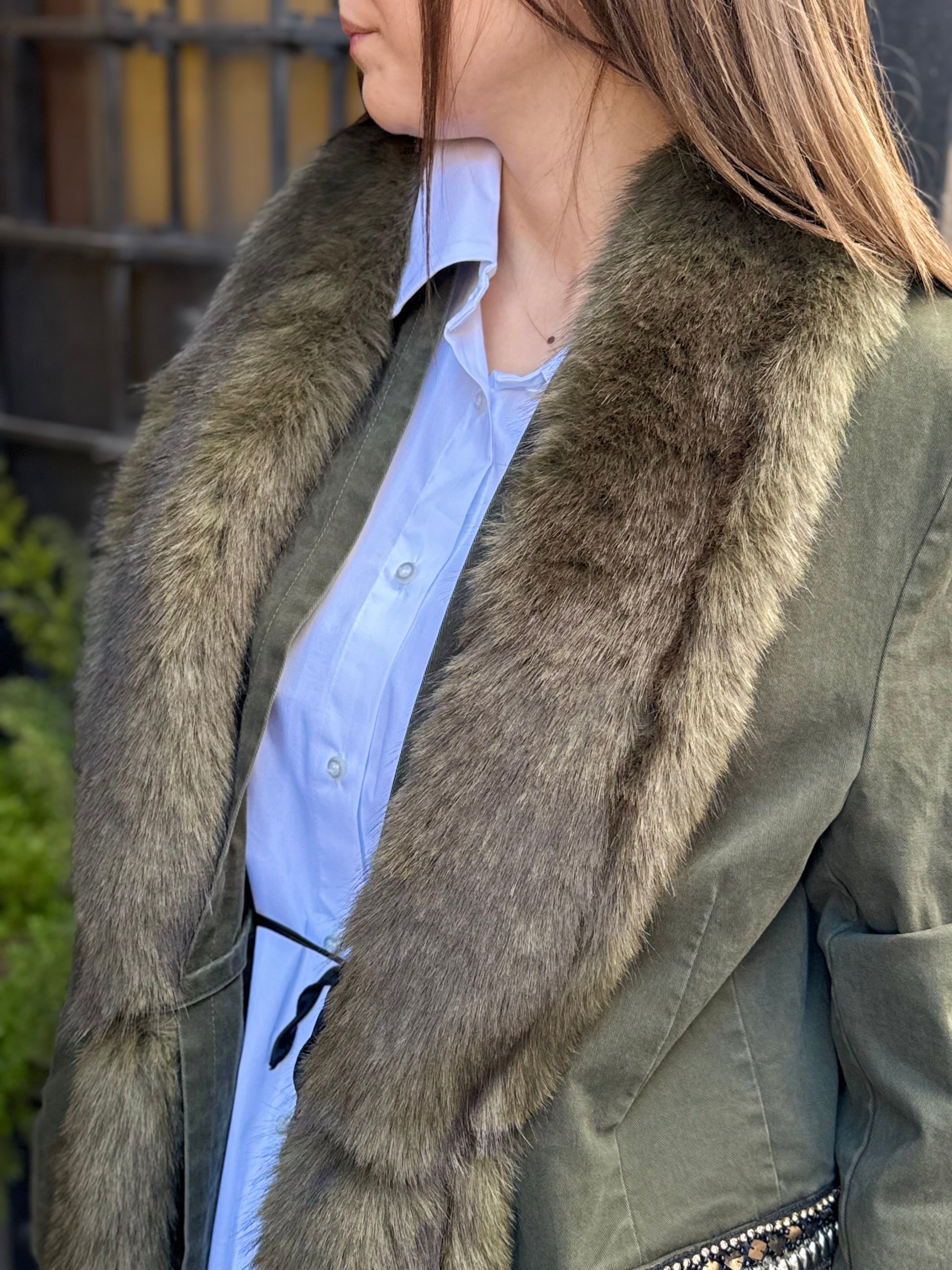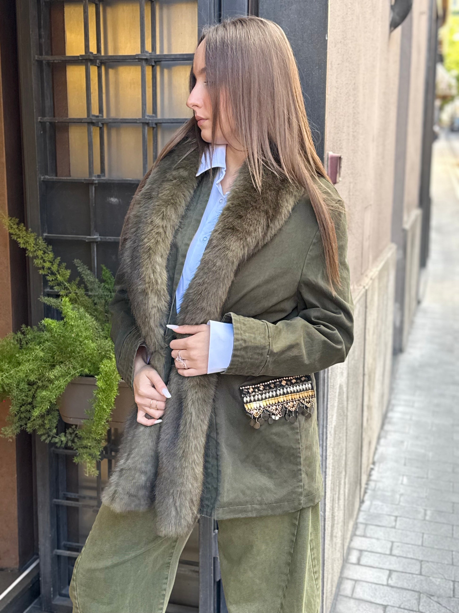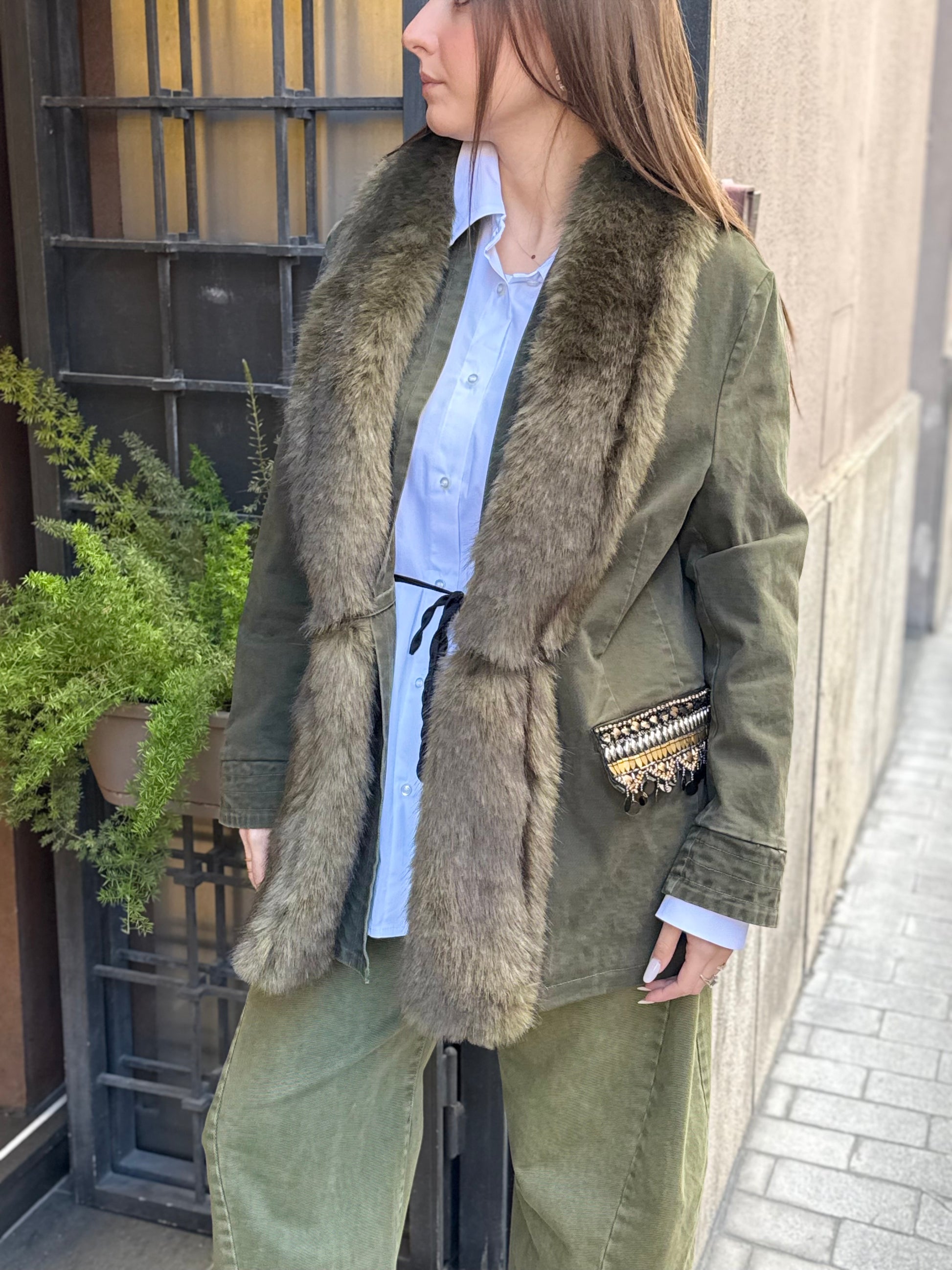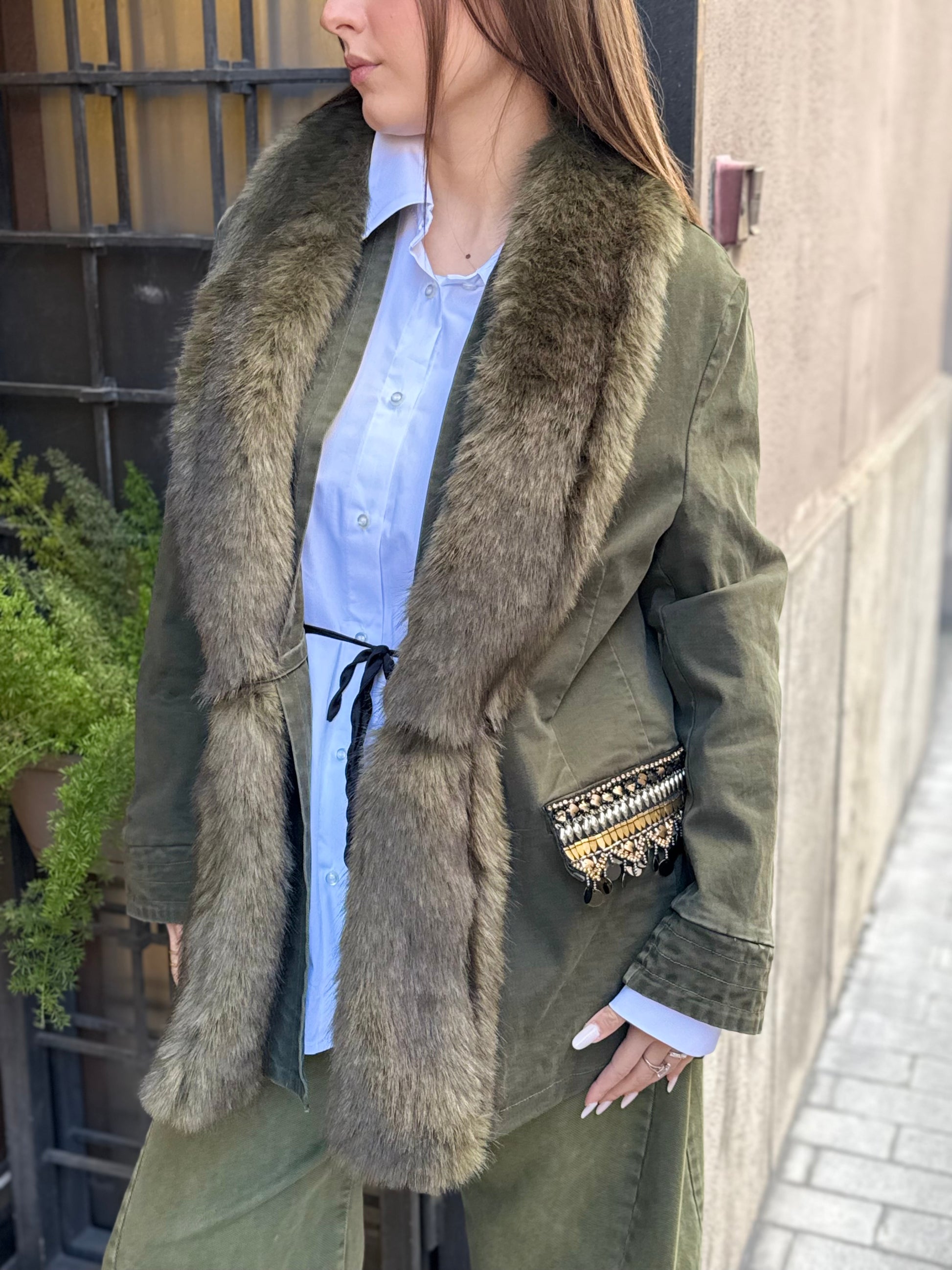 Tensione in giacca over interno trapuntato collo eco-pelliccia MILITARE