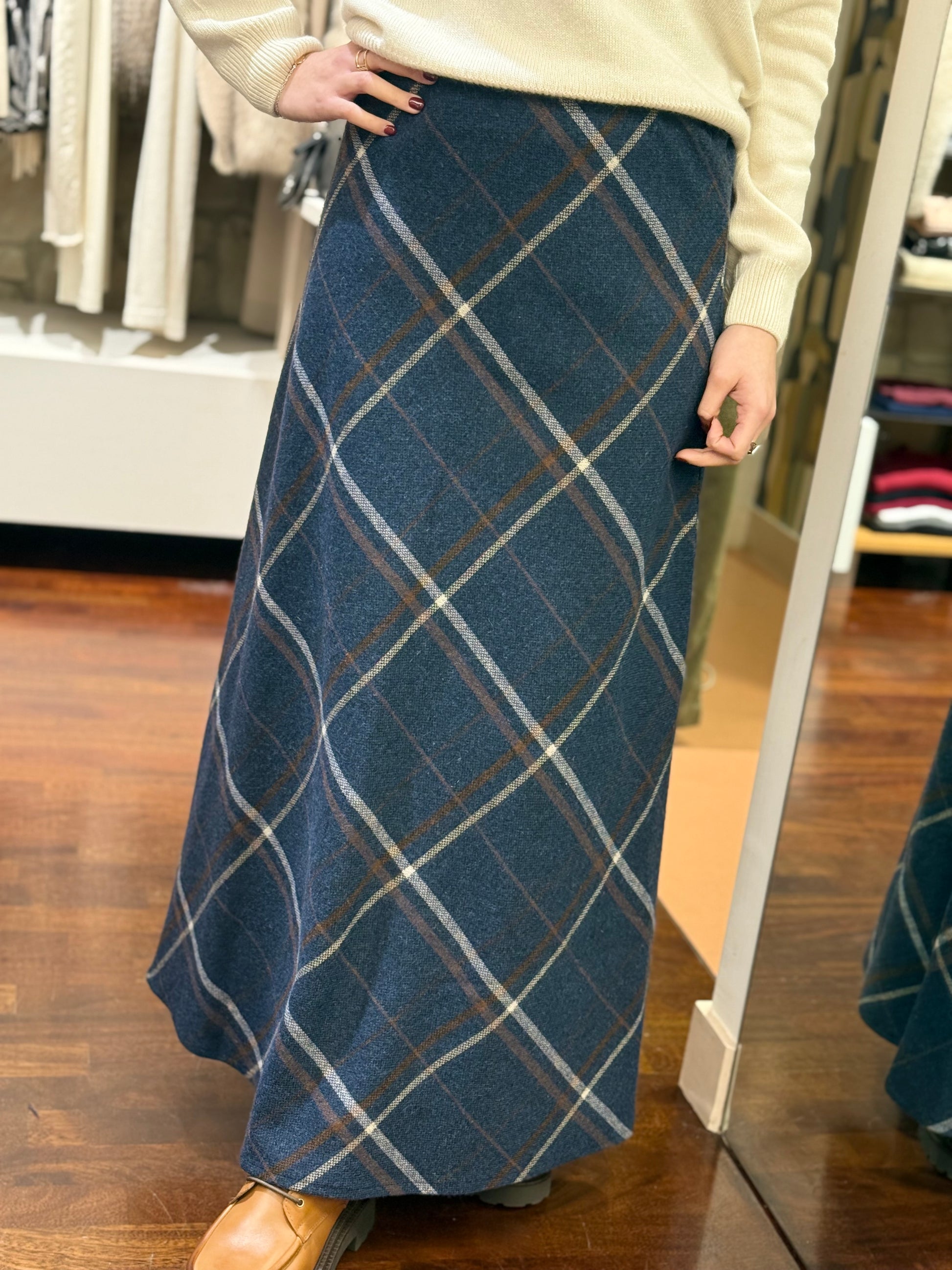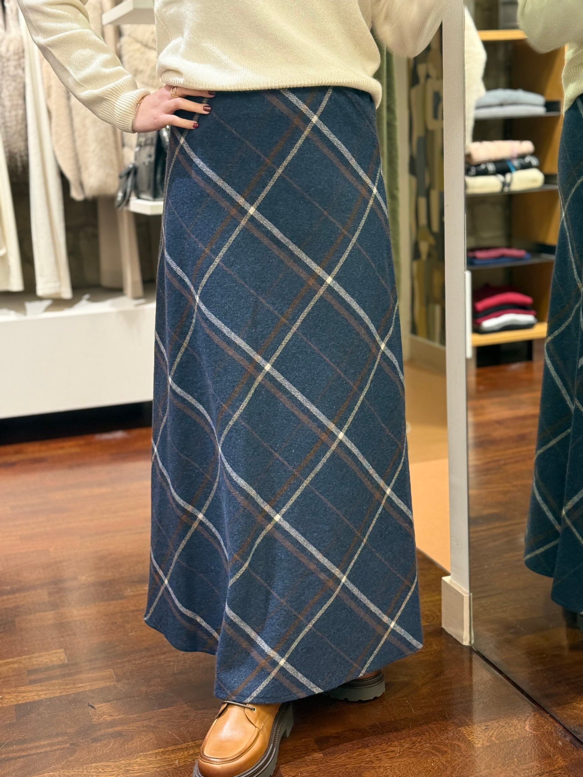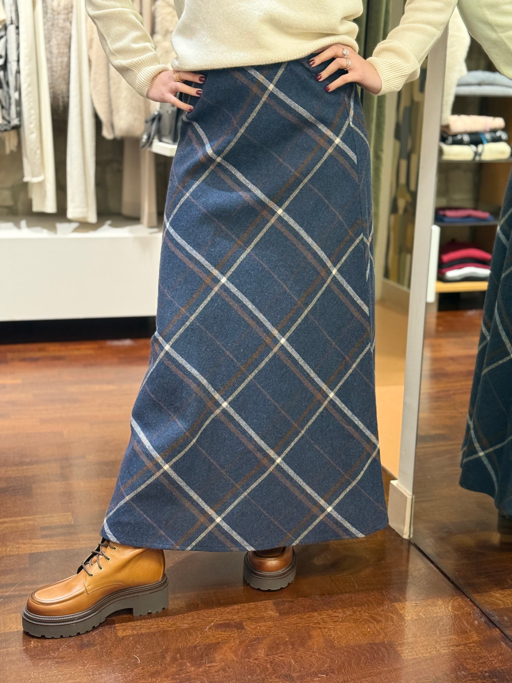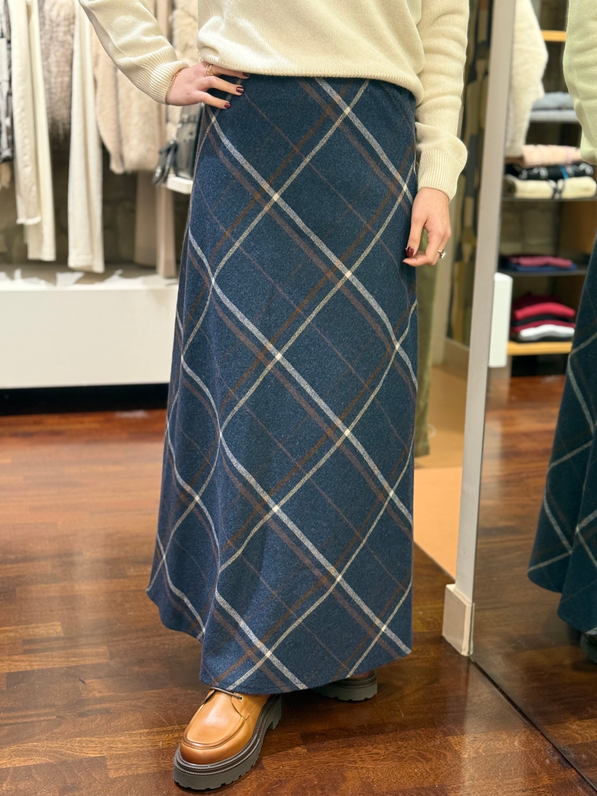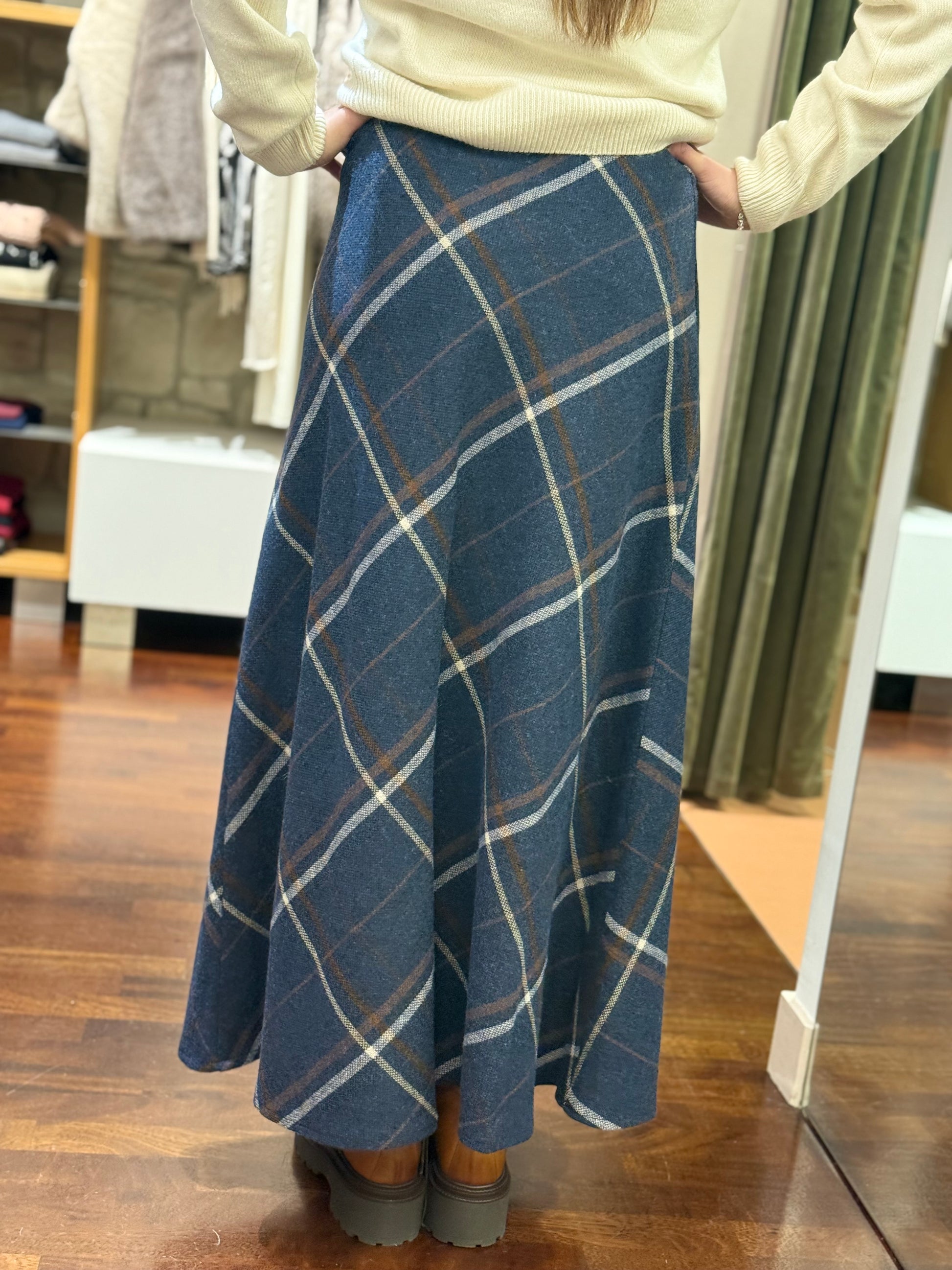 Tensione In Gonna check misto lana BLU
