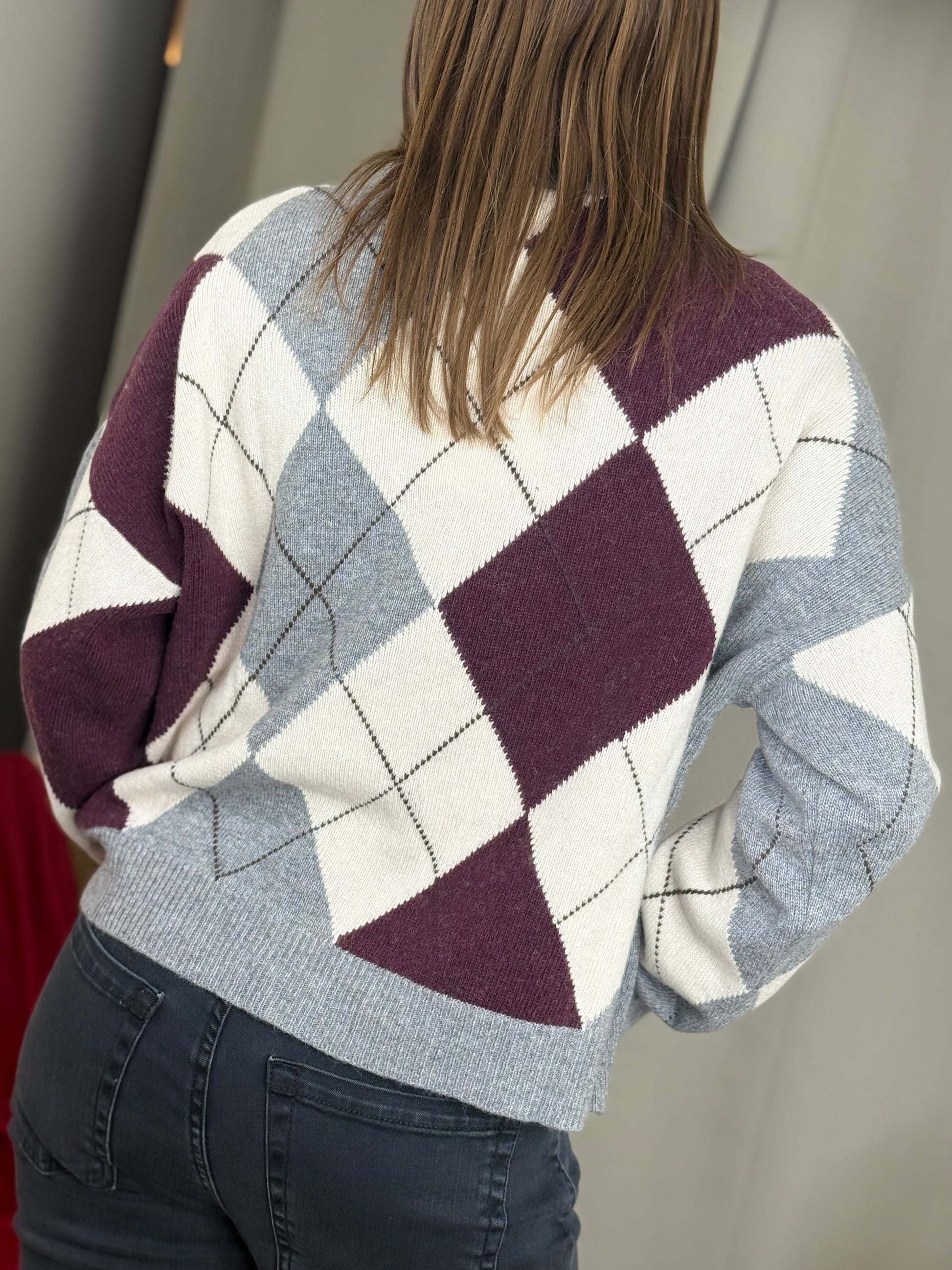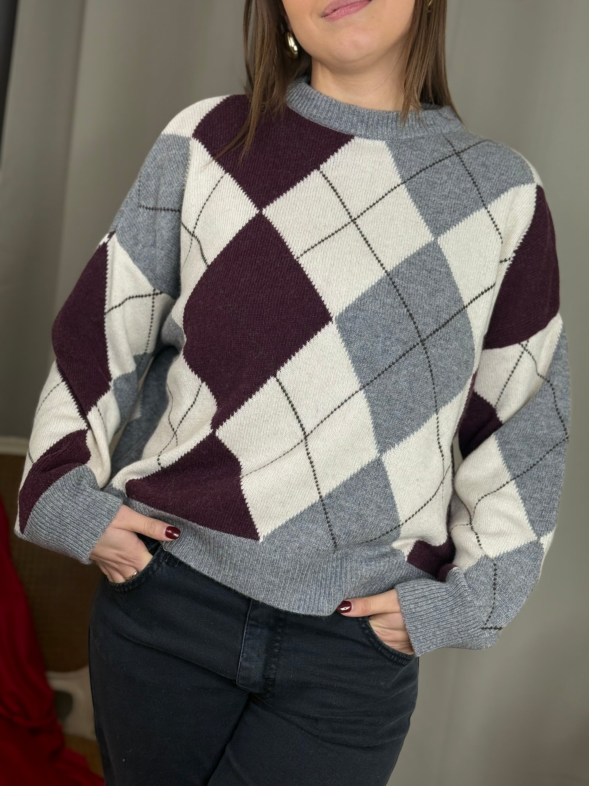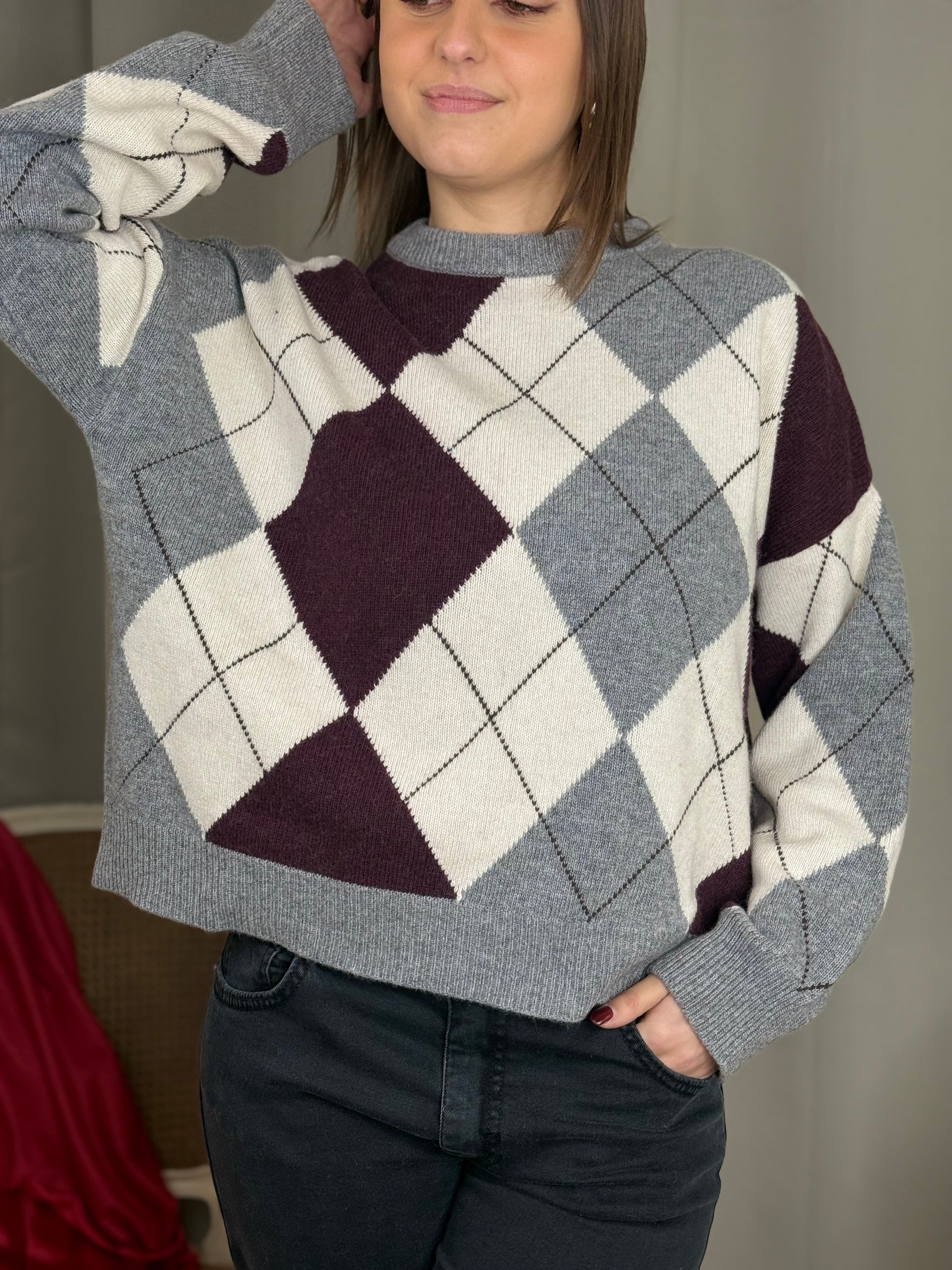 Tensione In maglia paricollo rombi GRIGIO/BURRO/BORDO
